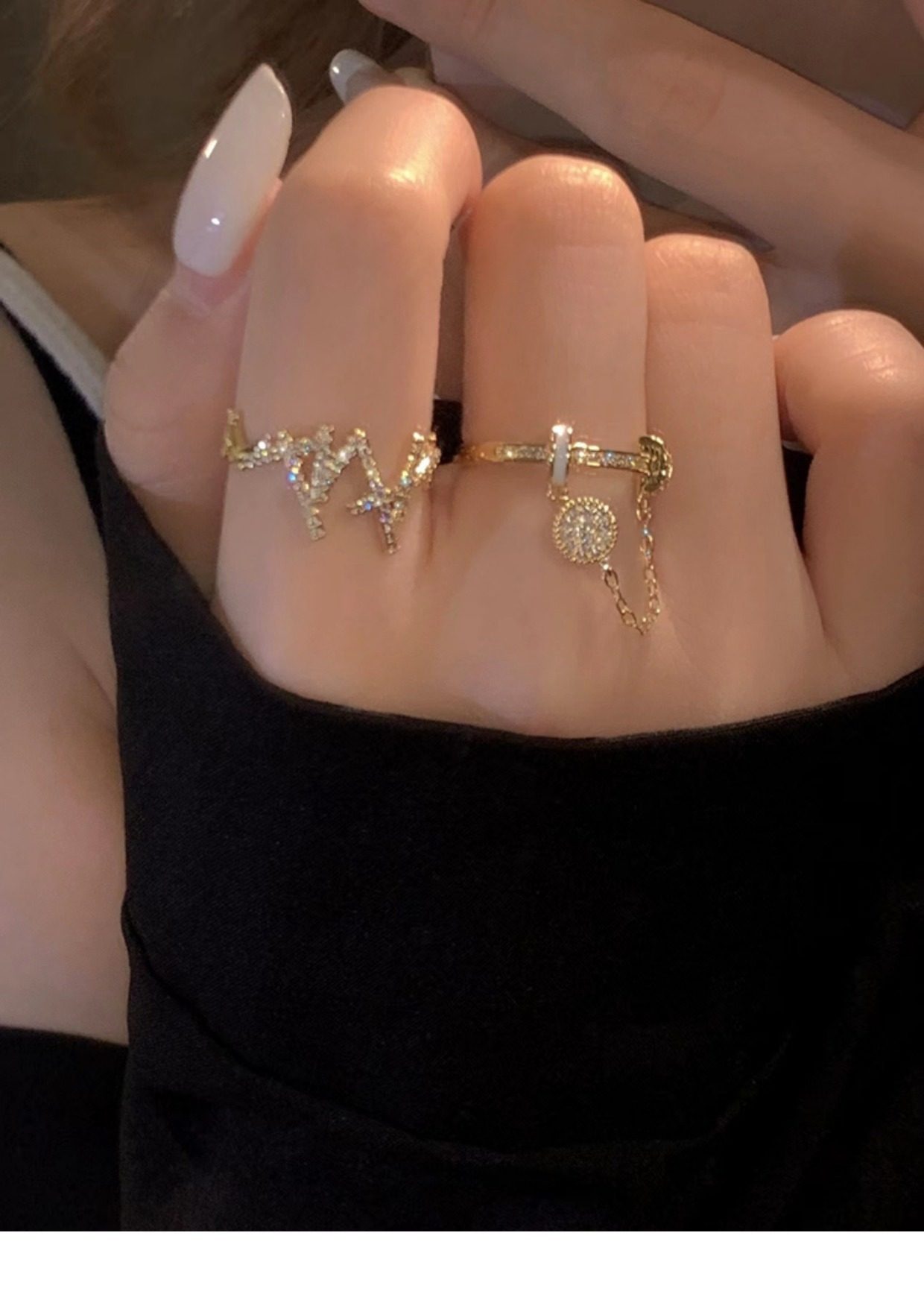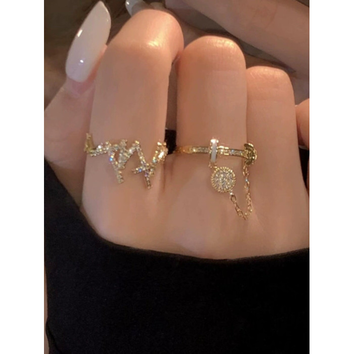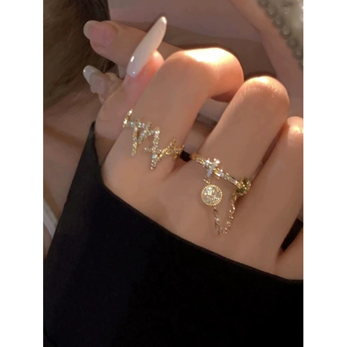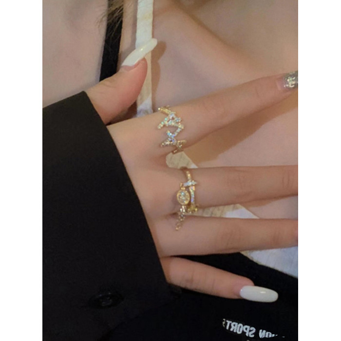 網紅閃鑽鋯石日韓氣質百搭開口戒指ins學生2024年新潮冷淡風指環