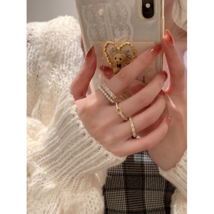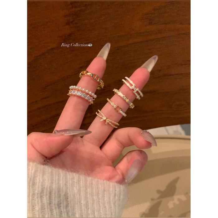 百搭開口戒指合集女小衆設計蝴蝶結珍珠食指戒小衆輕奢高級感獨特