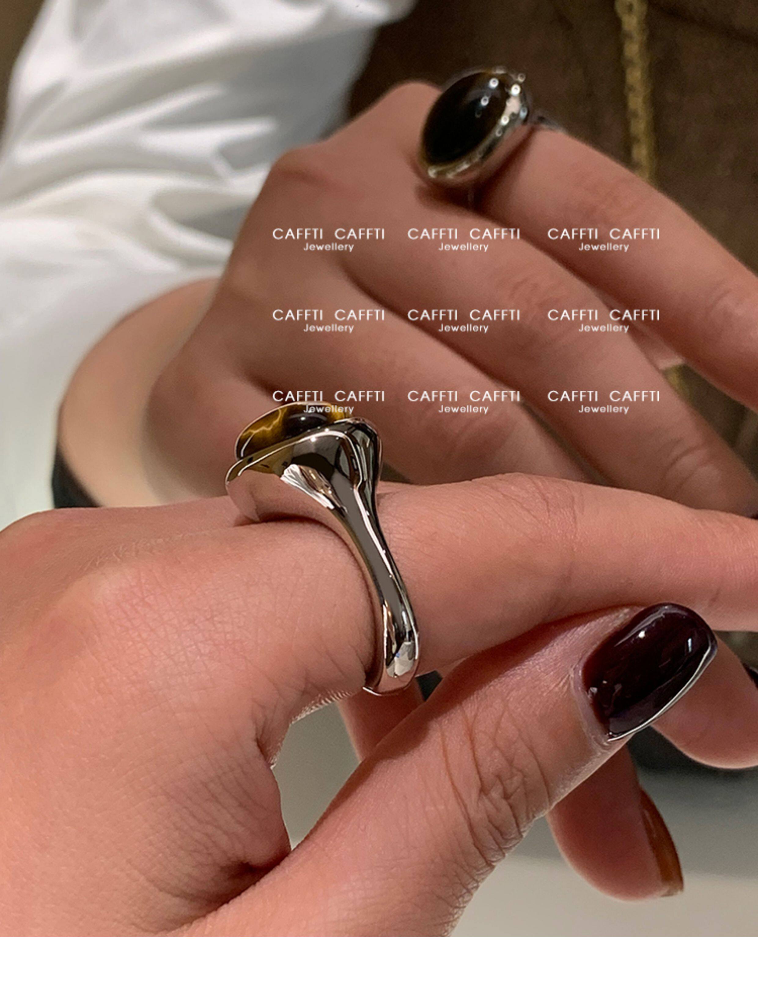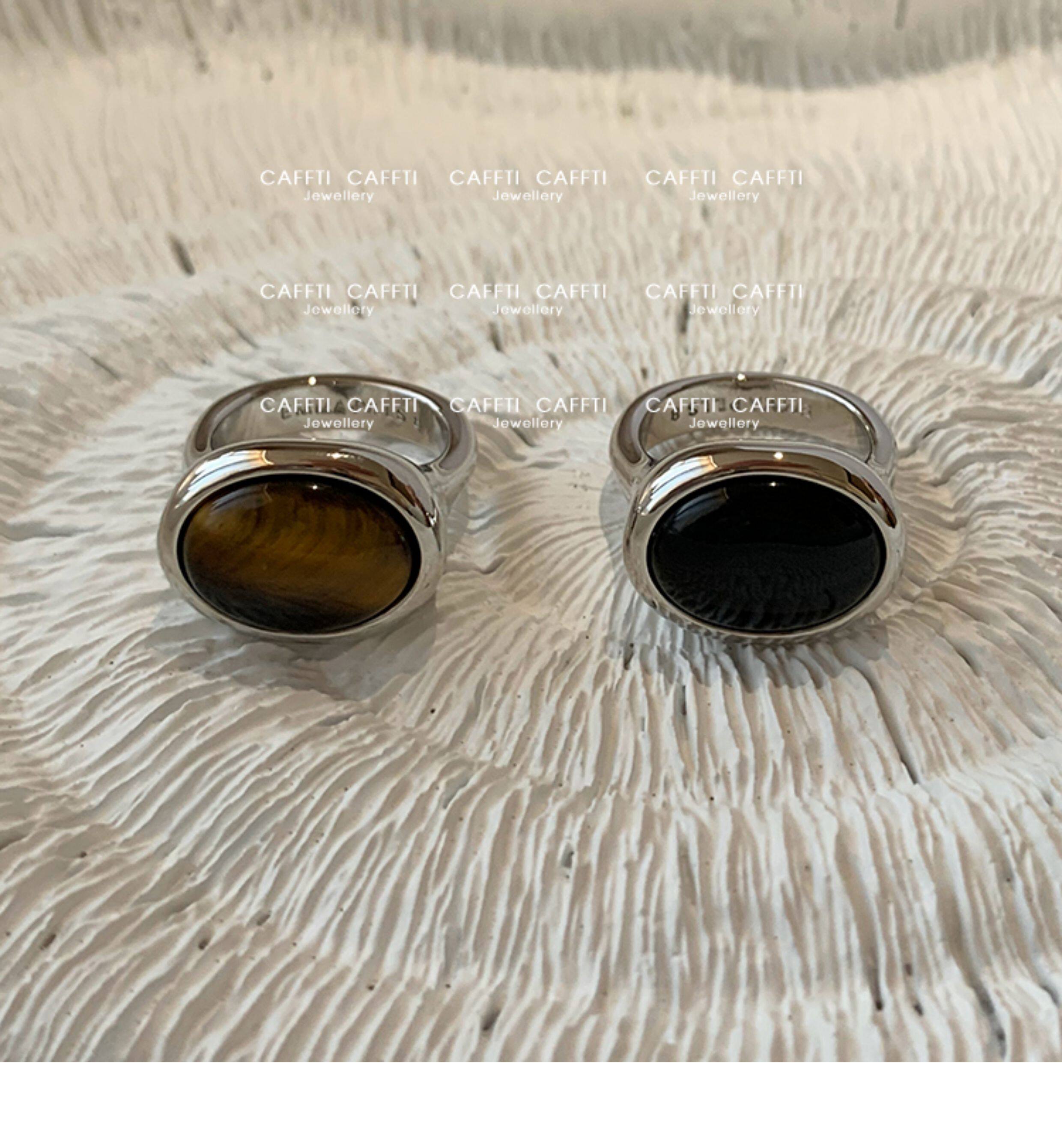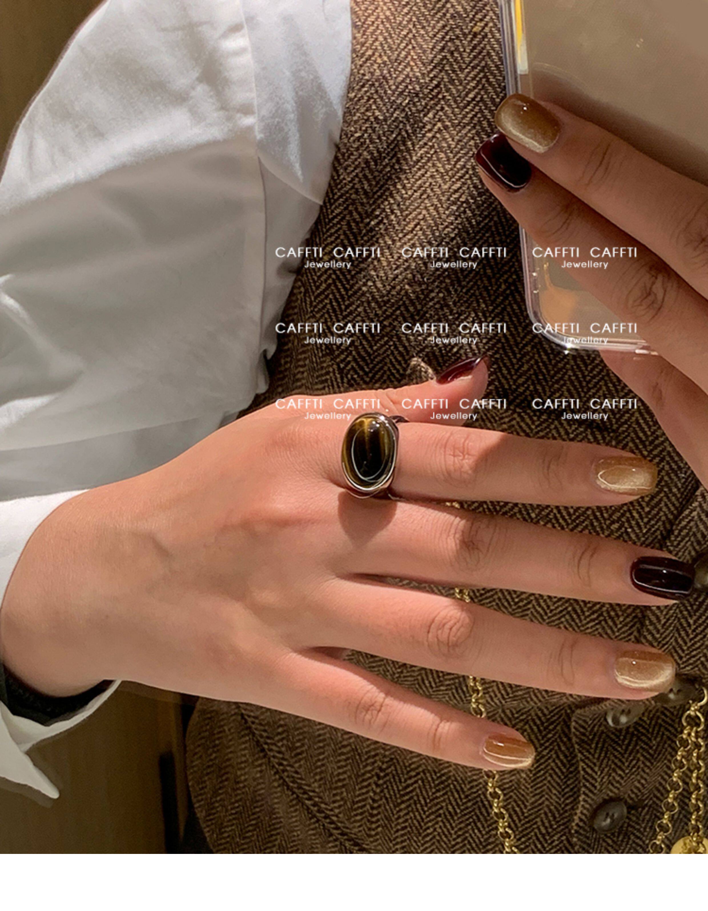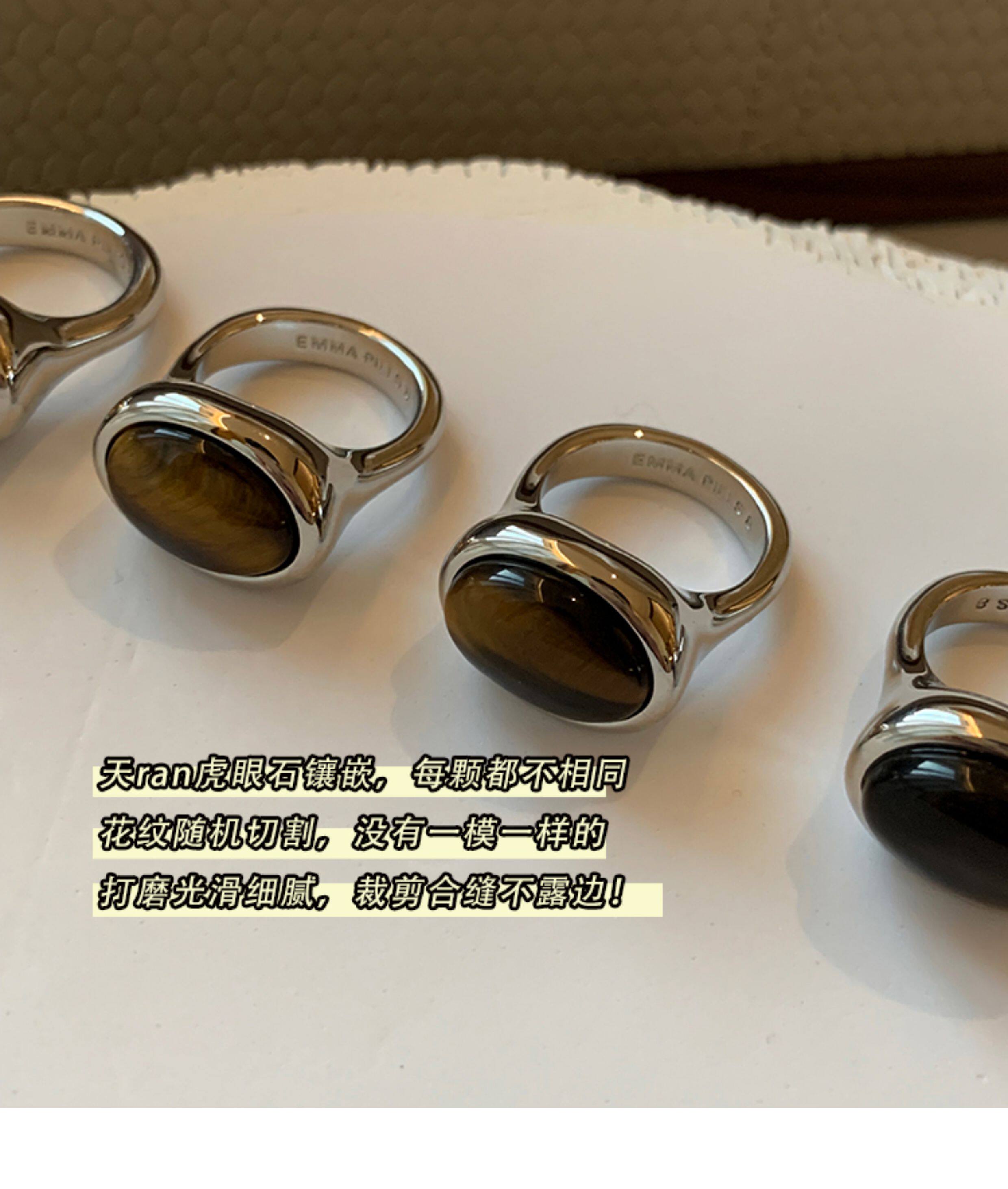 天然虎眼寶石黑瑪瑙美拉德偏財食指戒指女小衆設計輕奢高級感指環