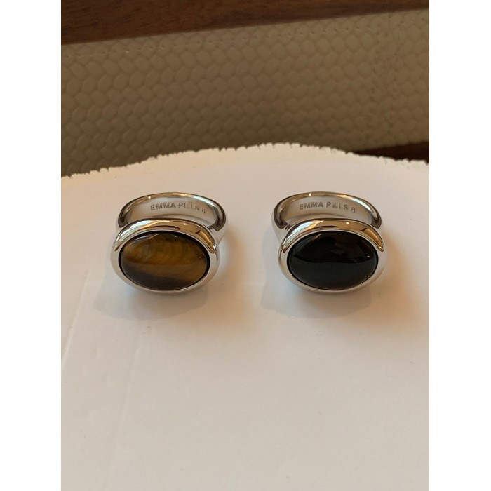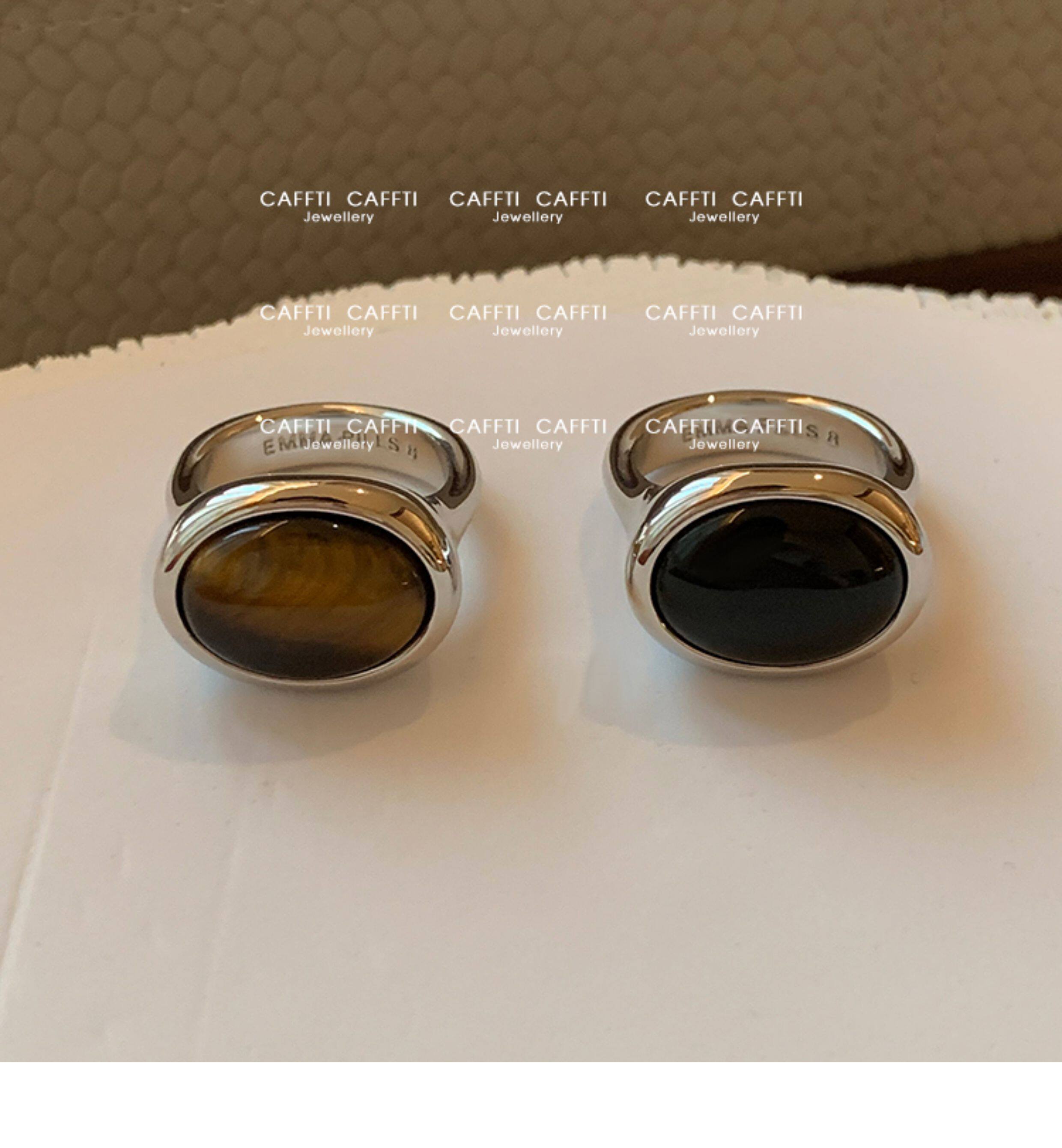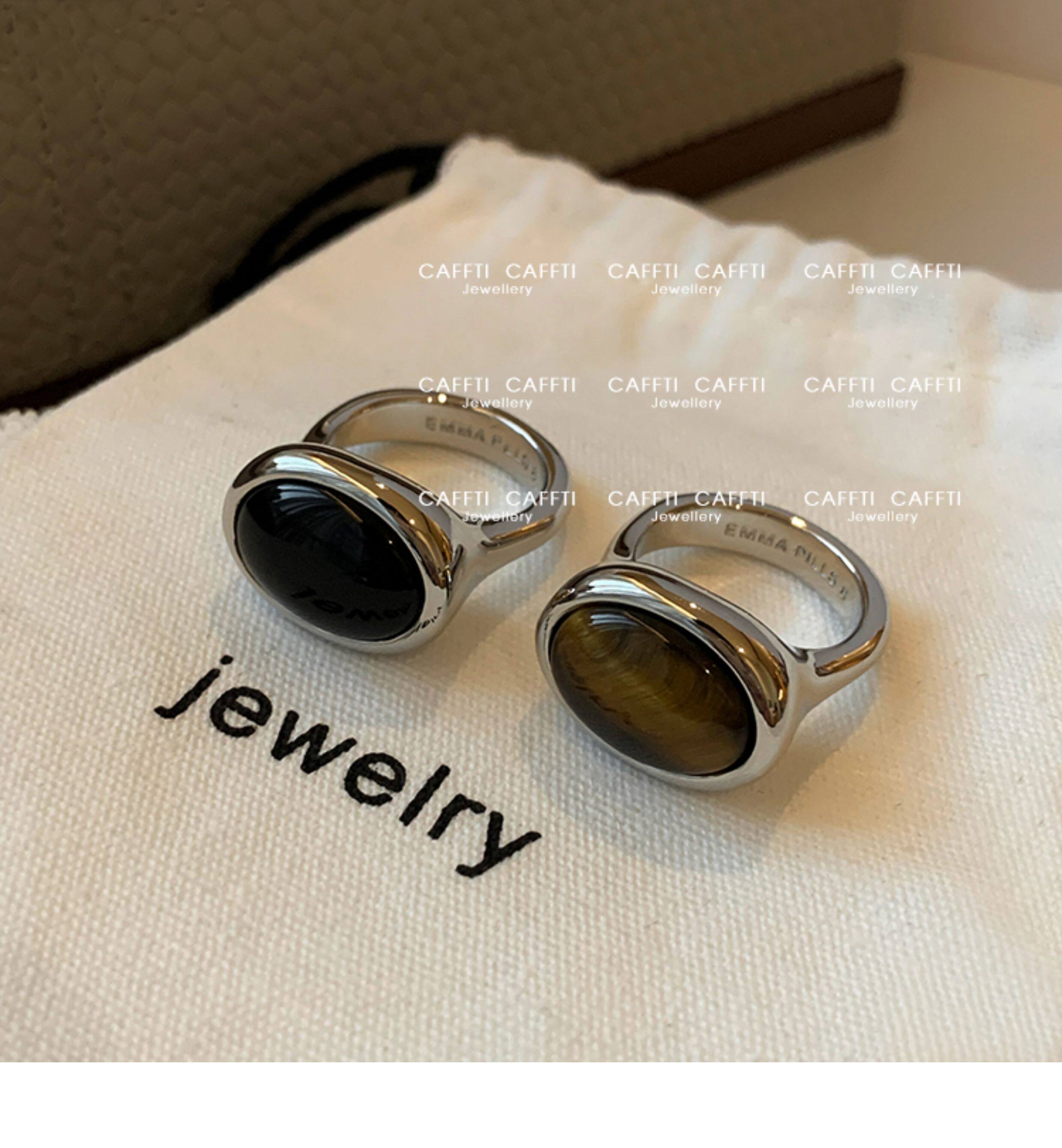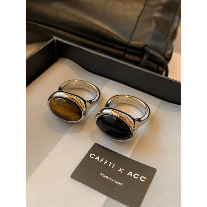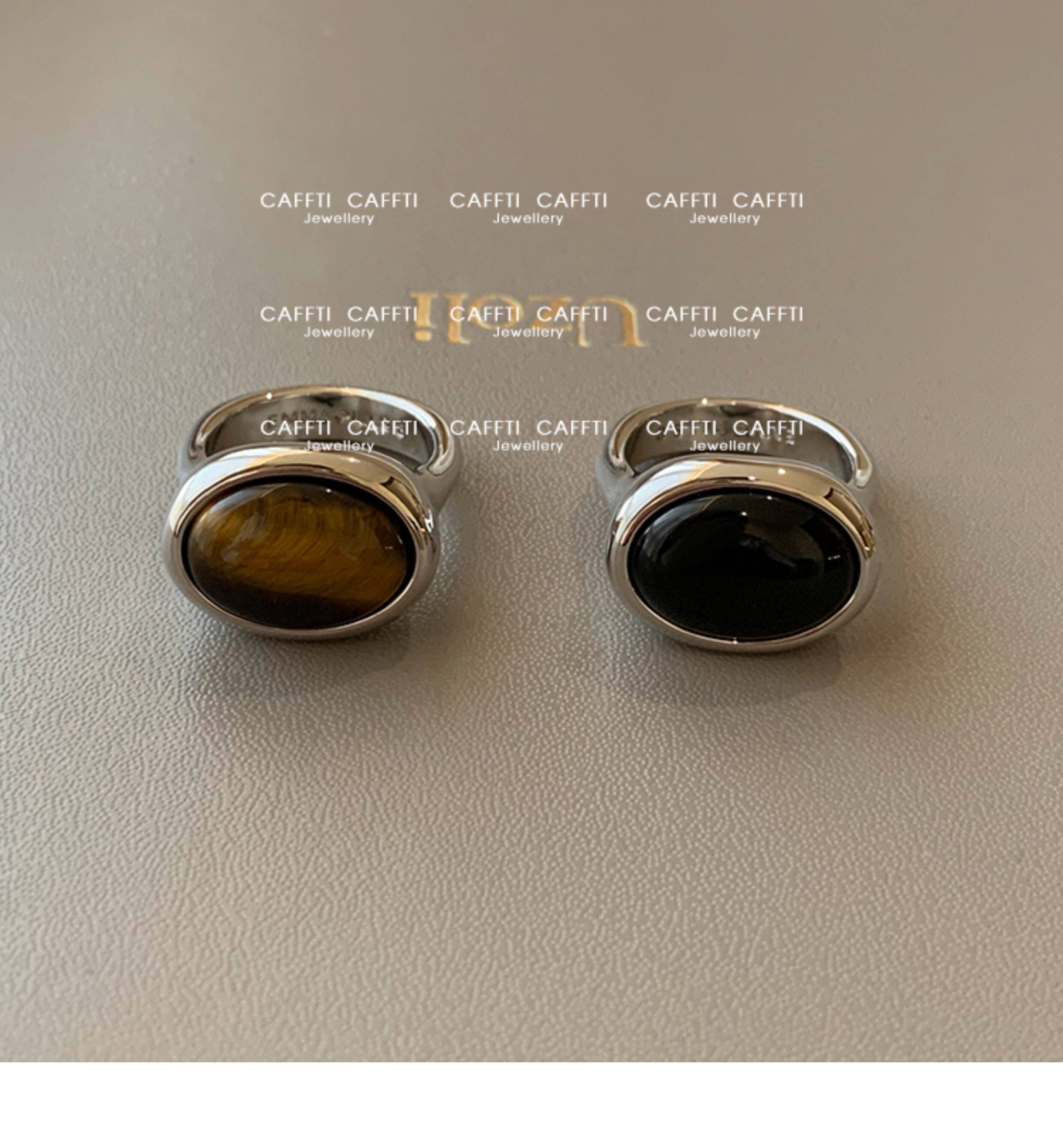 天然虎眼寶石黑瑪瑙美拉德偏財食指戒指女小衆設計輕奢高級感指環