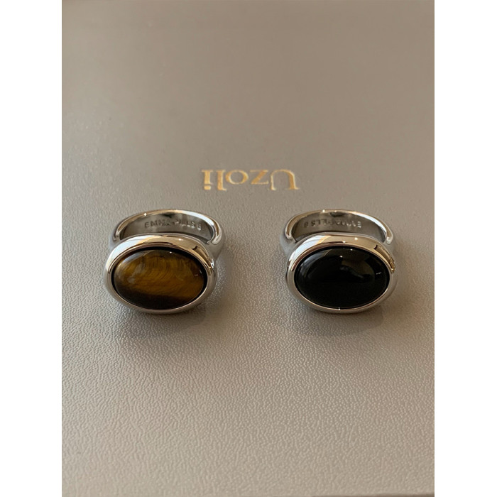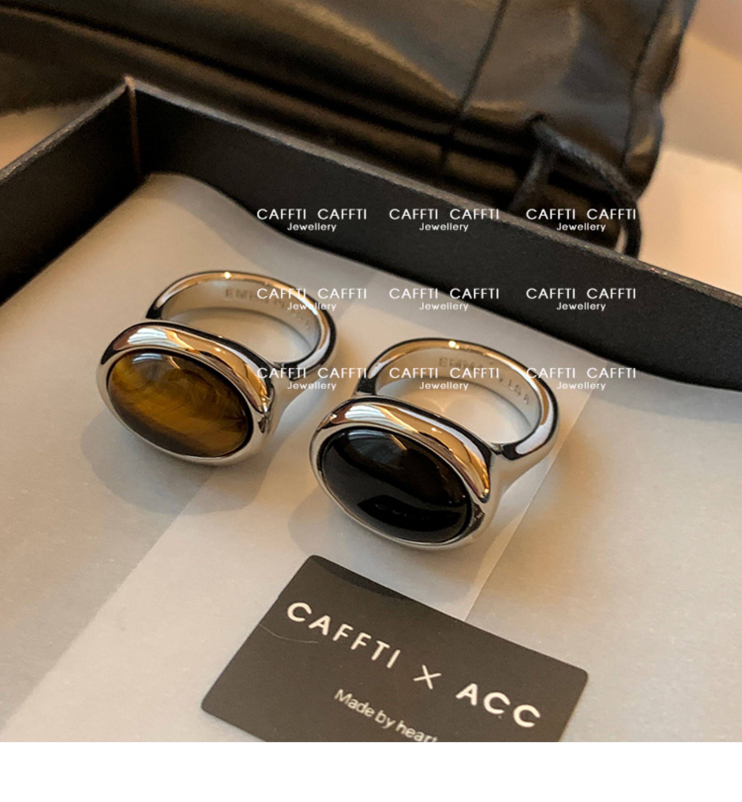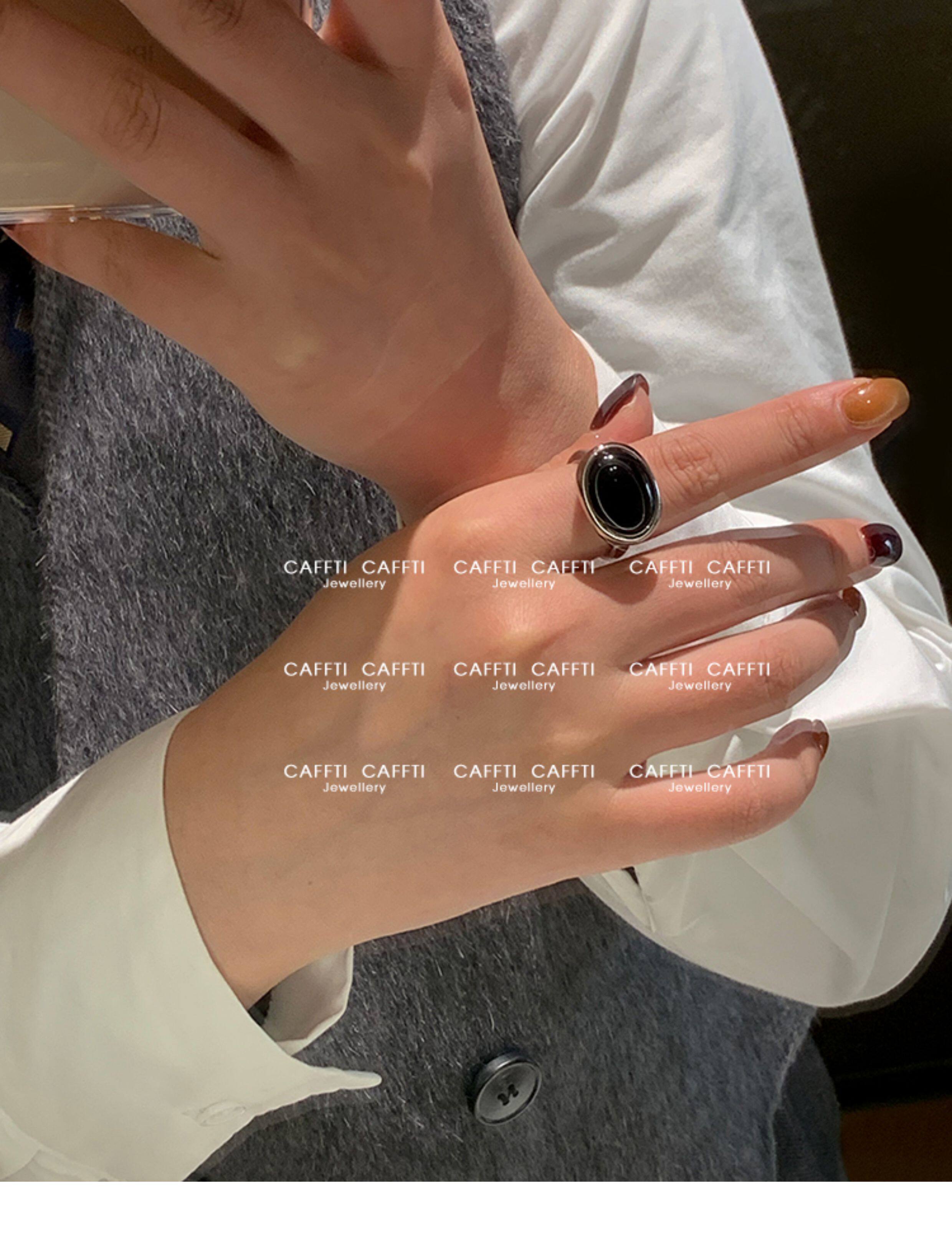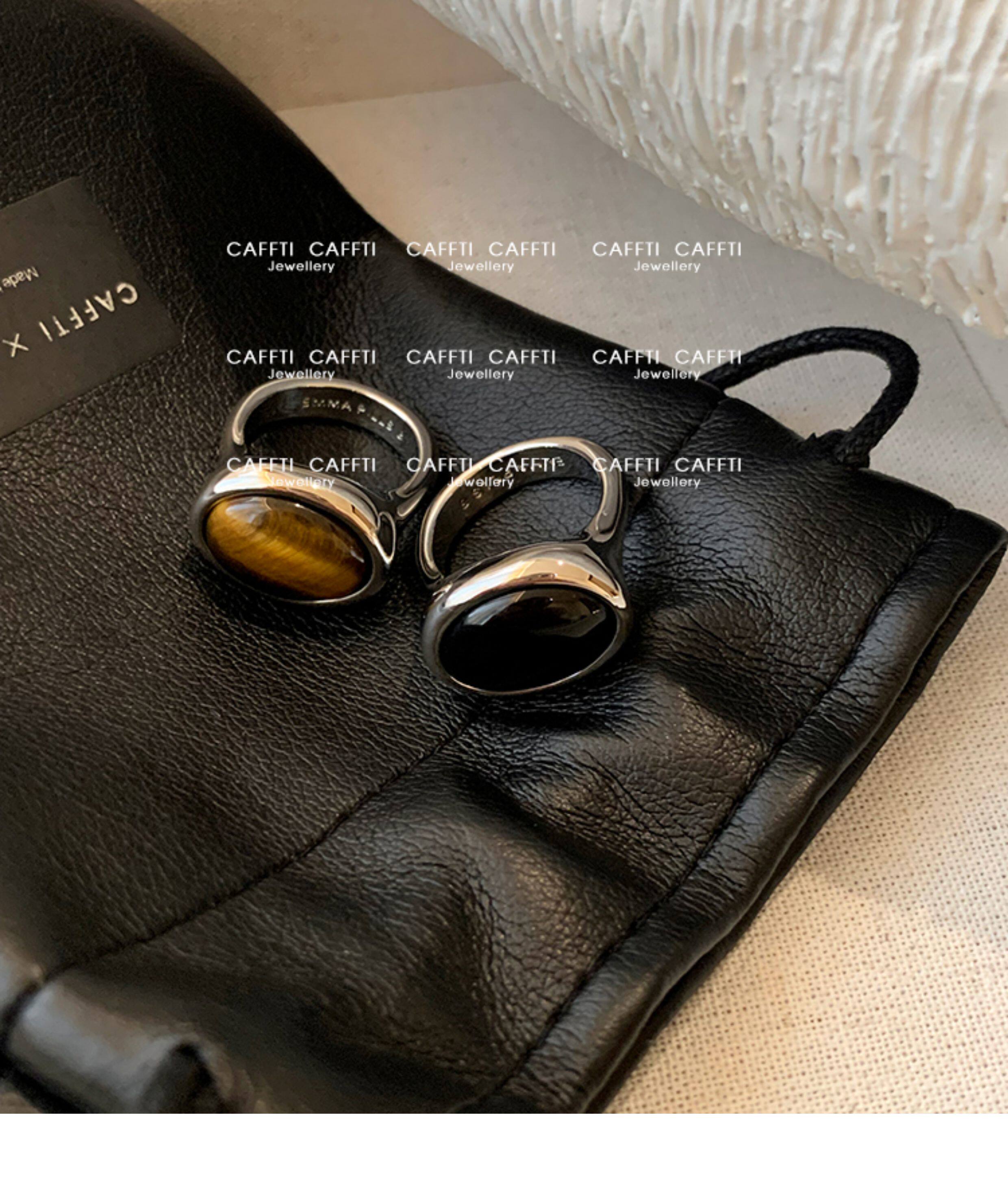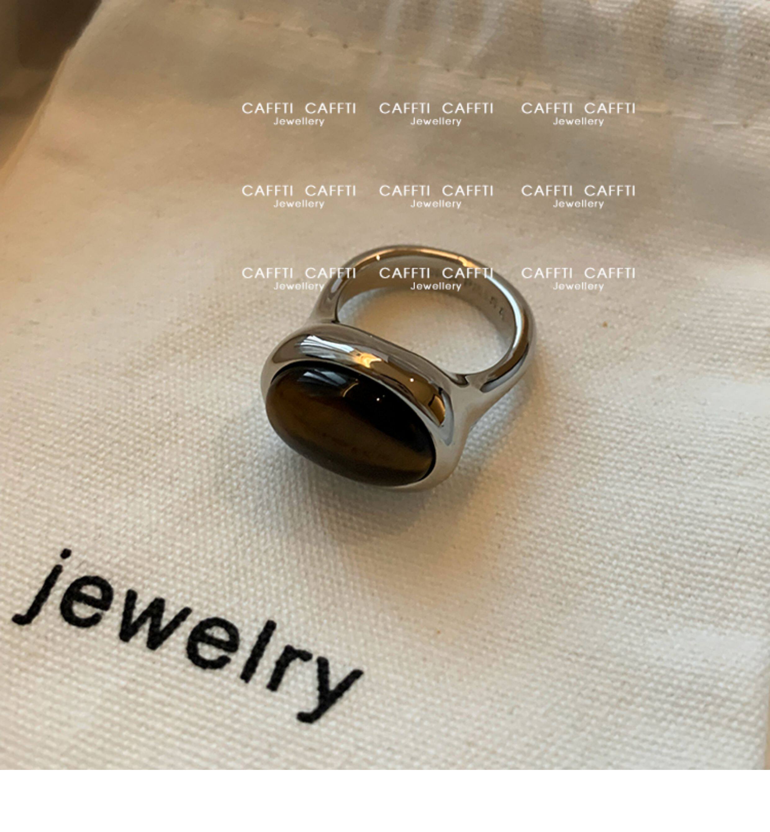 天然虎眼寶石黑瑪瑙美拉德偏財食指戒指女小衆設計輕奢高級感指環