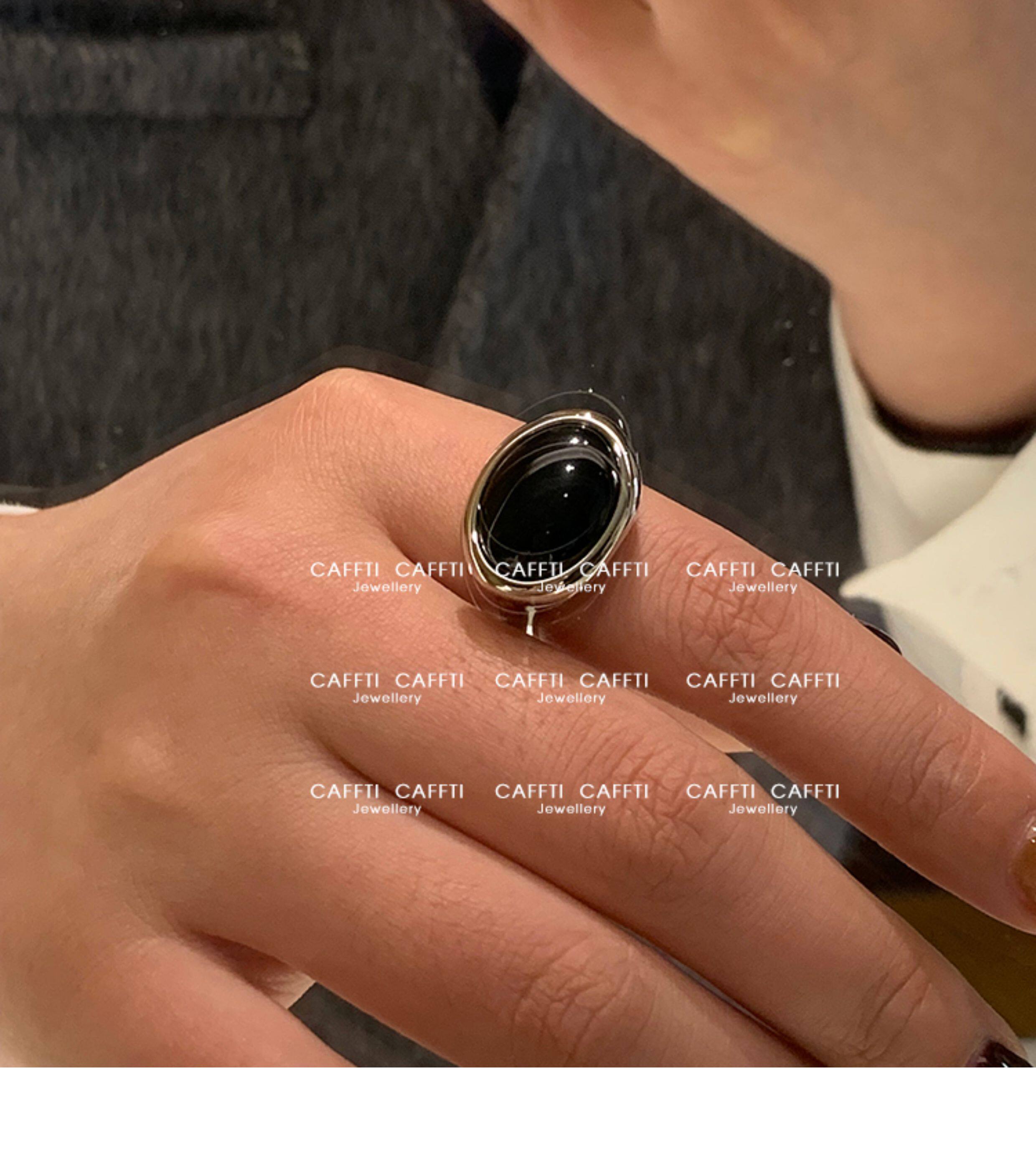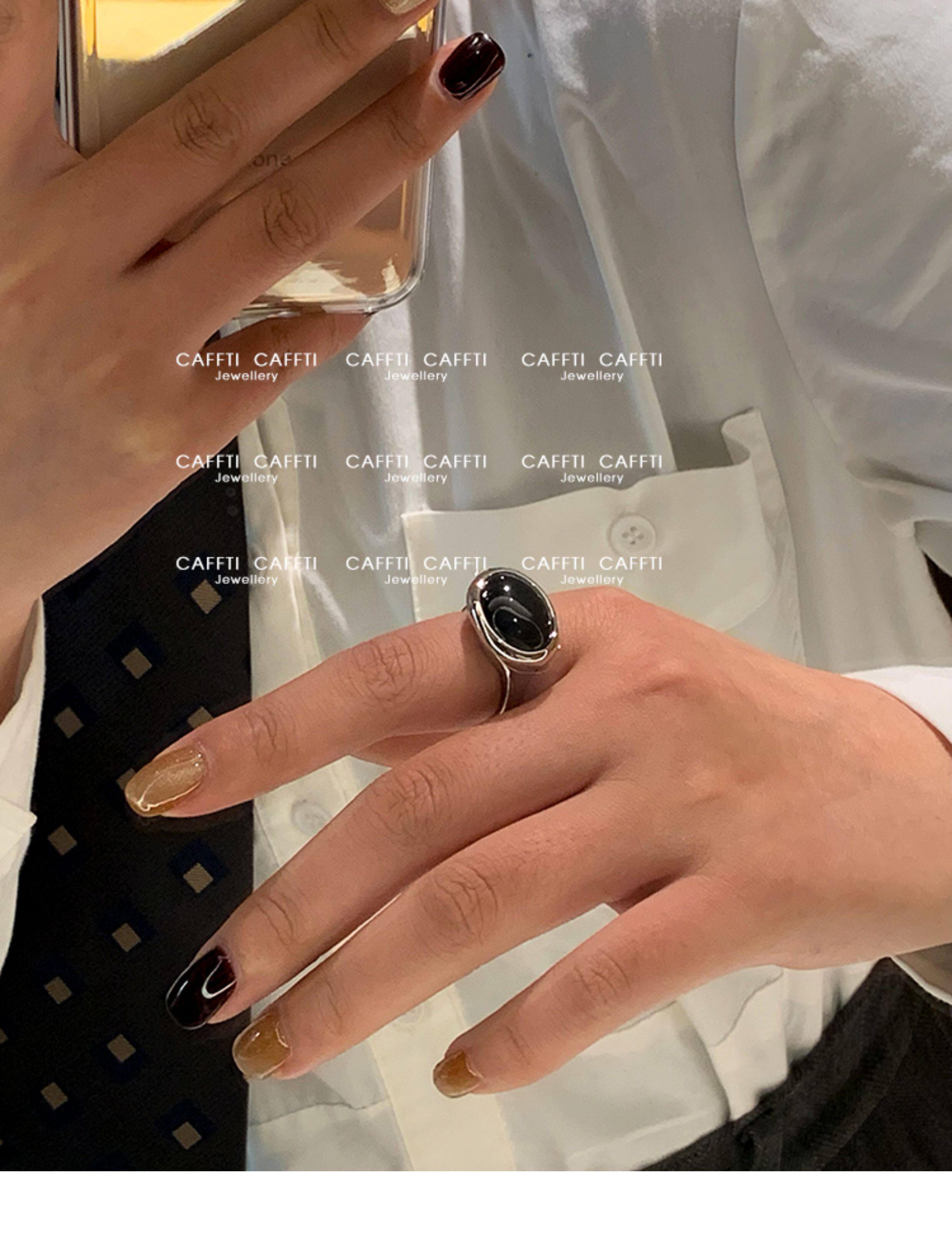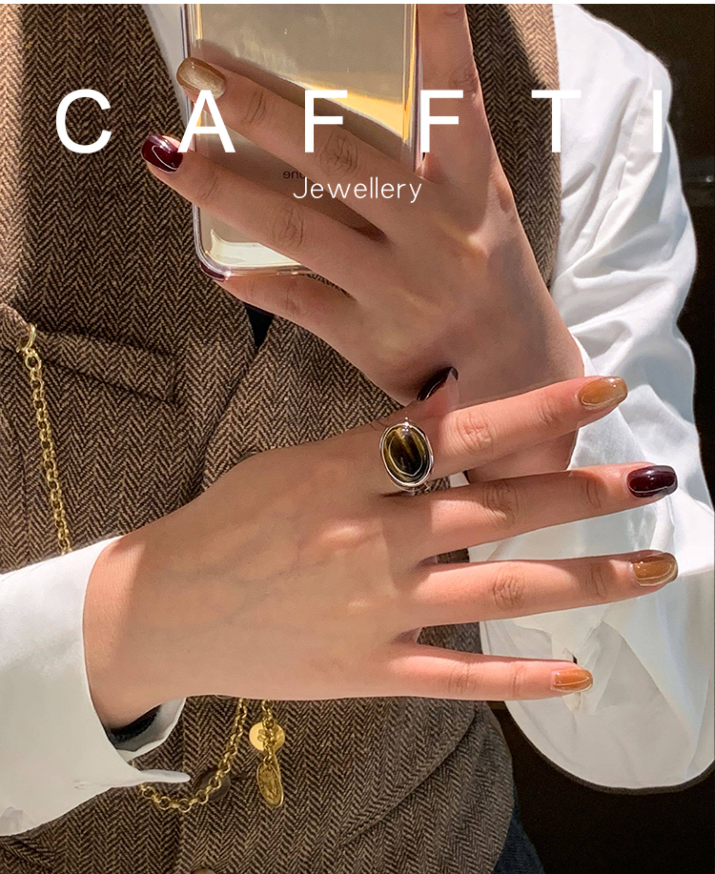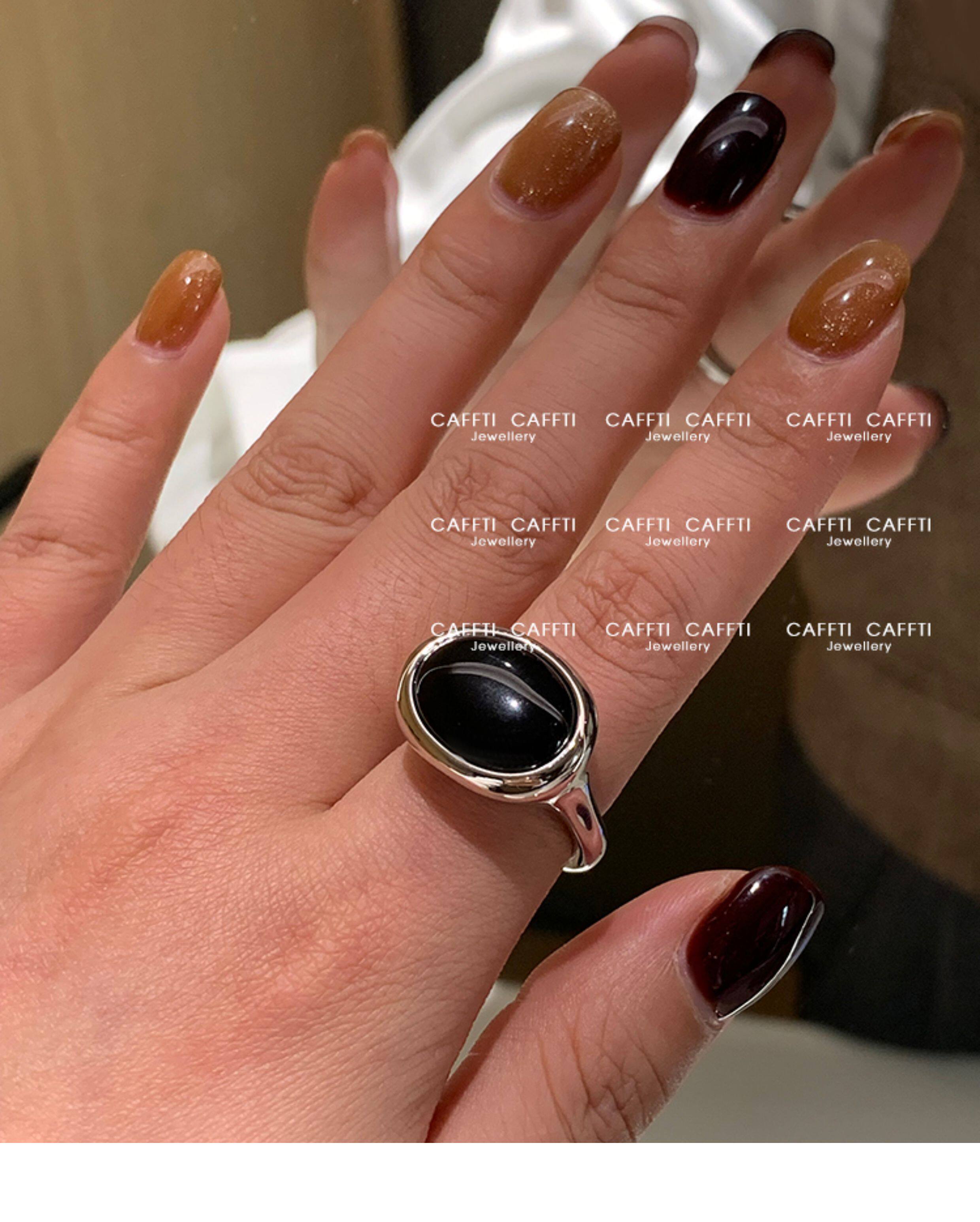 天然虎眼寶石黑瑪瑙美拉德偏財食指戒指女小衆設計輕奢高級感指環
