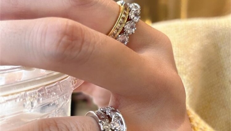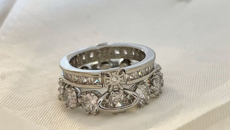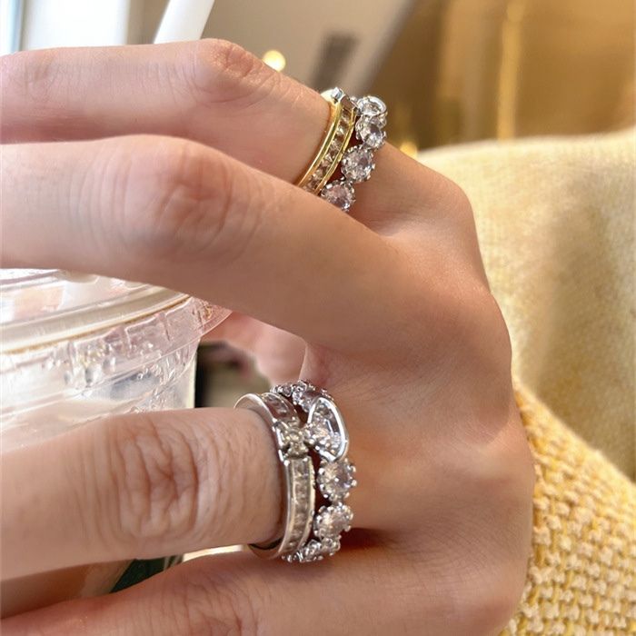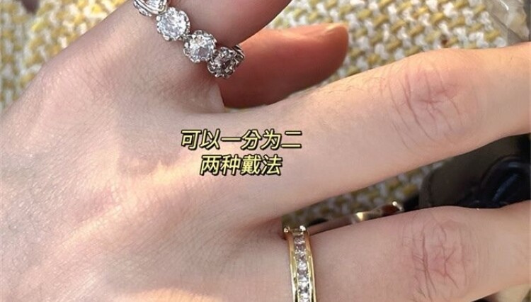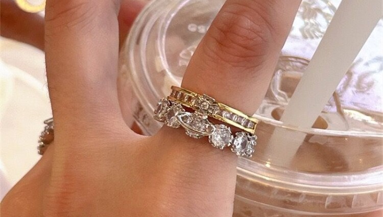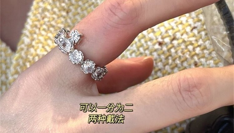 西太後土星開口戒指雙層可拆分閃鑽皇冠戒指高級感曡戴輕奢設計感