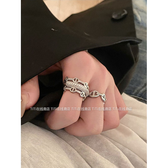 高級感~豬鼻子滿鑽開口戒指女輕奢冷淡風食指曡戴可調節指環套戒