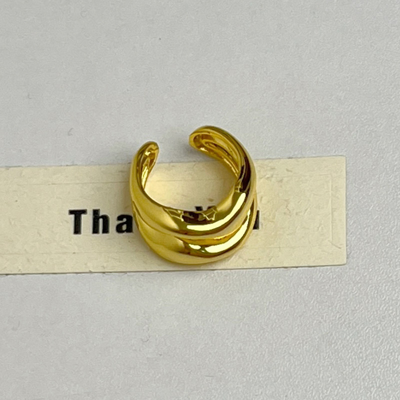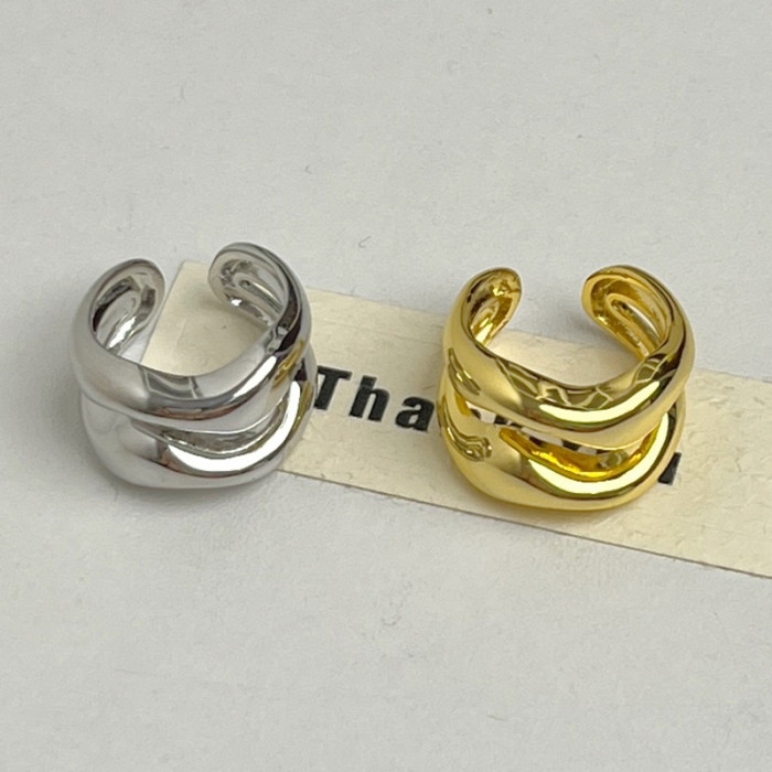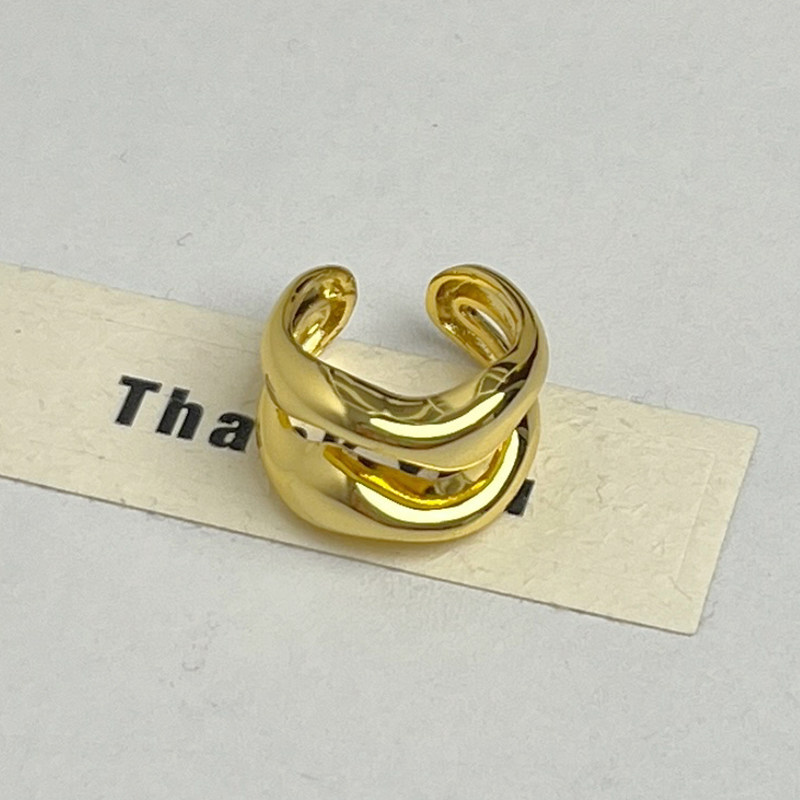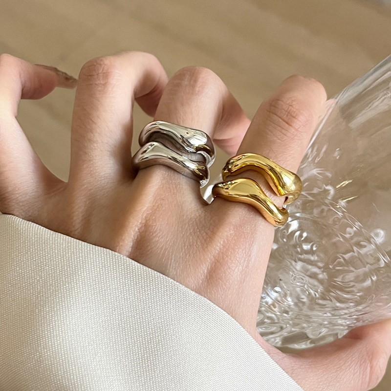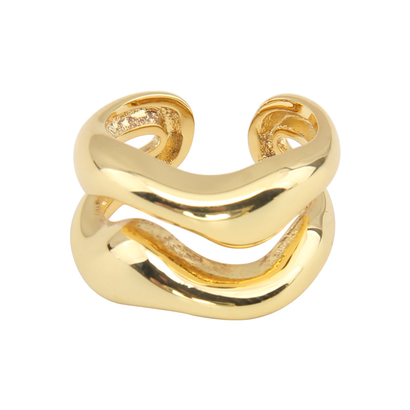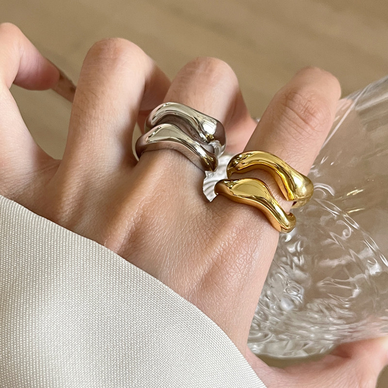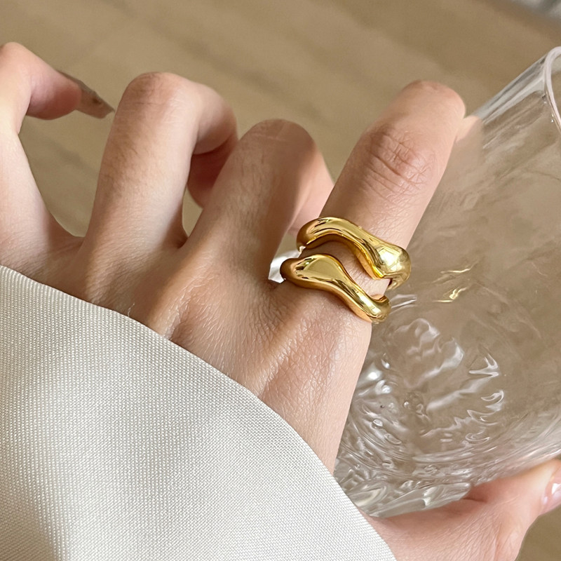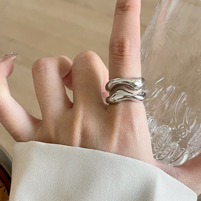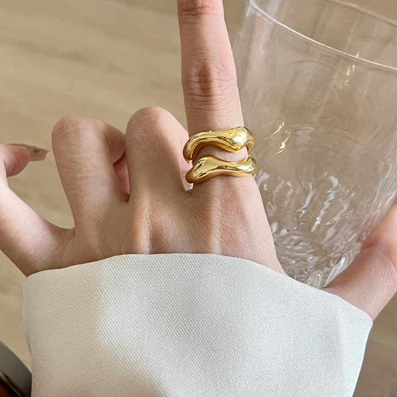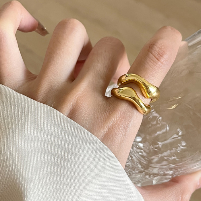 小衆設計不規則鏤空波浪弧形開口戒指輕奢高級感簡約獨特素圈指環