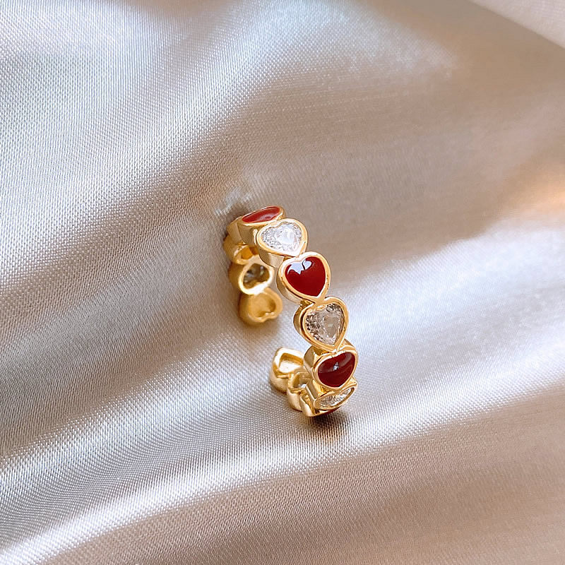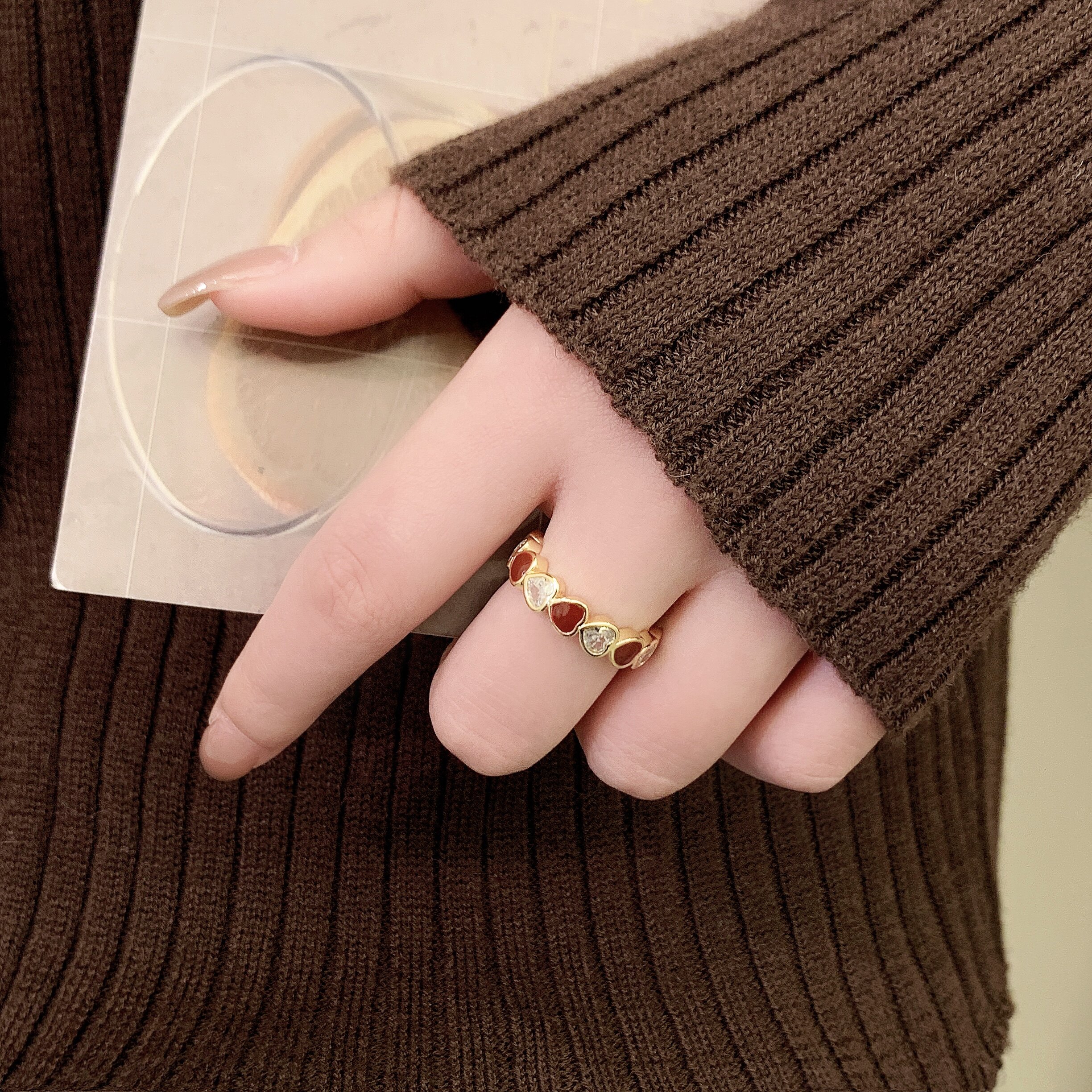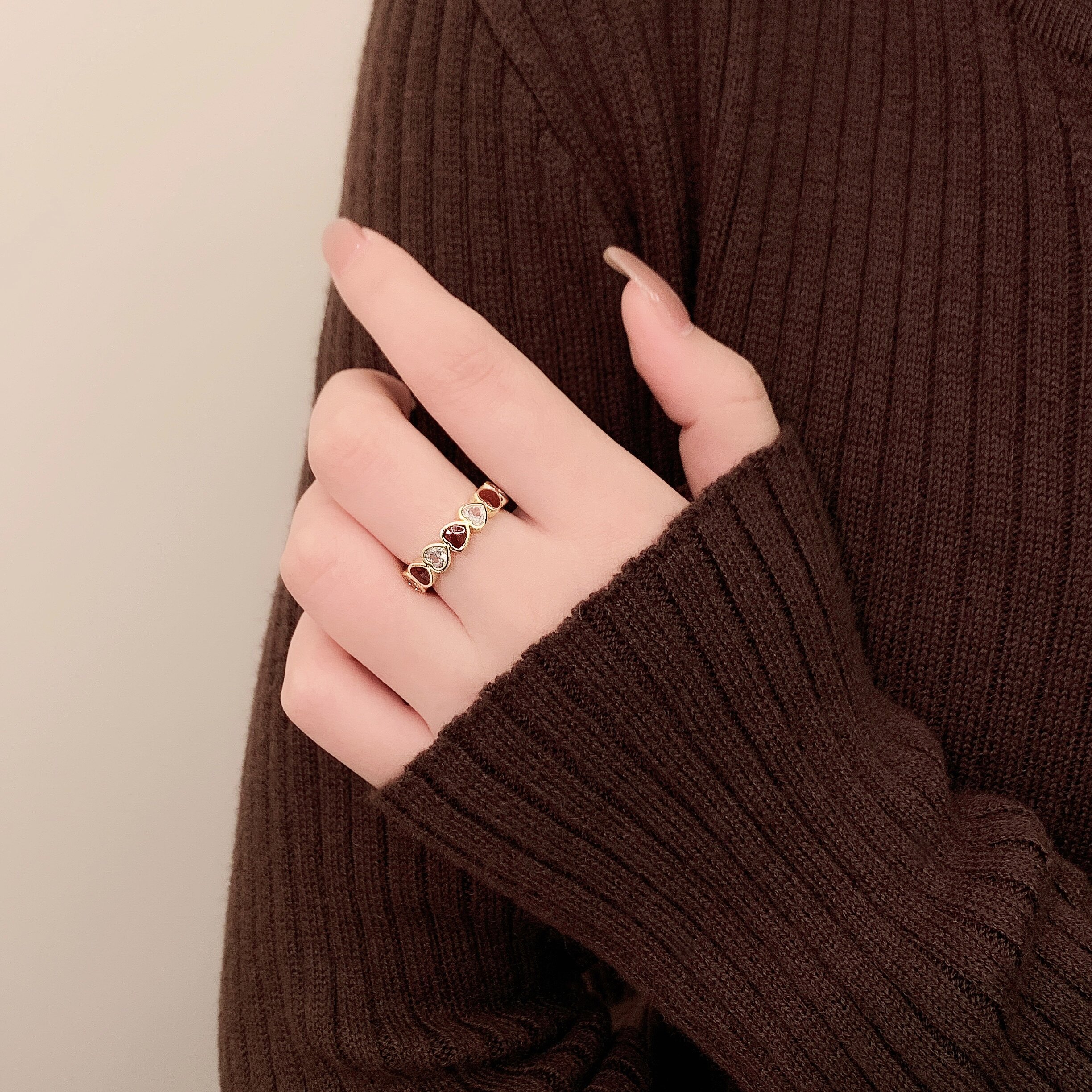 2026新款爆款輕奢高級感安可拉紅愛心開口戒指女旺財指環小衆設計