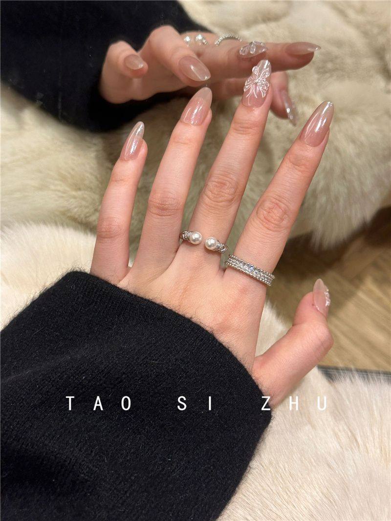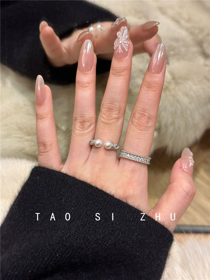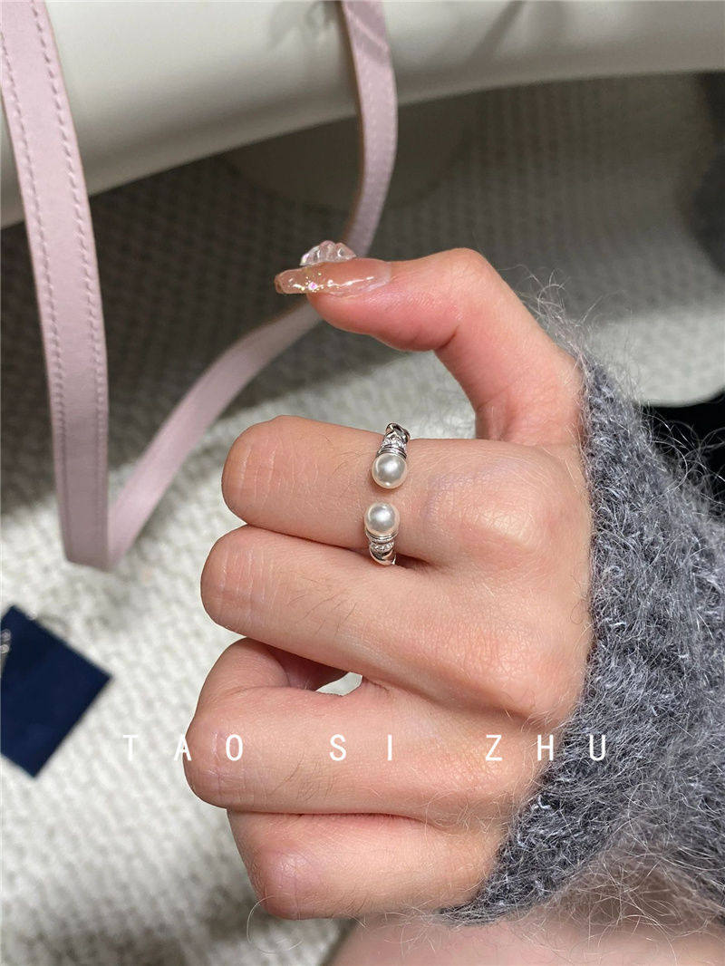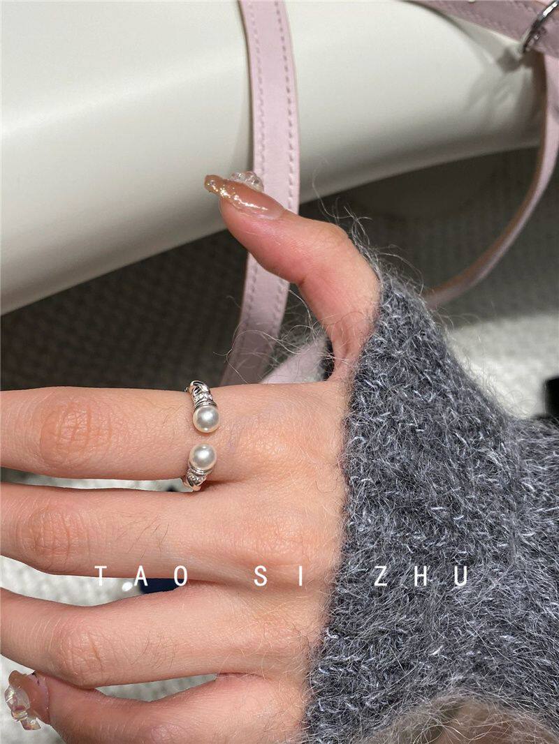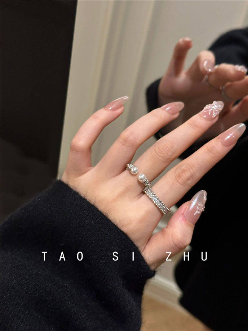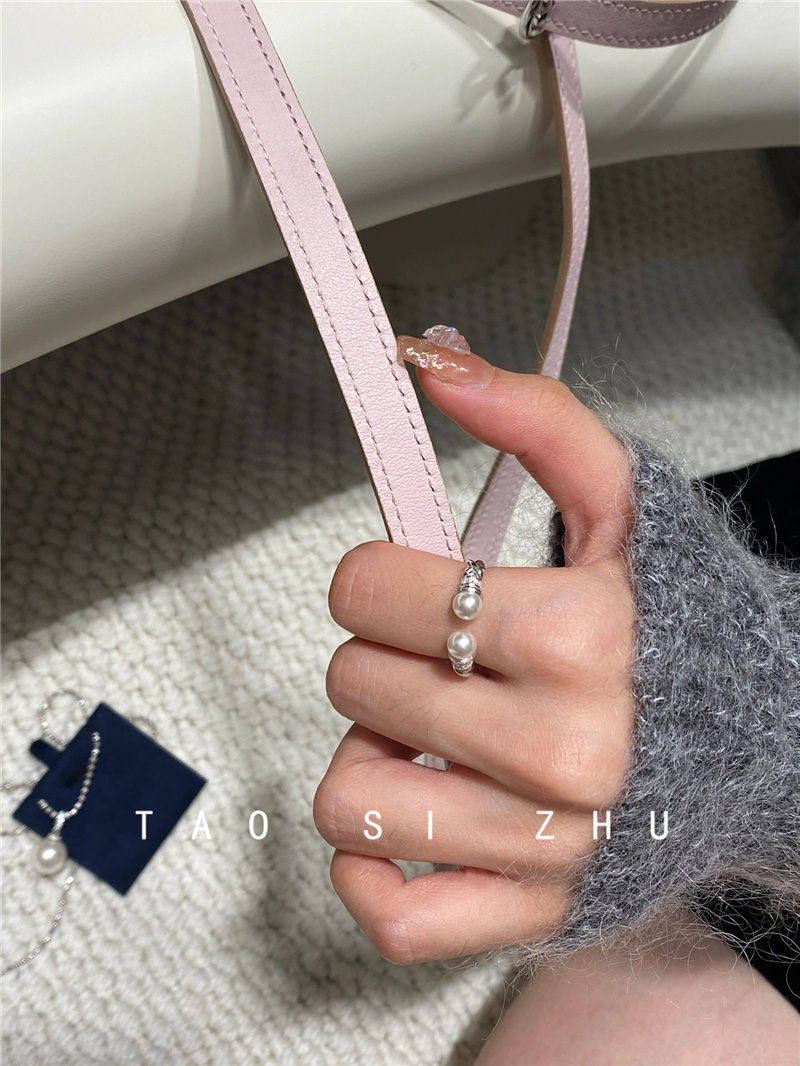 高級感氣質麻花珍珠開口戒指秋冬輕奢時尚全鑽寬款指環