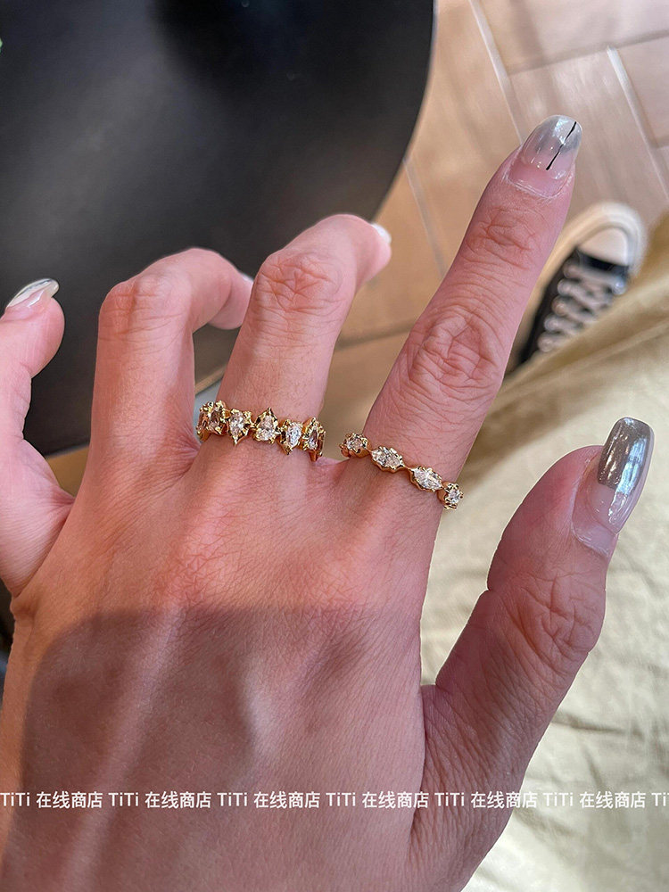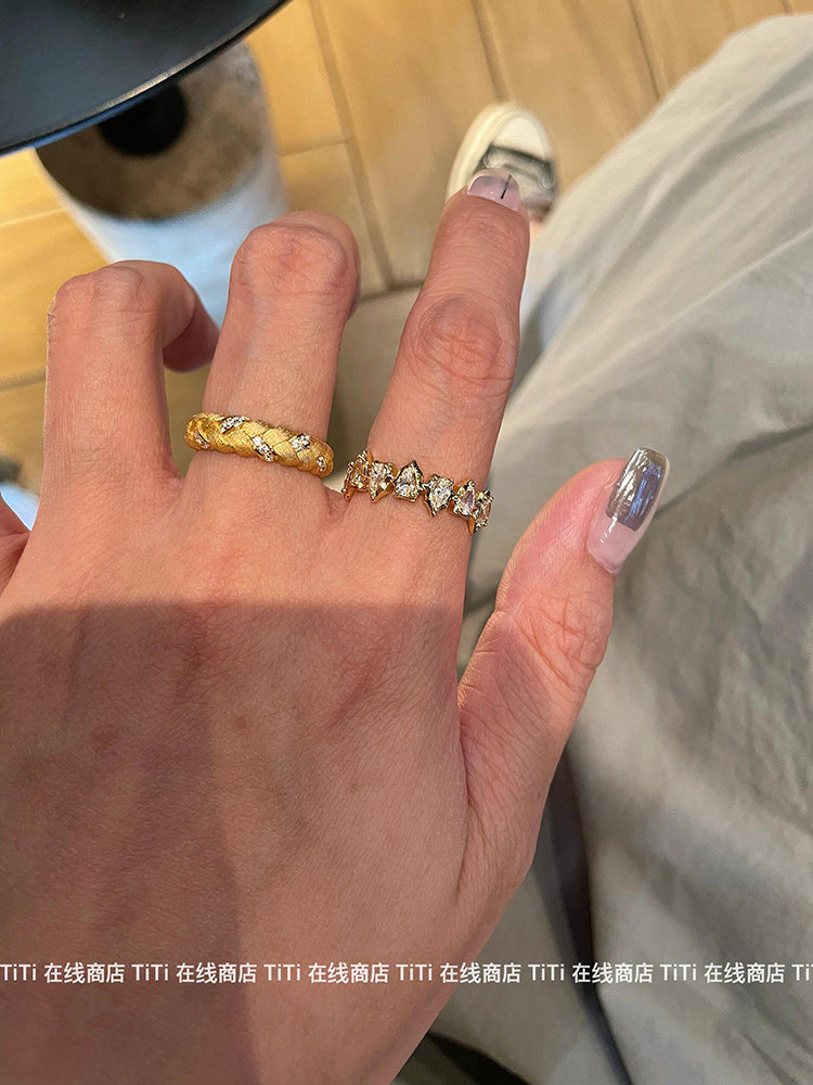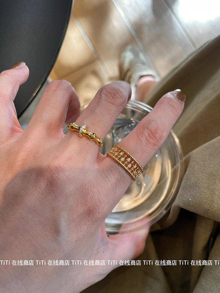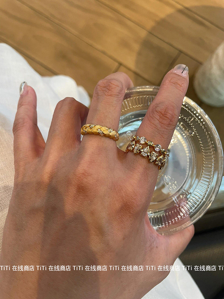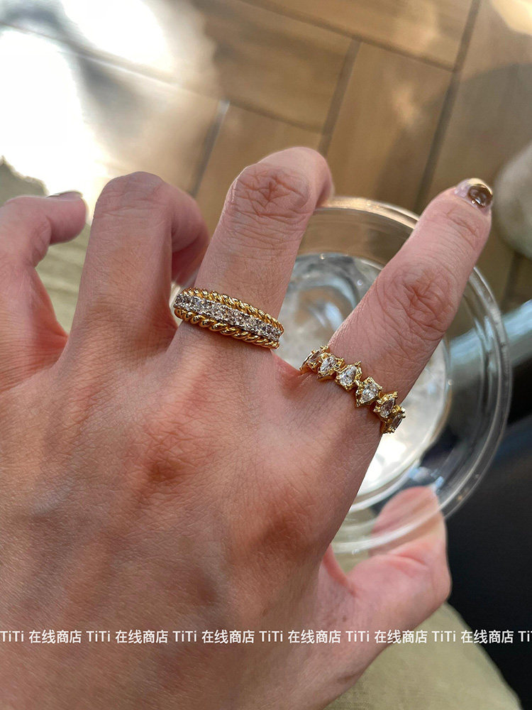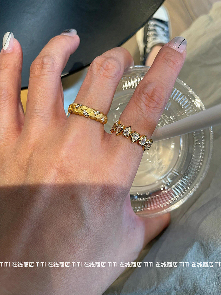 vintage中古拉絲戒指復古滿鑽氣質高級感輕奢珠邊蕾絲竹節排戒女