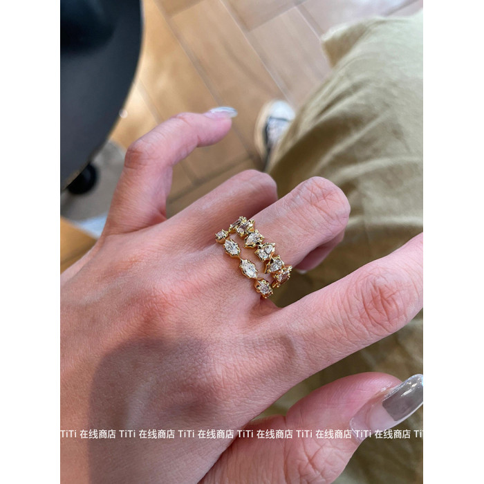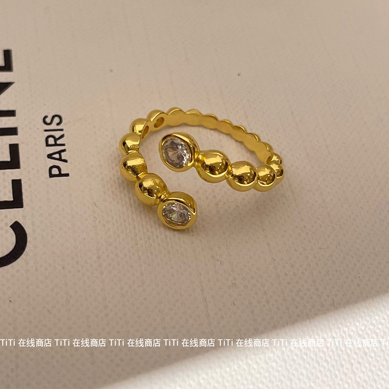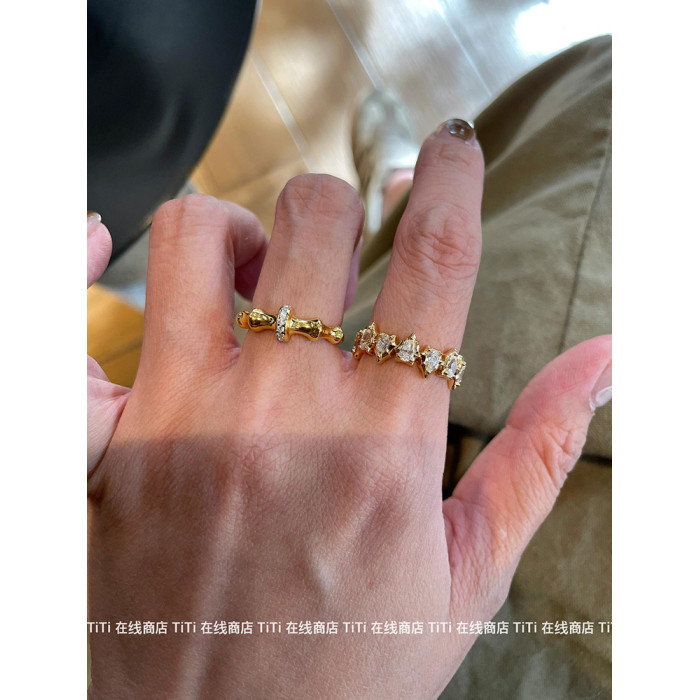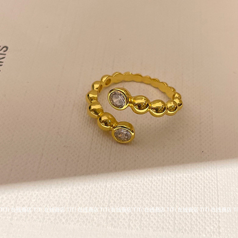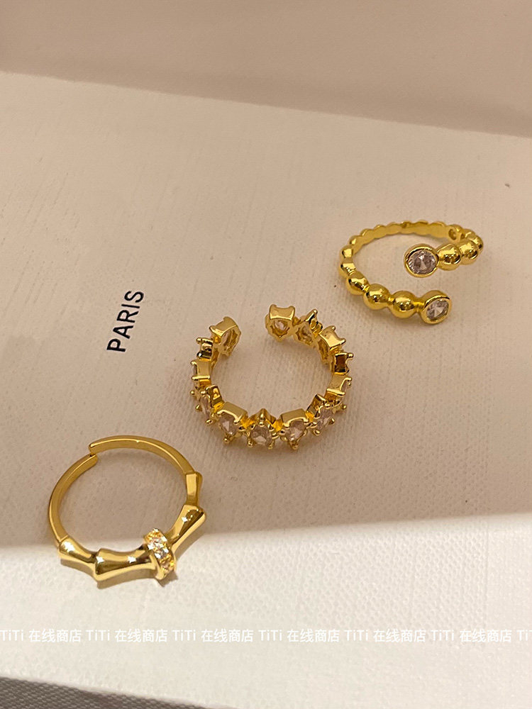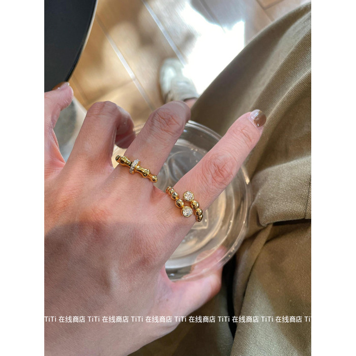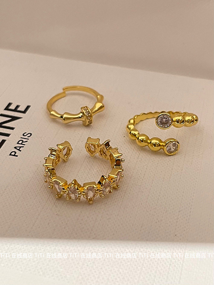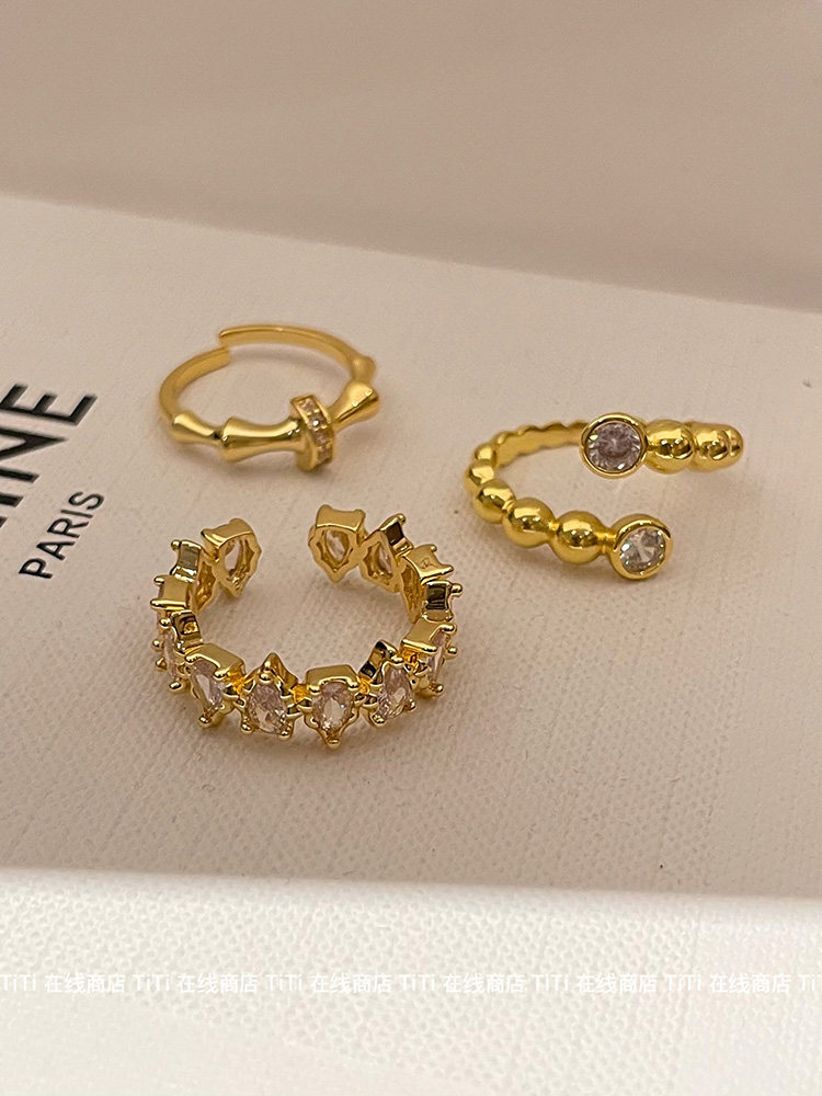 vintage中古拉絲戒指復古滿鑽氣質高級感輕奢珠邊蕾絲竹節排戒女