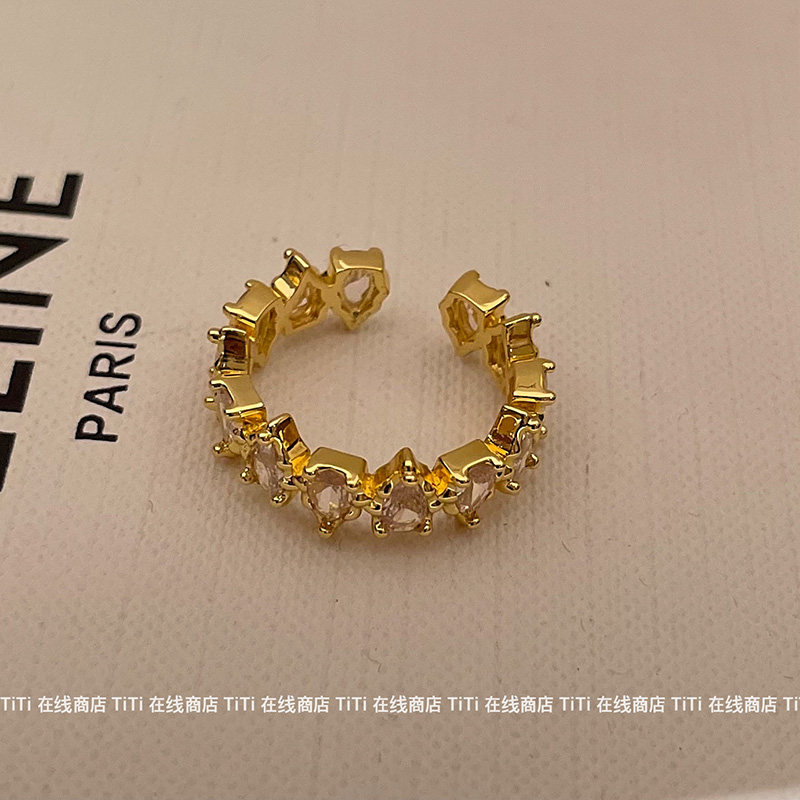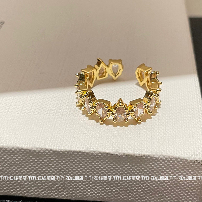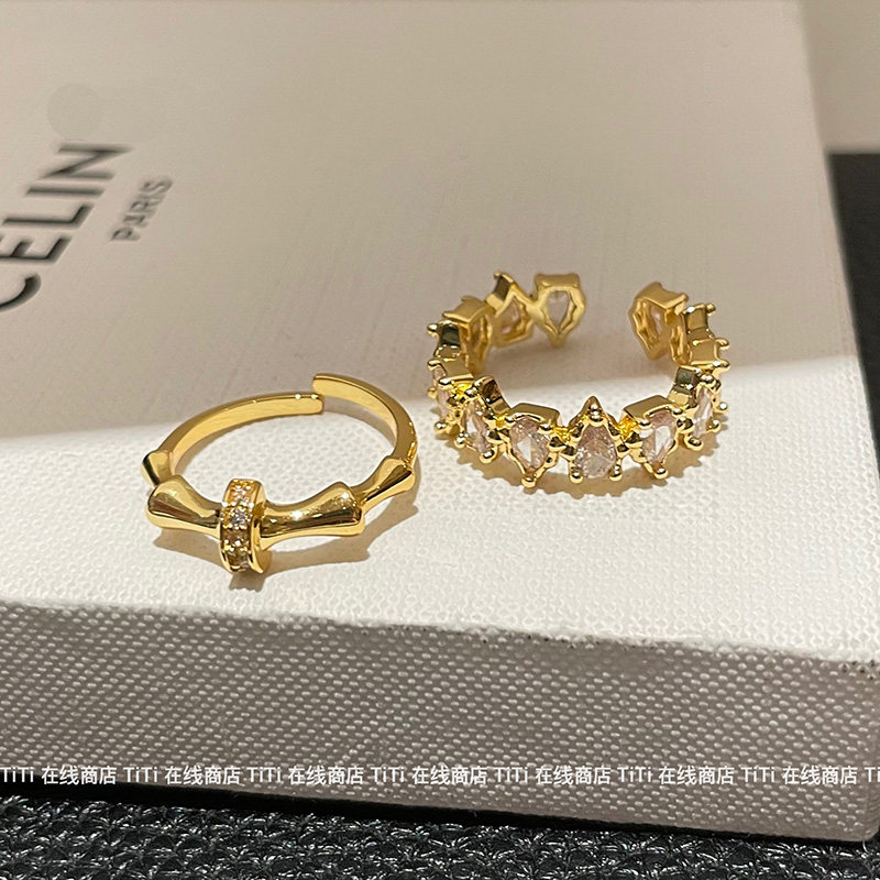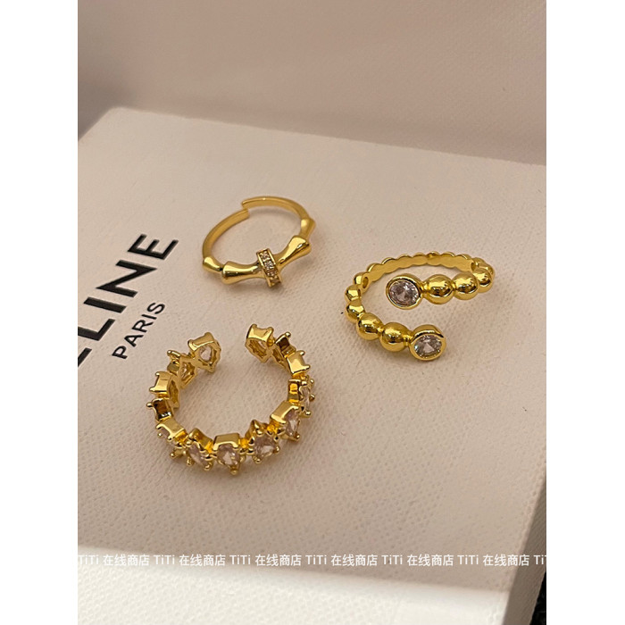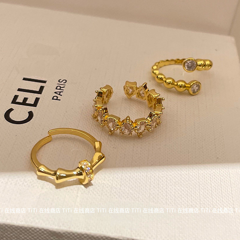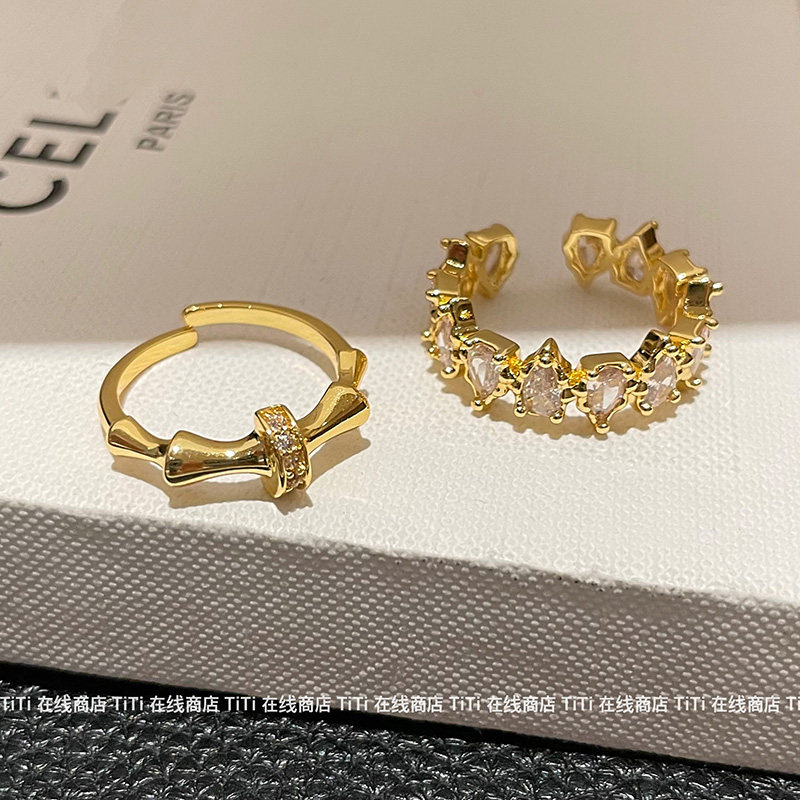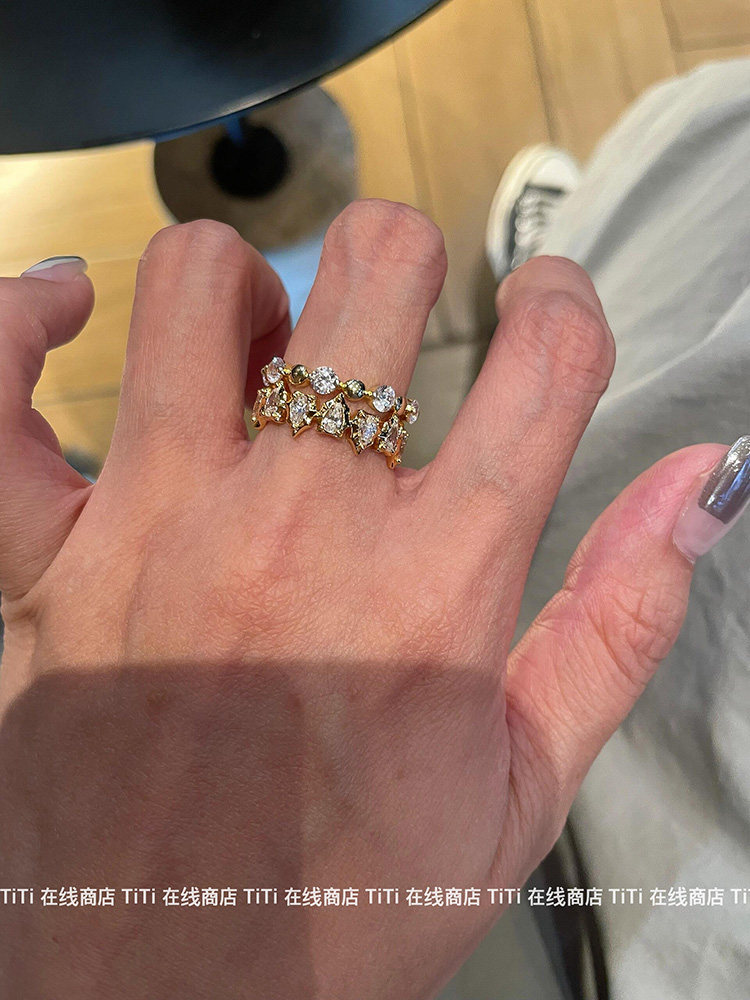 vintage中古拉絲戒指復古滿鑽氣質高級感輕奢珠邊蕾絲竹節排戒女