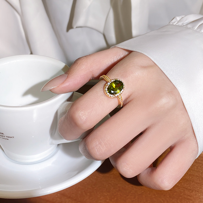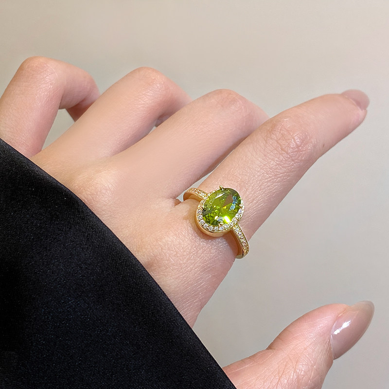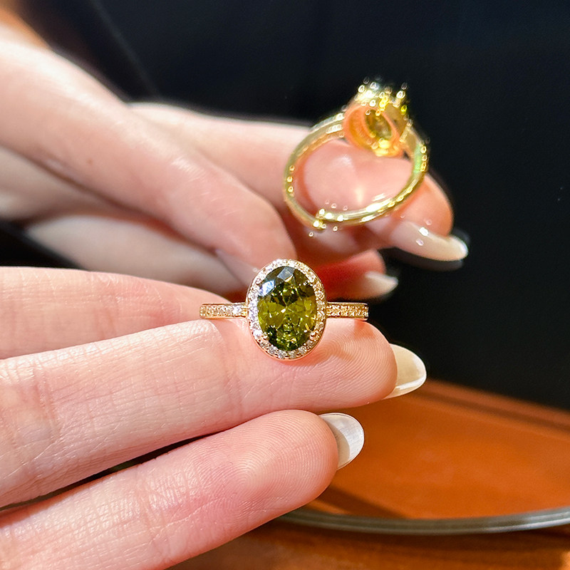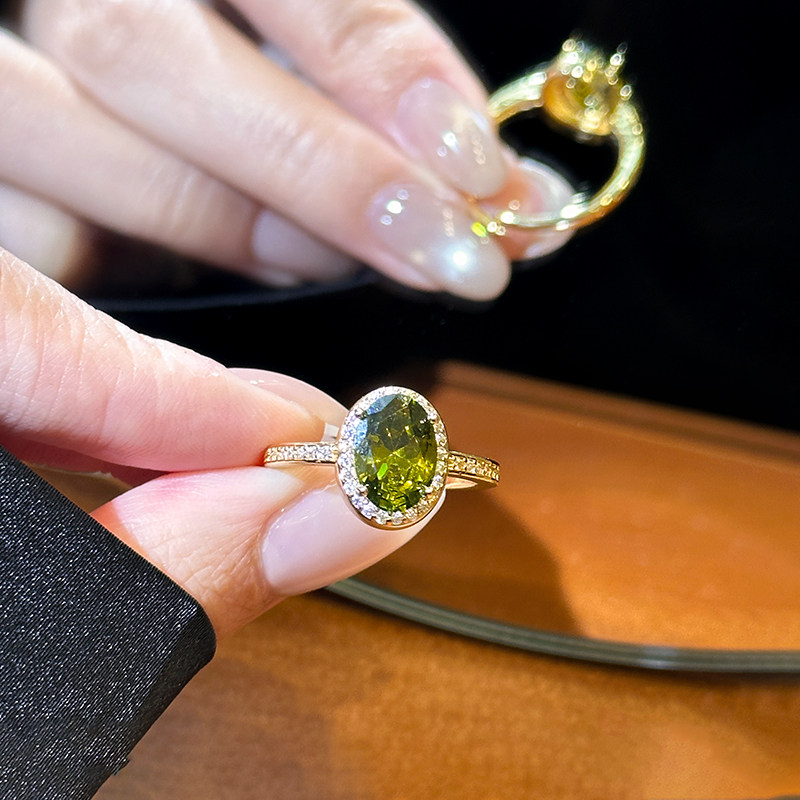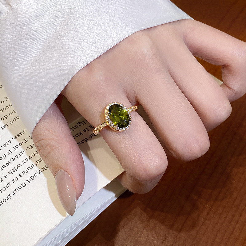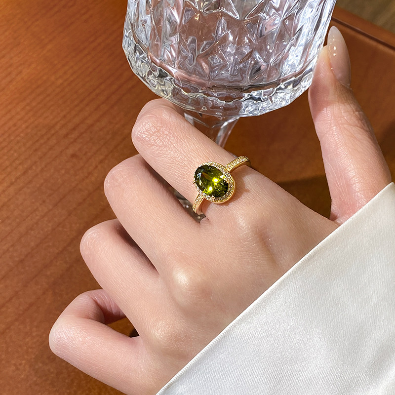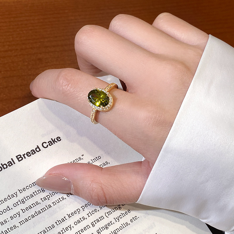 橄欖綠色鋯石水晶戒指女2026新款大食指戒設計小衆指環輕奢高級感