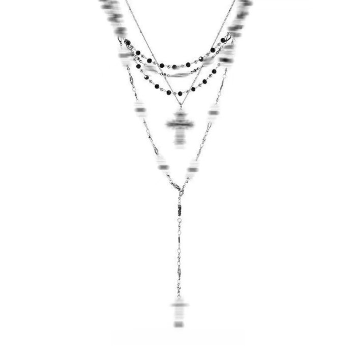 NOIR原創黑色古銀十字架多層龐克時尚長項鍊