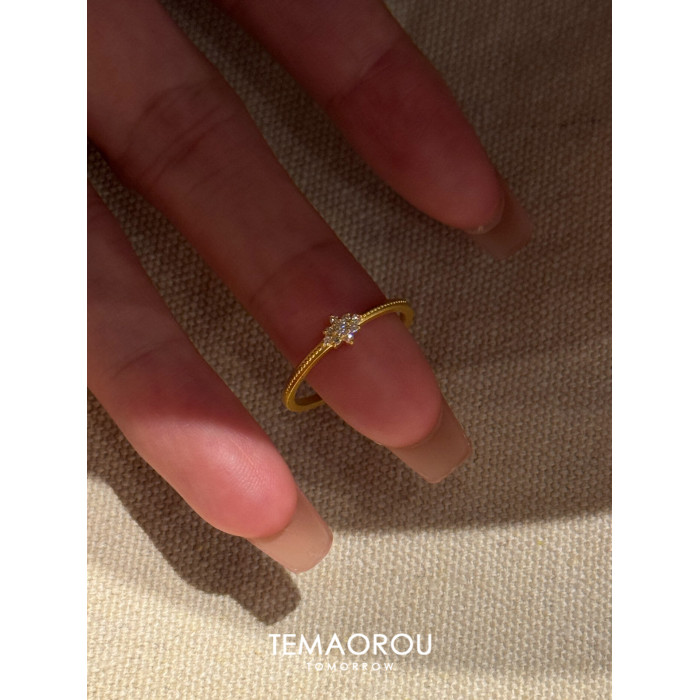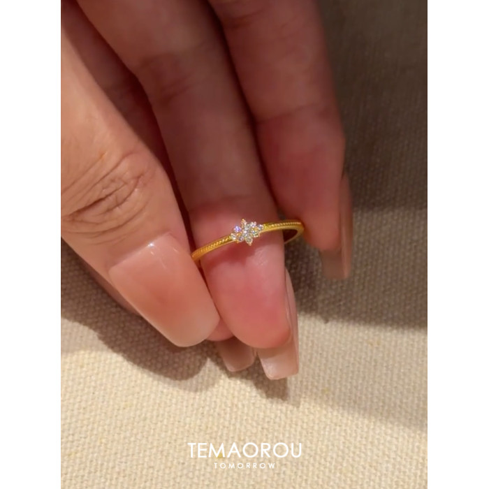 vintage中古mini閃鑽雪花細款金戒指女拉絲工藝食指戒開口指環