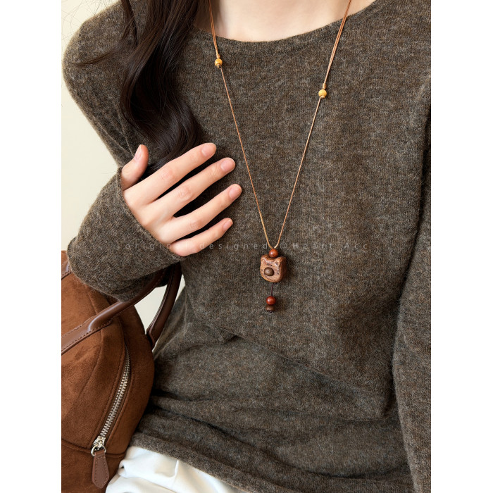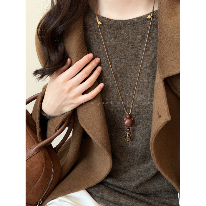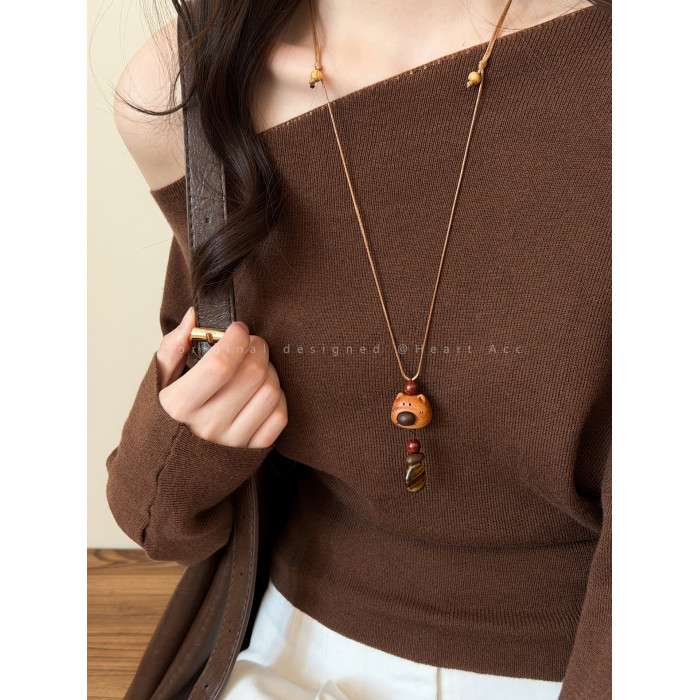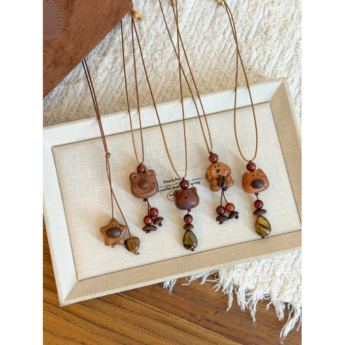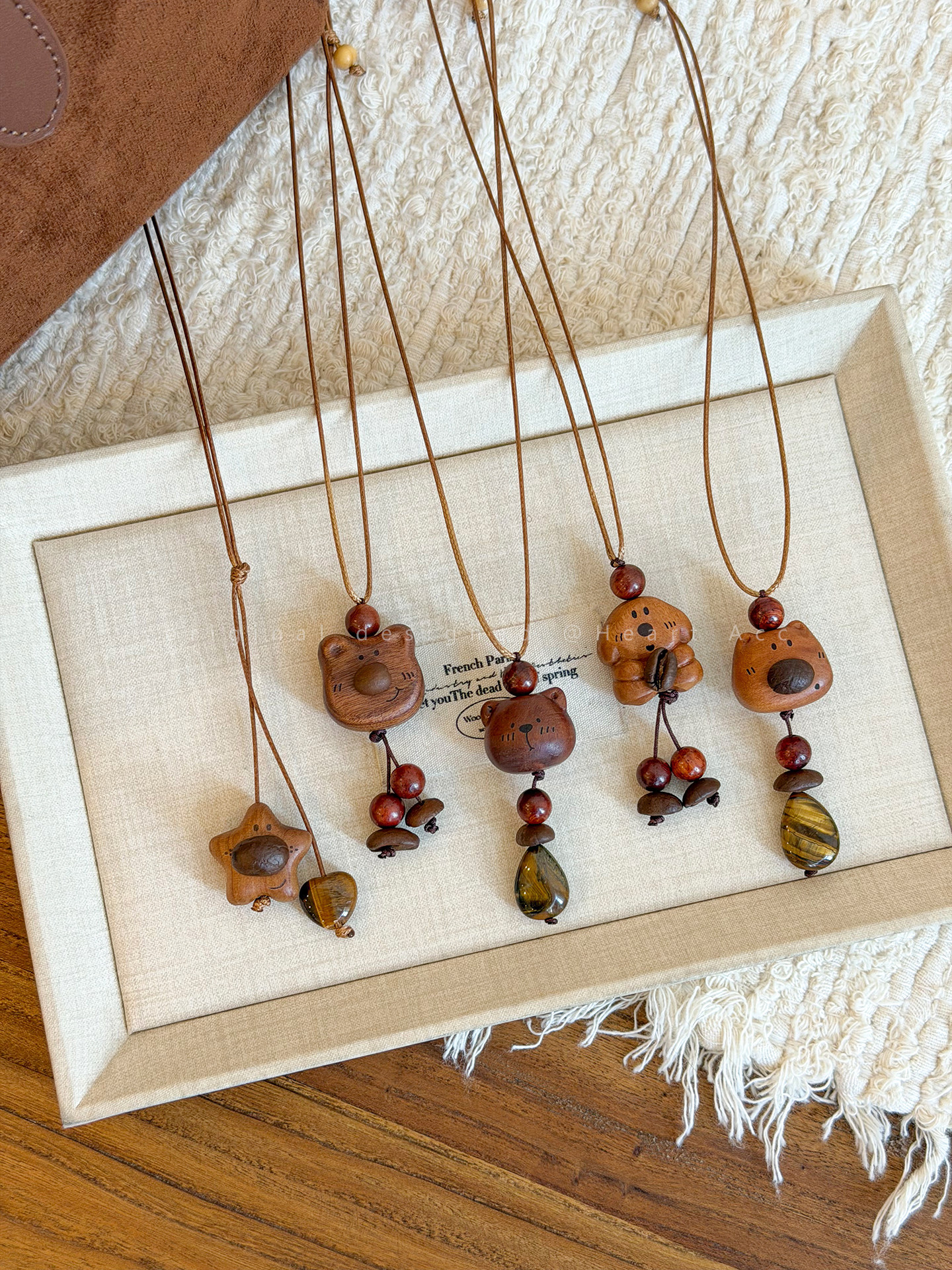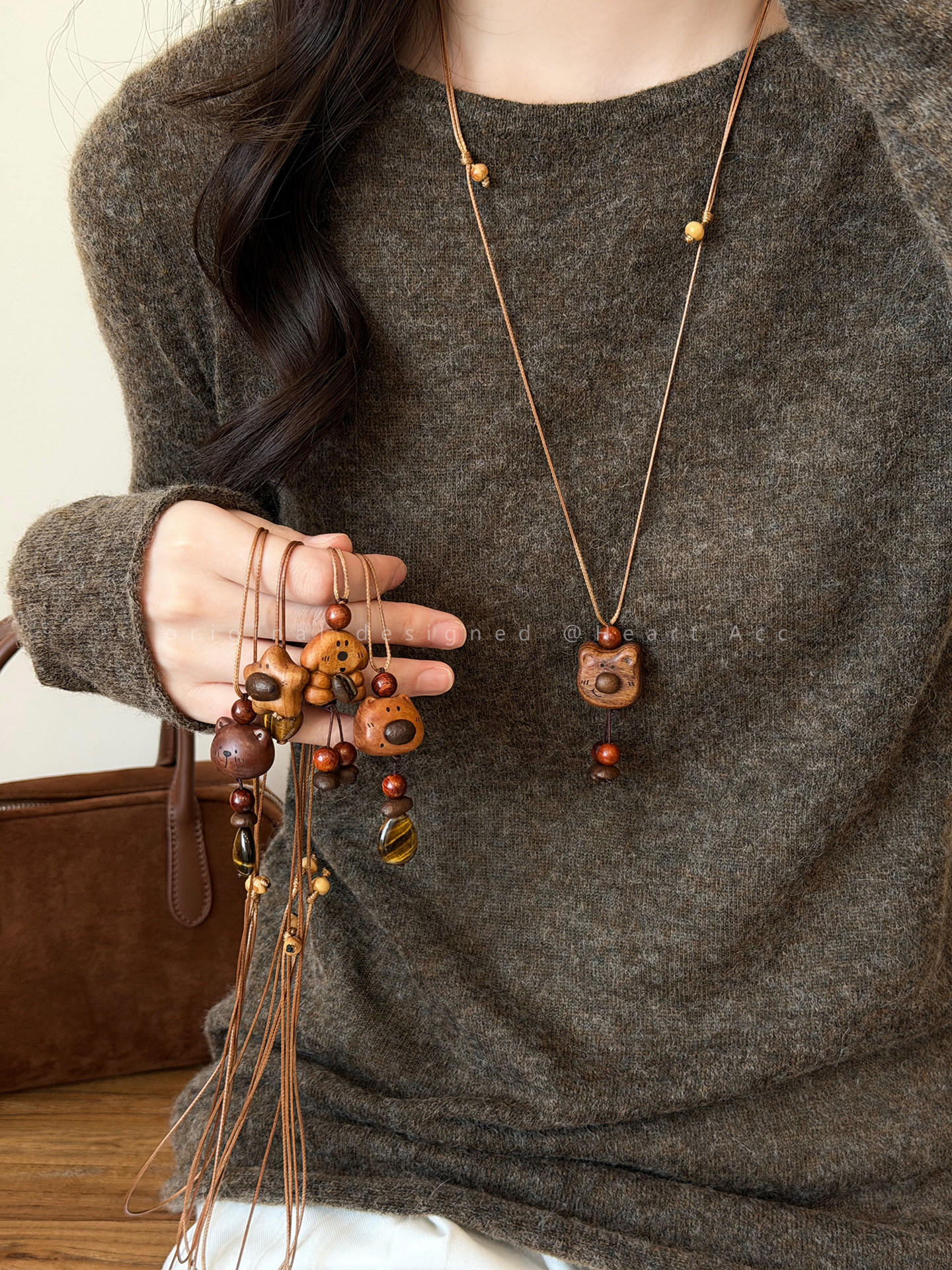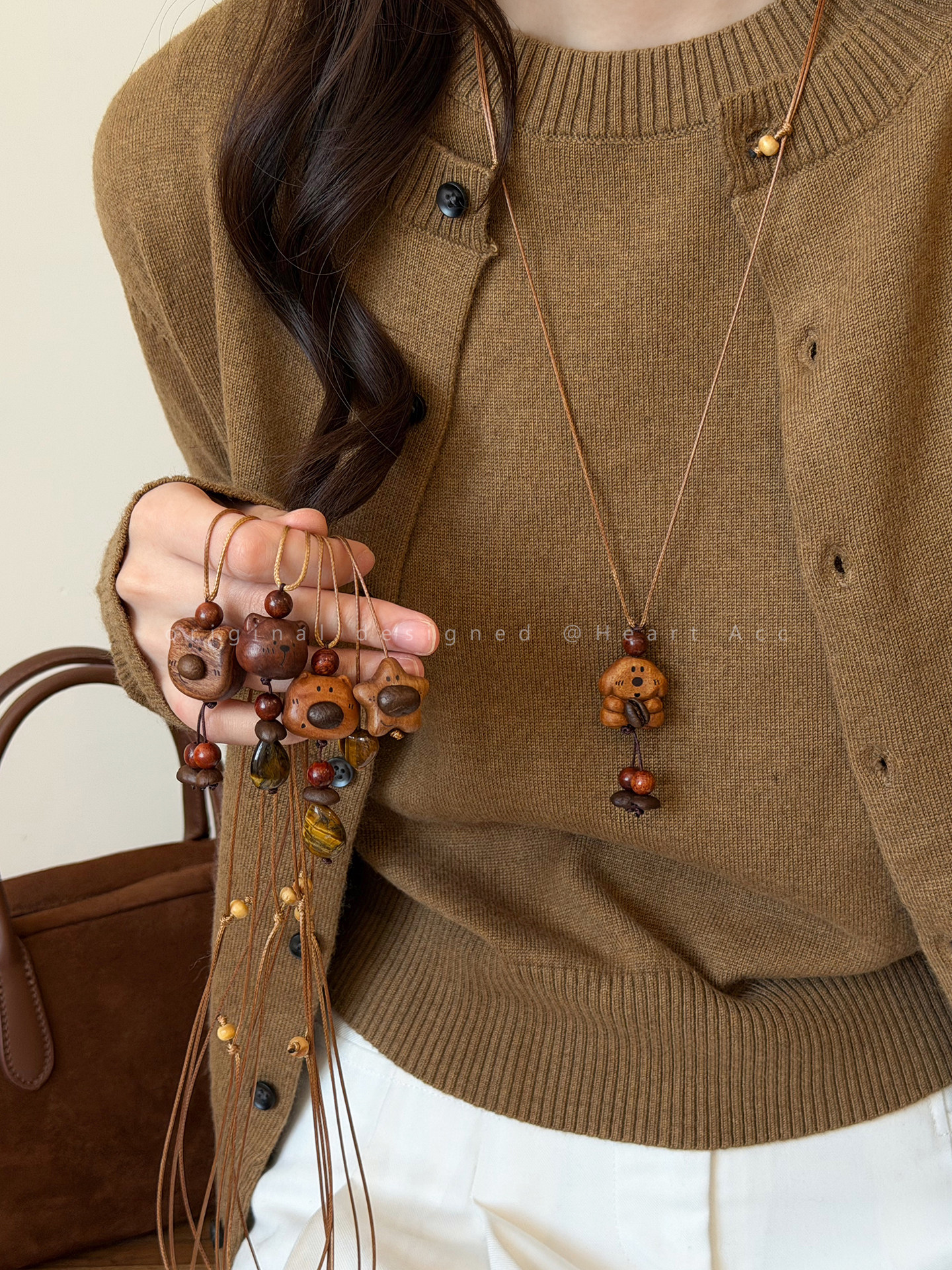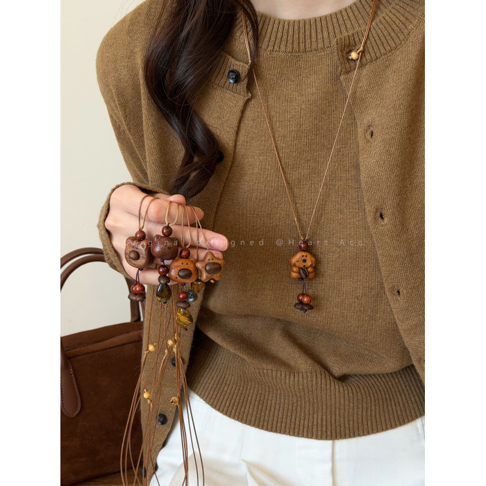 萌物來襲~木質小熊星星項鍊女秋冬可愛長款毛衣鏈小衆設計感配飾