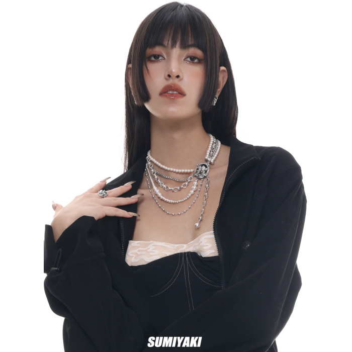 【明星同款】SUMIYAKI復古美式多層珍珠項鍊曡戴小衆頸鏈明星同款