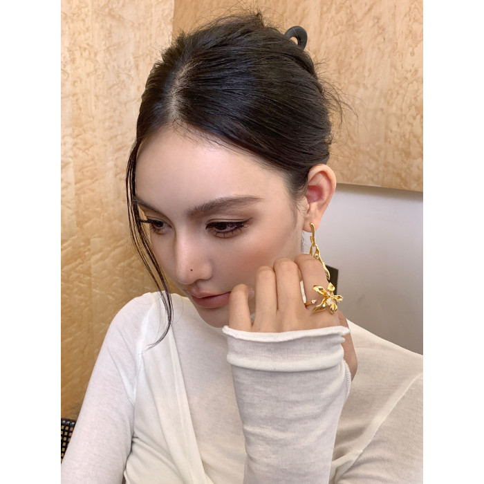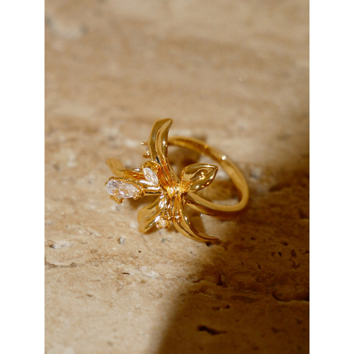 Boonee alus原創百合花鑲鑽開口戒指女氣質輕奢冷淡風食指戒