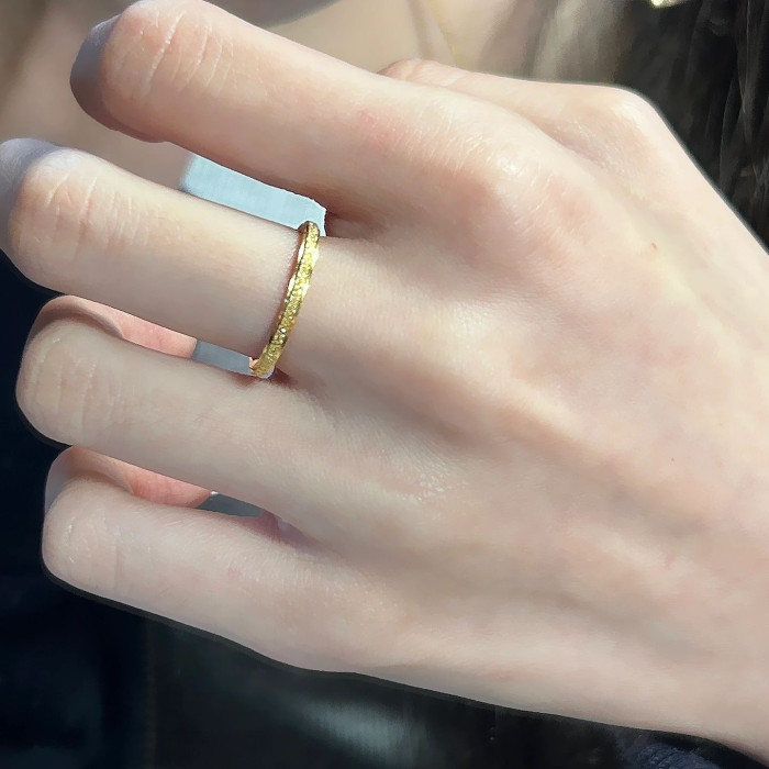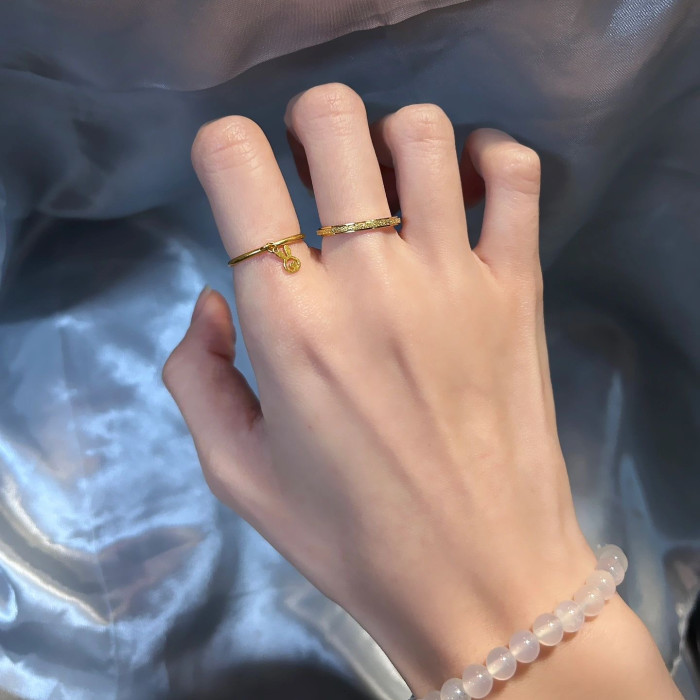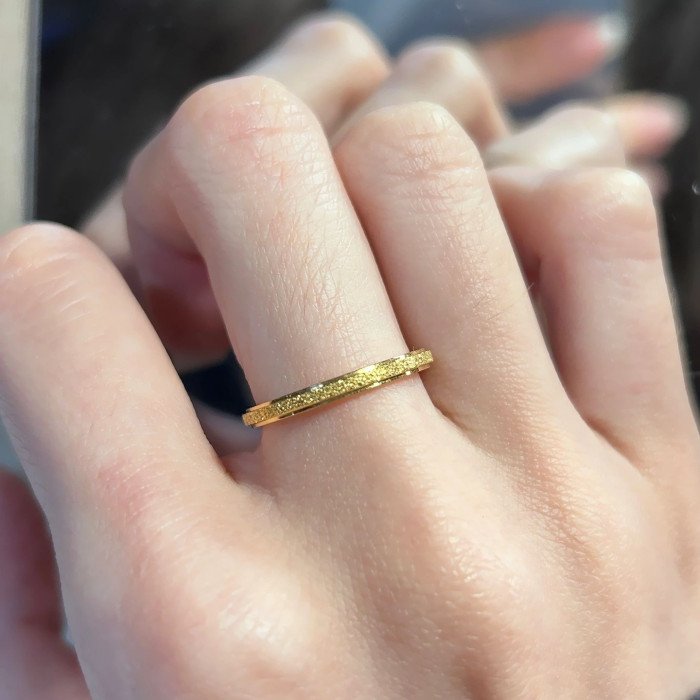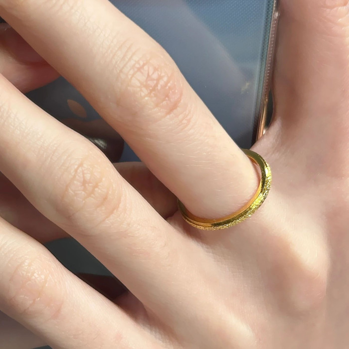 精緻大小姐專屬!洗澡洗手不掉色古法磨砂金河細膩戒指中指食指戒