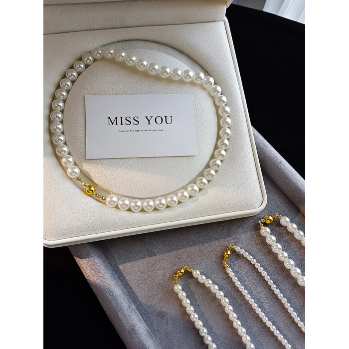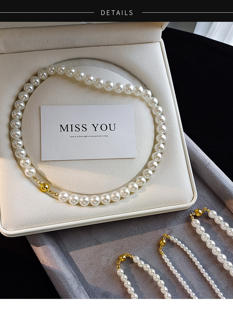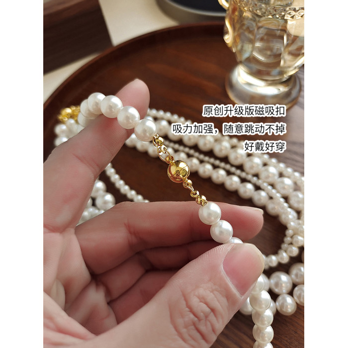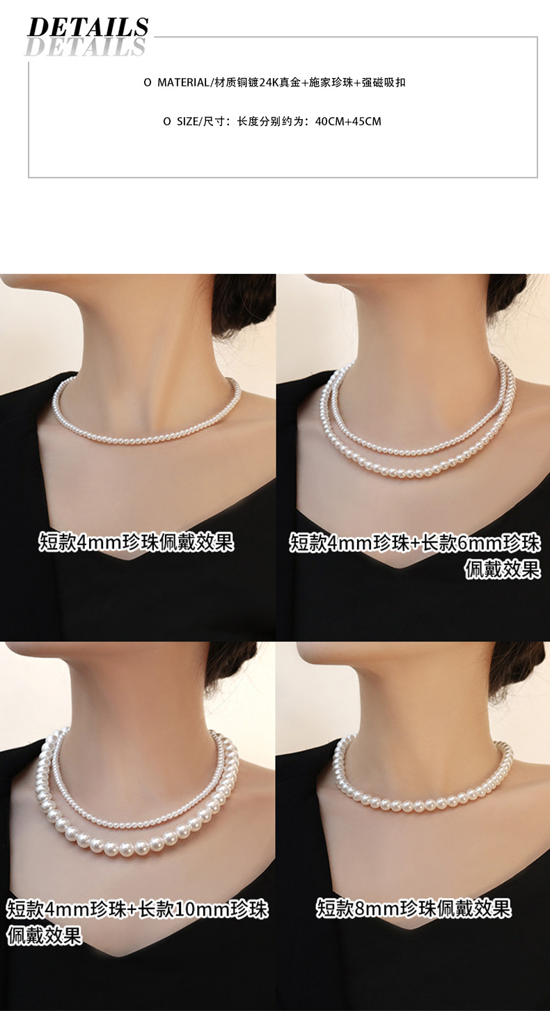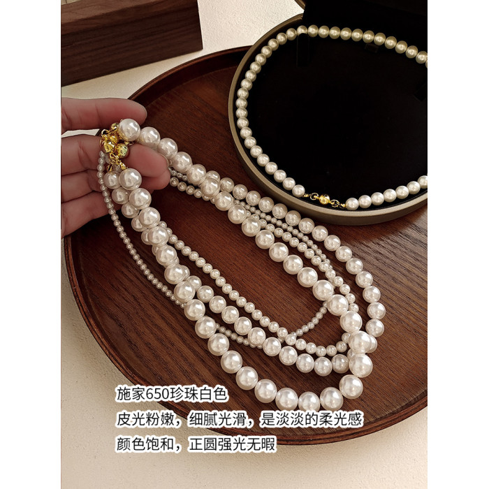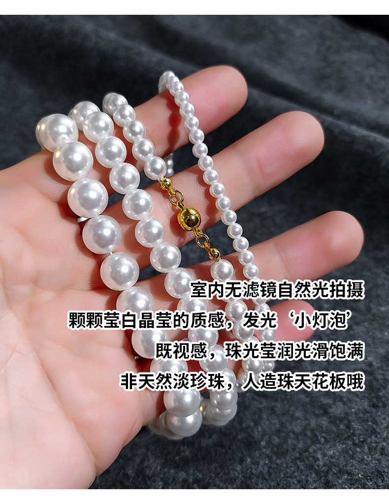 施家澳白色倪妮同款珍珠項鍊女輕奢鎖骨鍊2026新款爆款磁吸釦頸鏈
