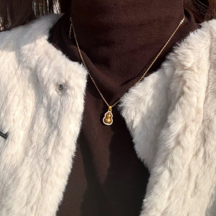 金店同款福祿古法手工葫蘆項鍊吊墜女時來運轉鑲鑽百搭掛墜新年風