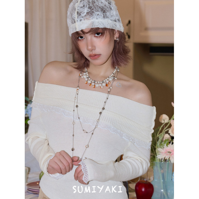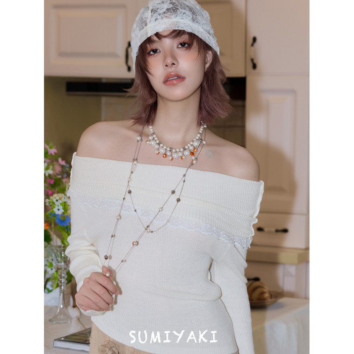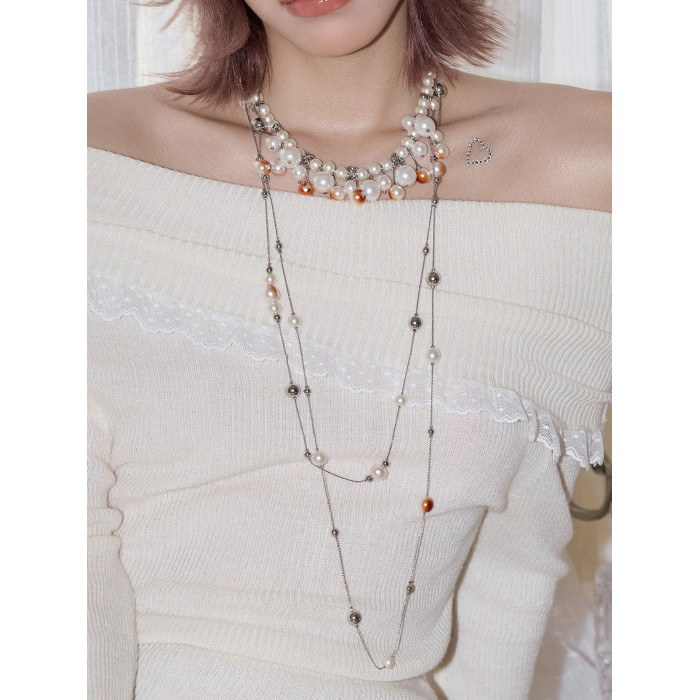 SUMIYAKI 曡戴利器! 原創燃燒破碎珍珠項鍊火焰長款毛衣鏈氛圍感