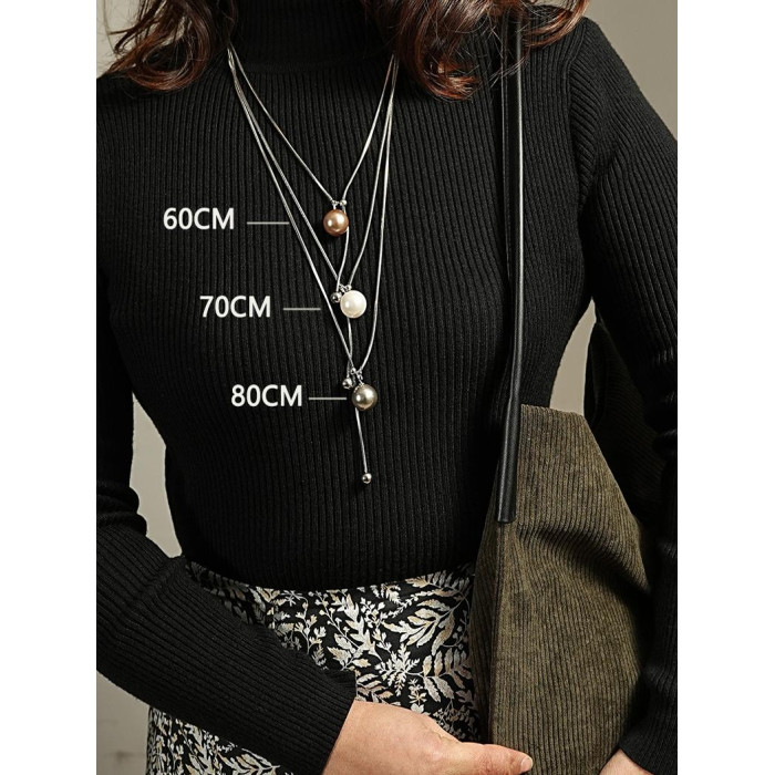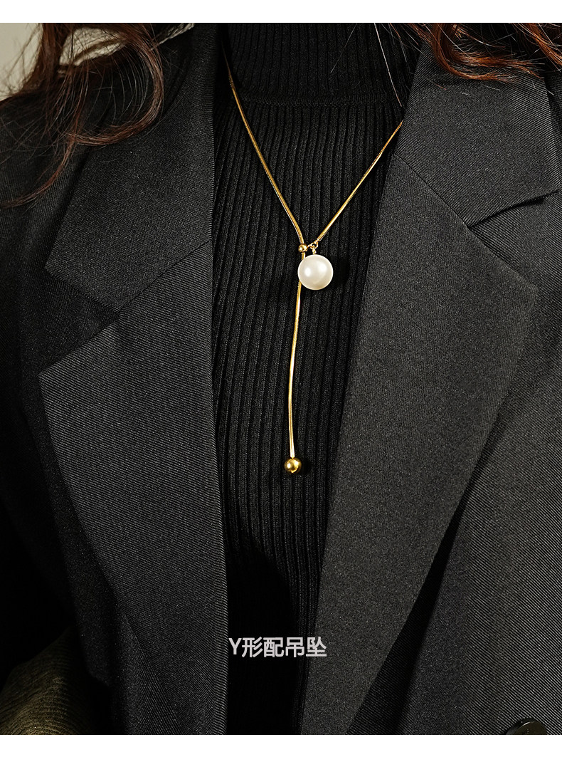 爆款長項鍊珍珠毛衣鏈式針式萬能鏈春夏可調節抽拉式長款不褪色
