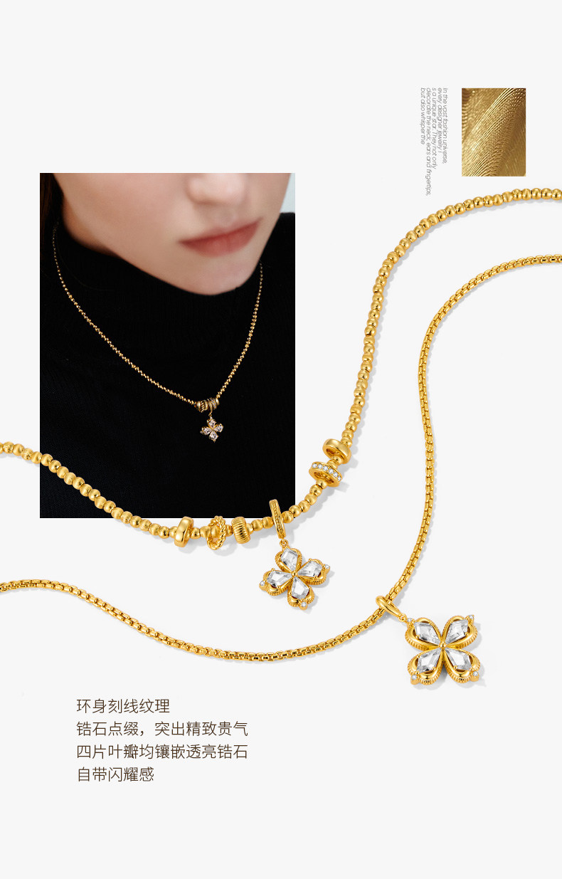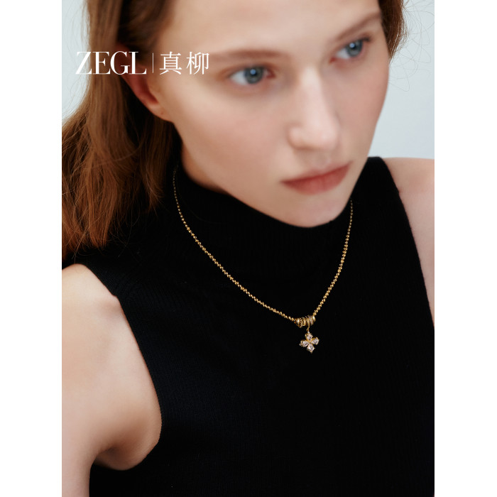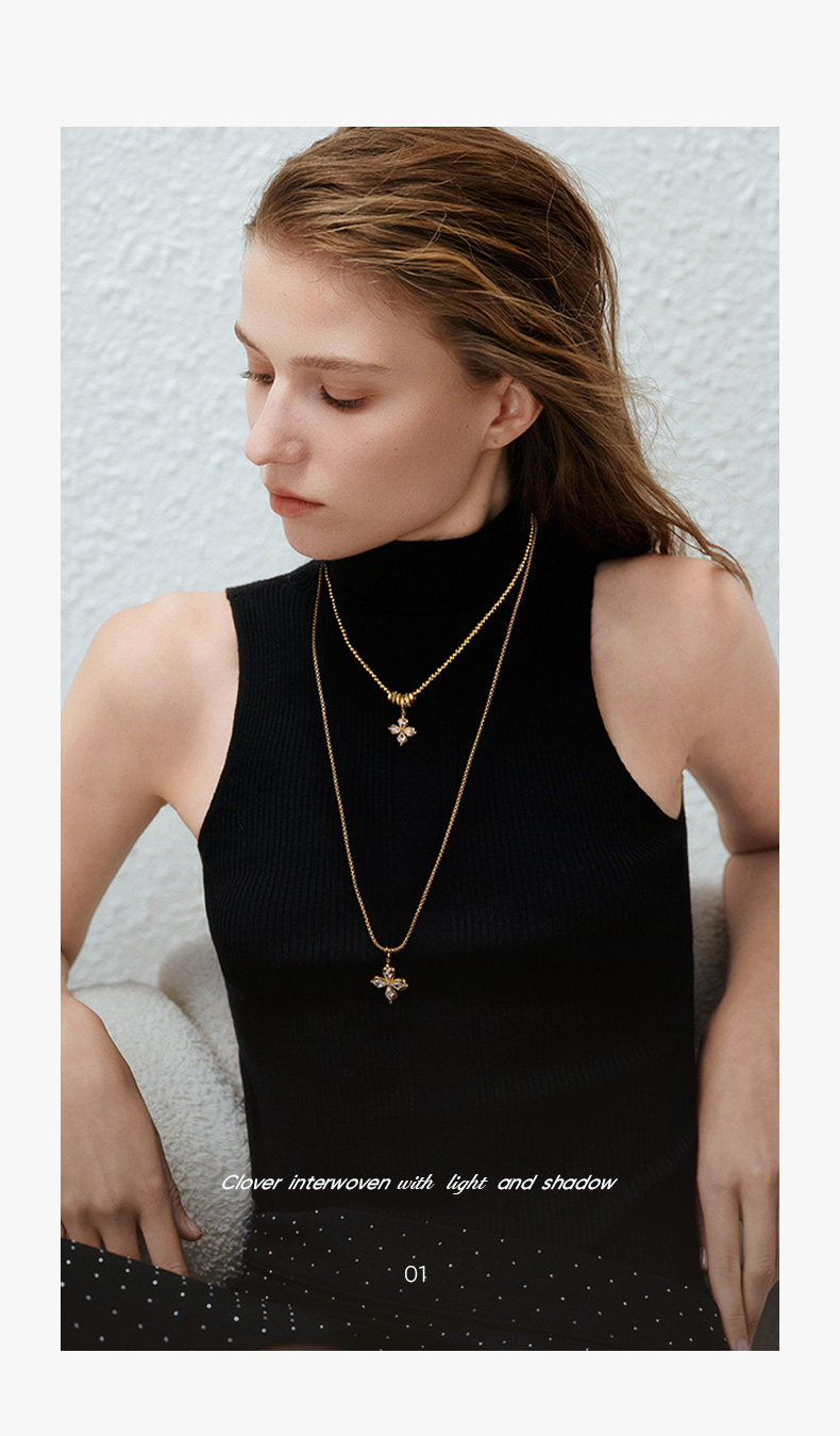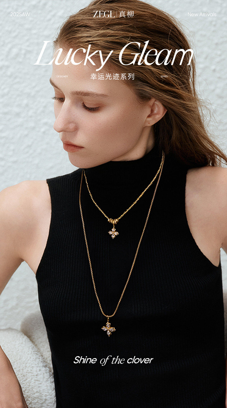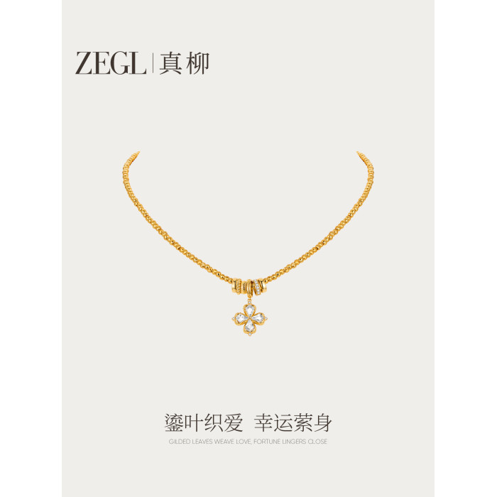 ZEGL幸運光跡系列金色幸運四葉草項鍊女輕奢高級感曡戴毛衣鏈秋冬