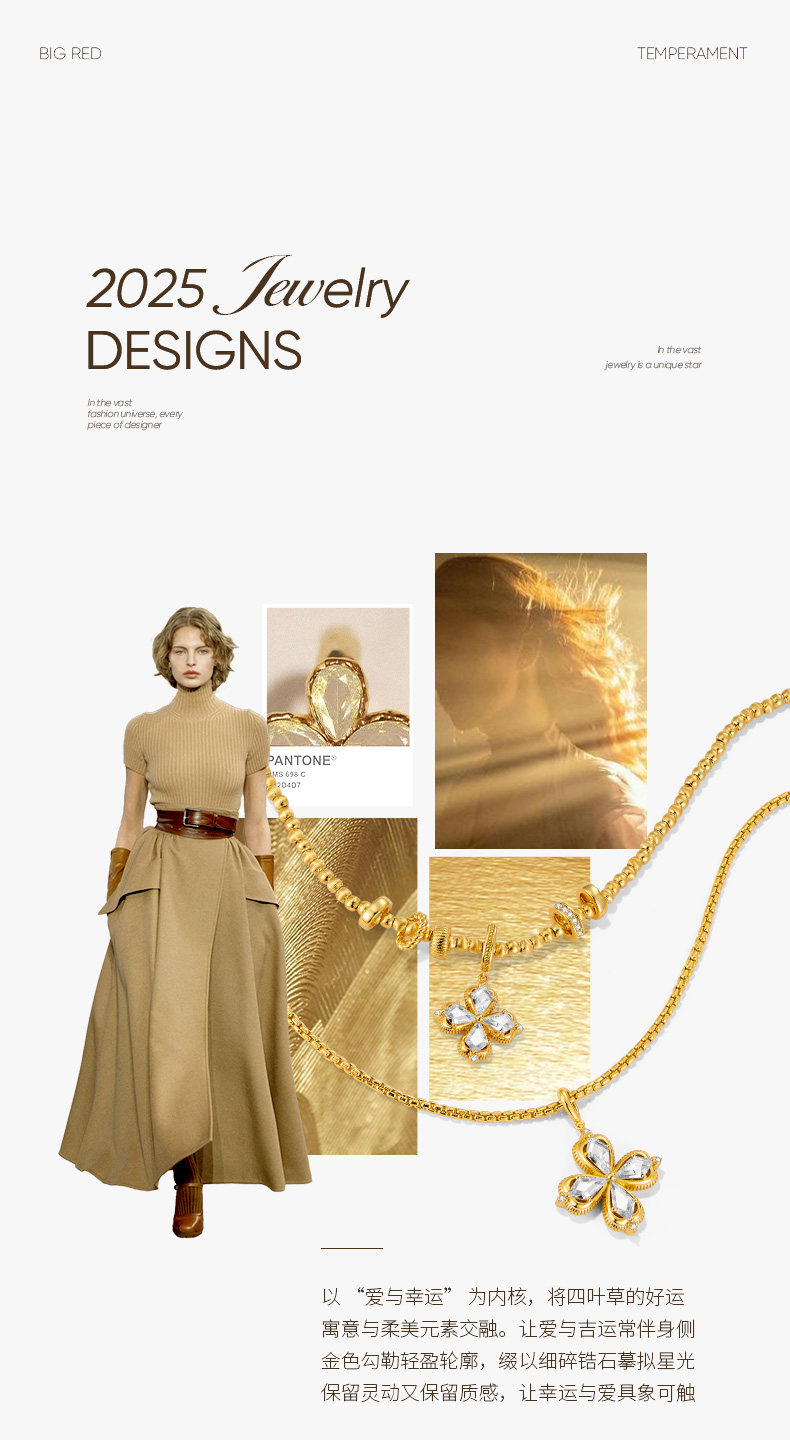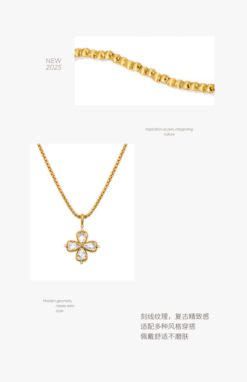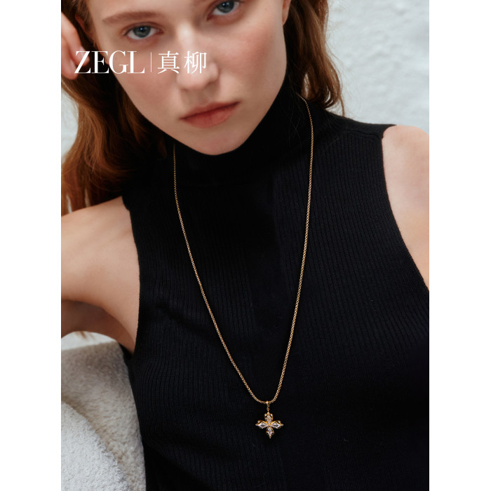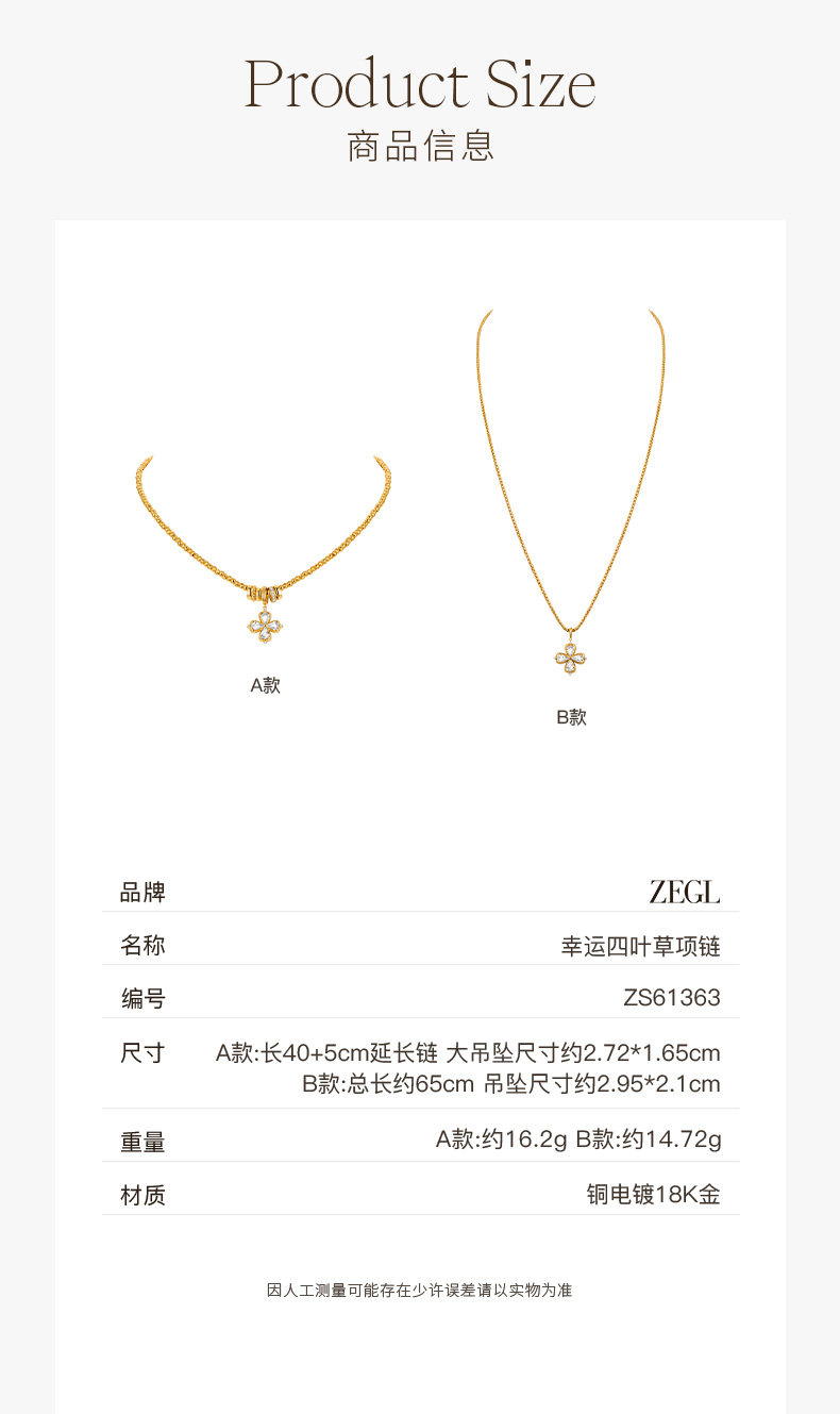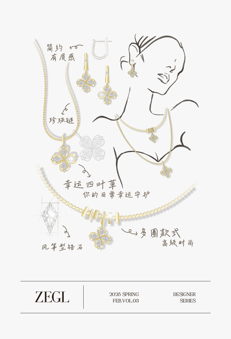 ZEGL幸運光跡系列金色幸運四葉草項鍊女輕奢高級感曡戴毛衣鏈秋冬