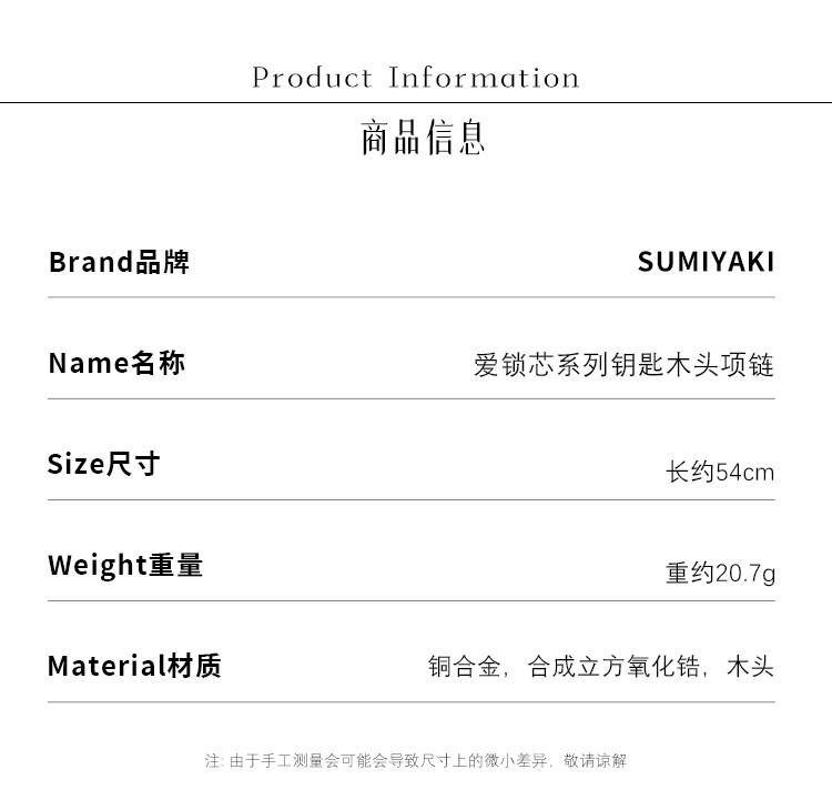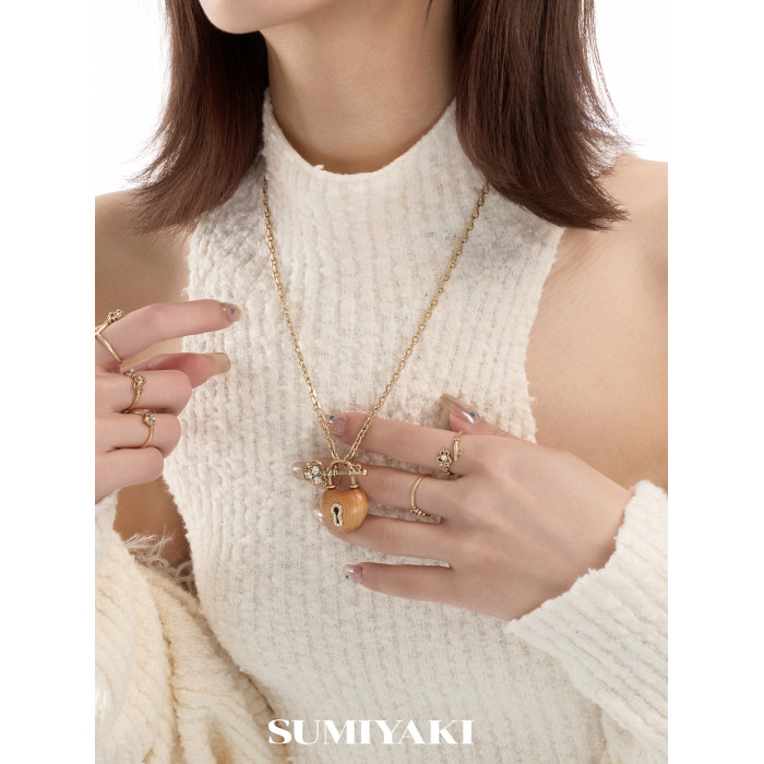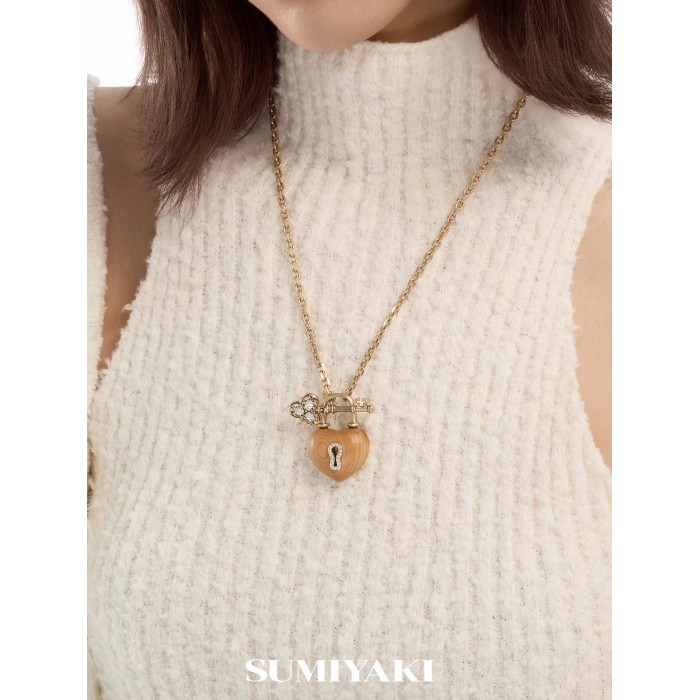 SUMIYAKI 愛鎖芯系列 崖柏天然木頭項鍊 OT釦鑰匙愛心鎖骨鍊女