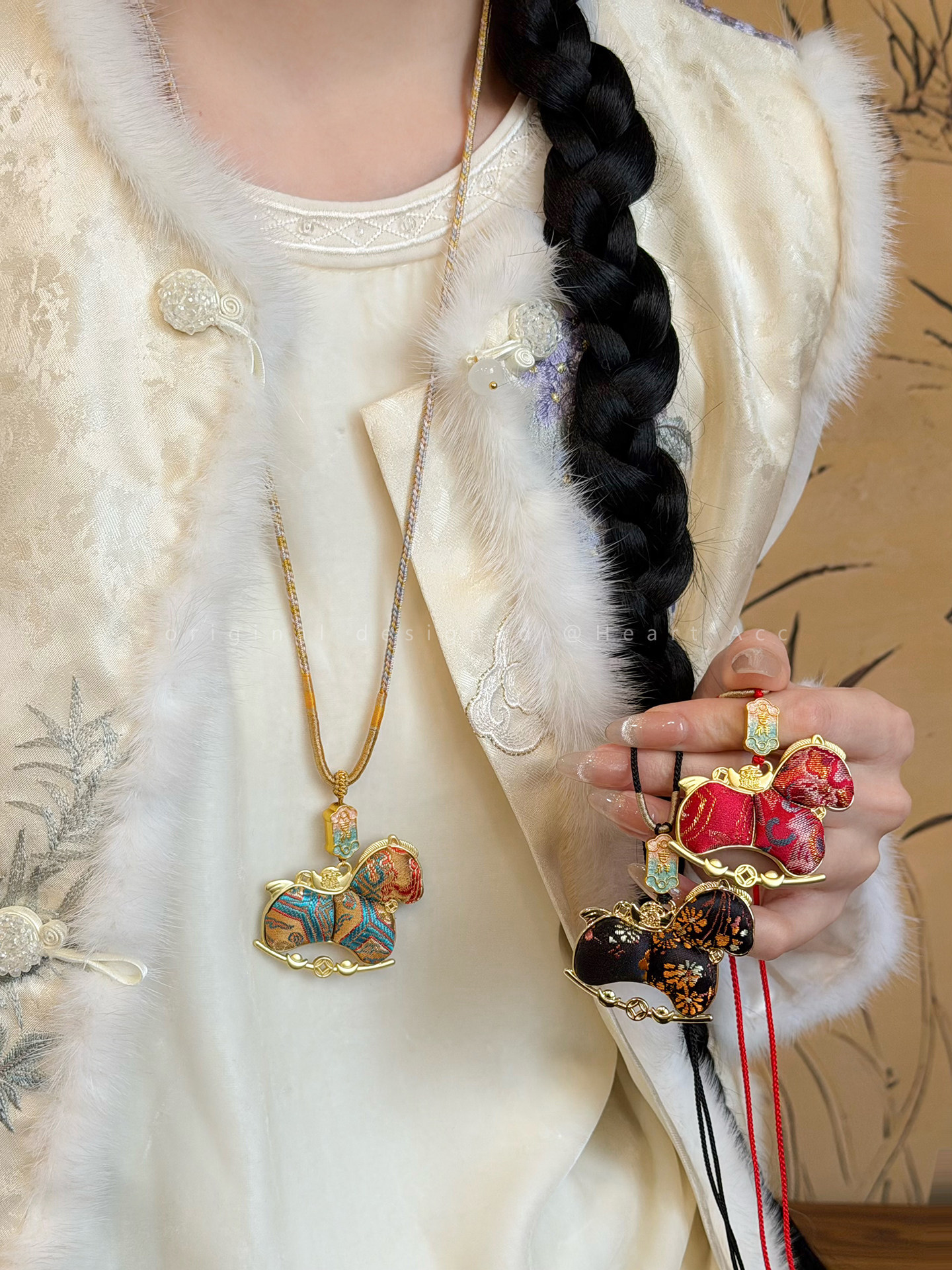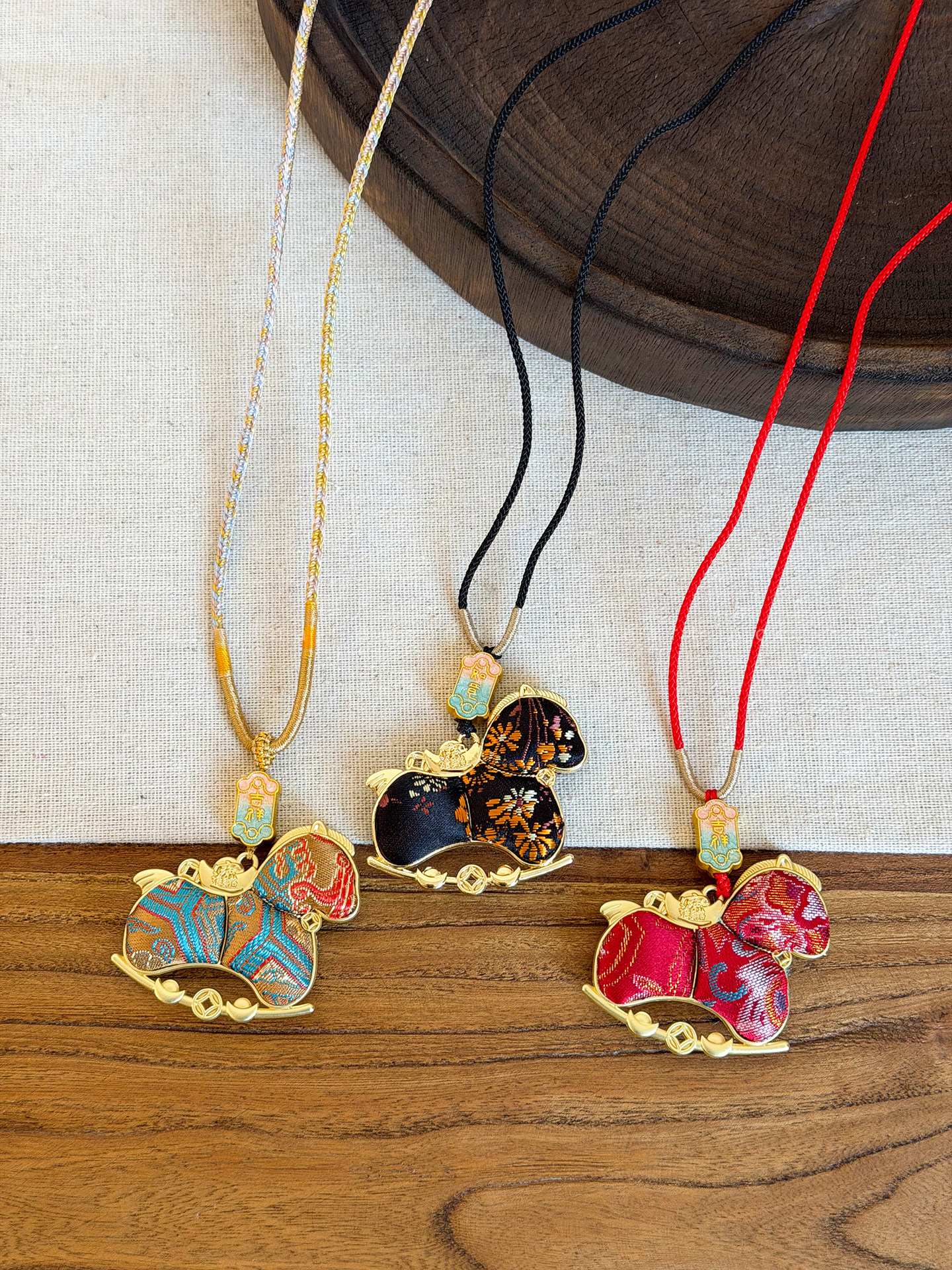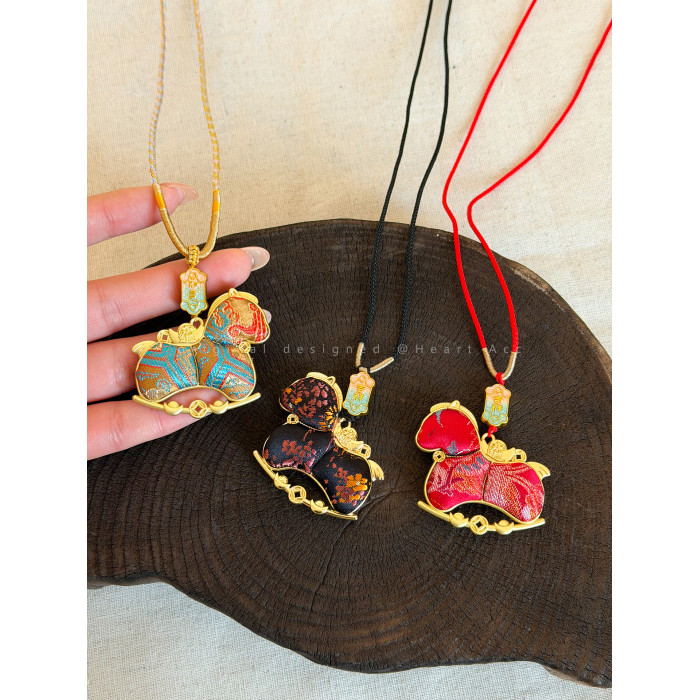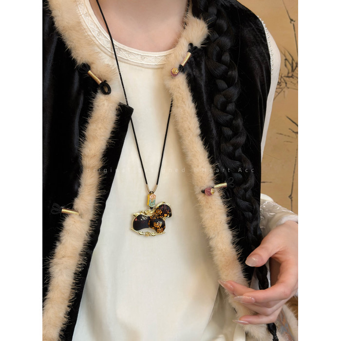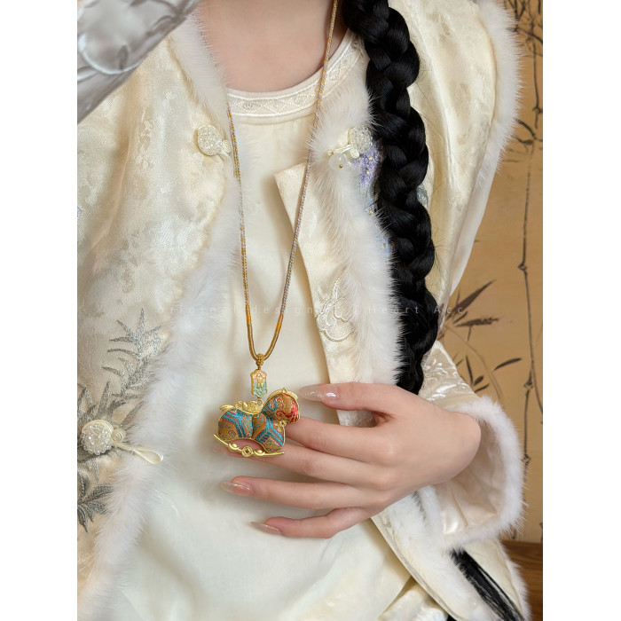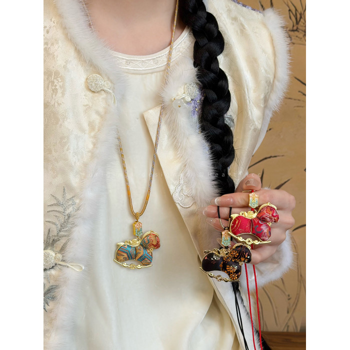 雙面宋錦小馬吊墜項鍊女新中式國風長款毛衣鏈輕奢高級感掛繩配飾