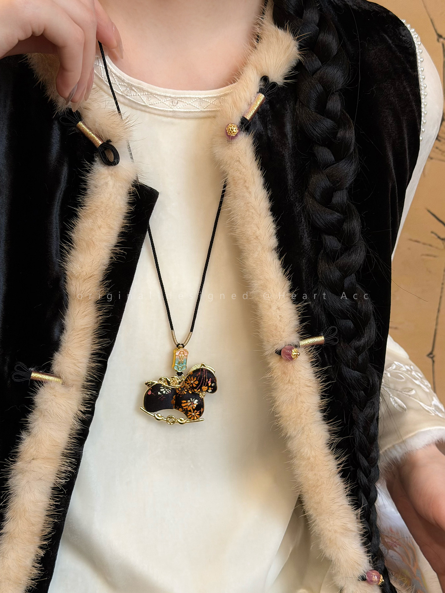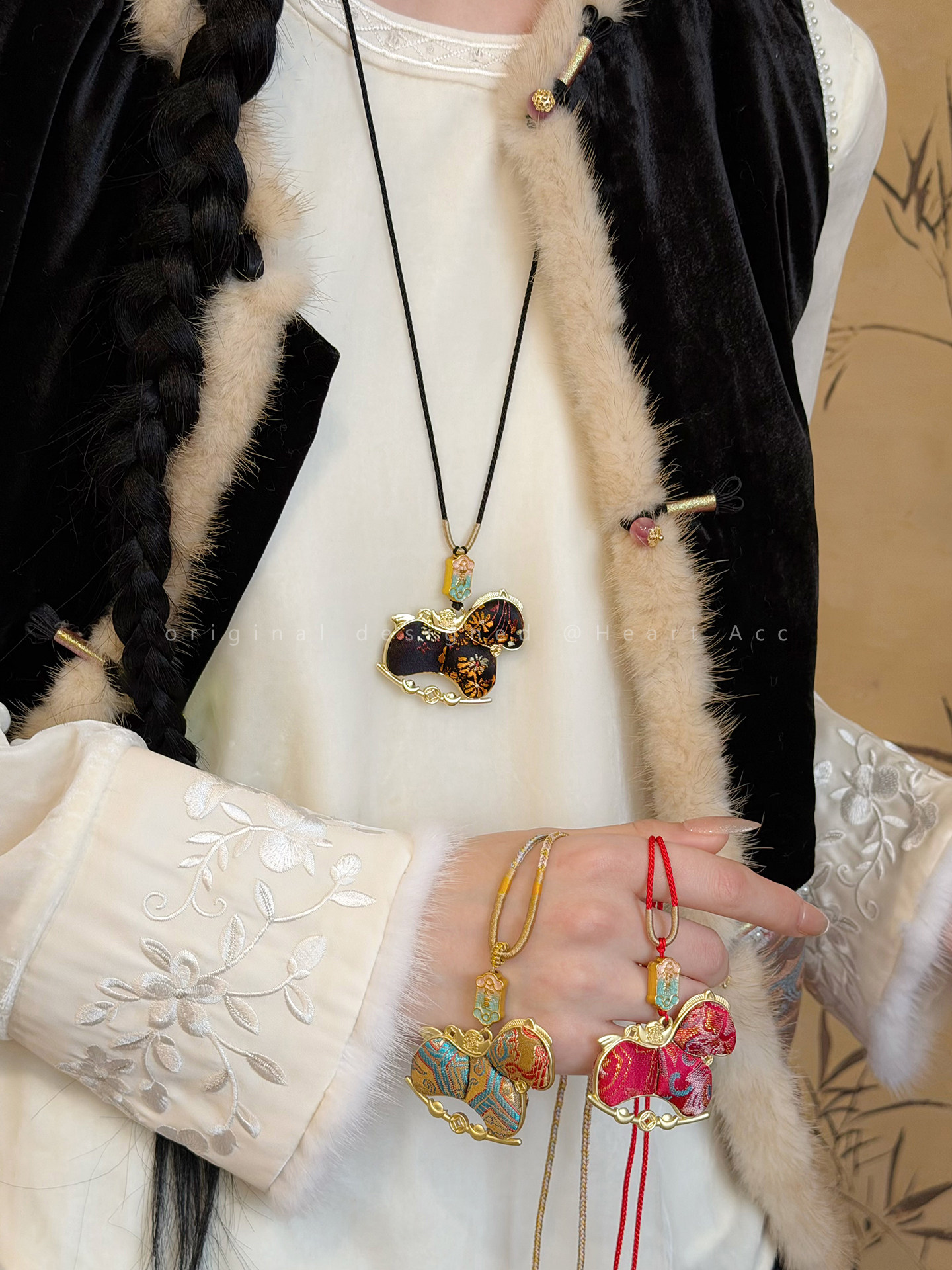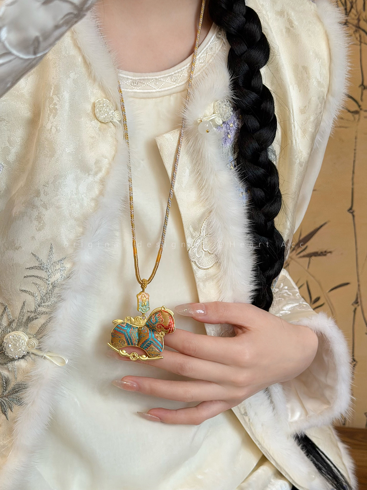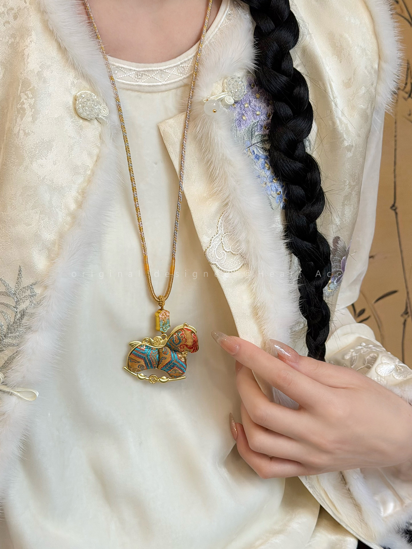 雙面宋錦小馬吊墜項鍊女新中式國風長款毛衣鏈輕奢高級感掛繩配飾