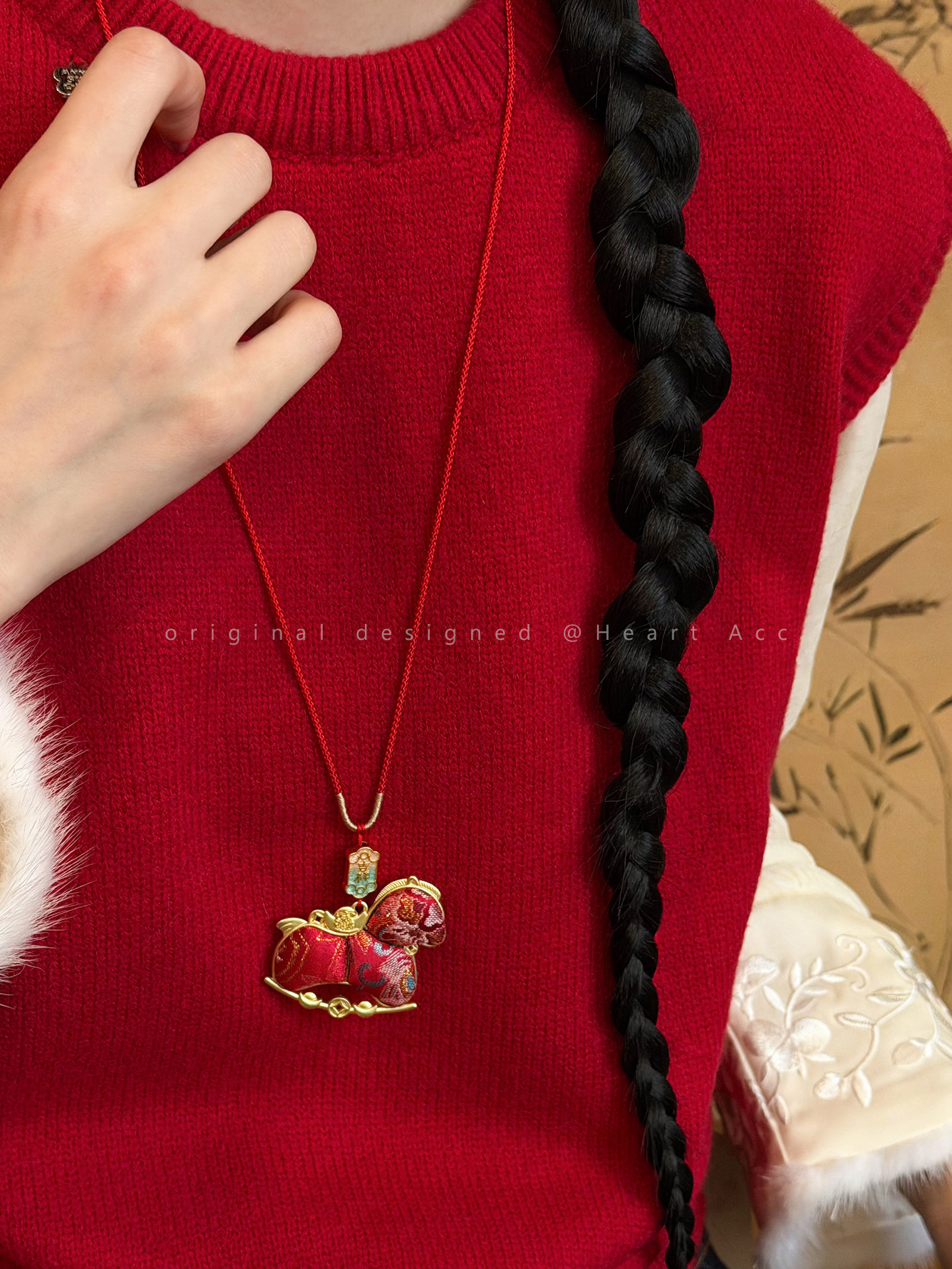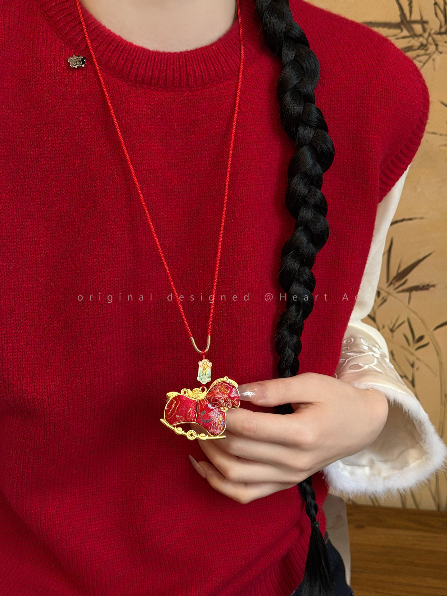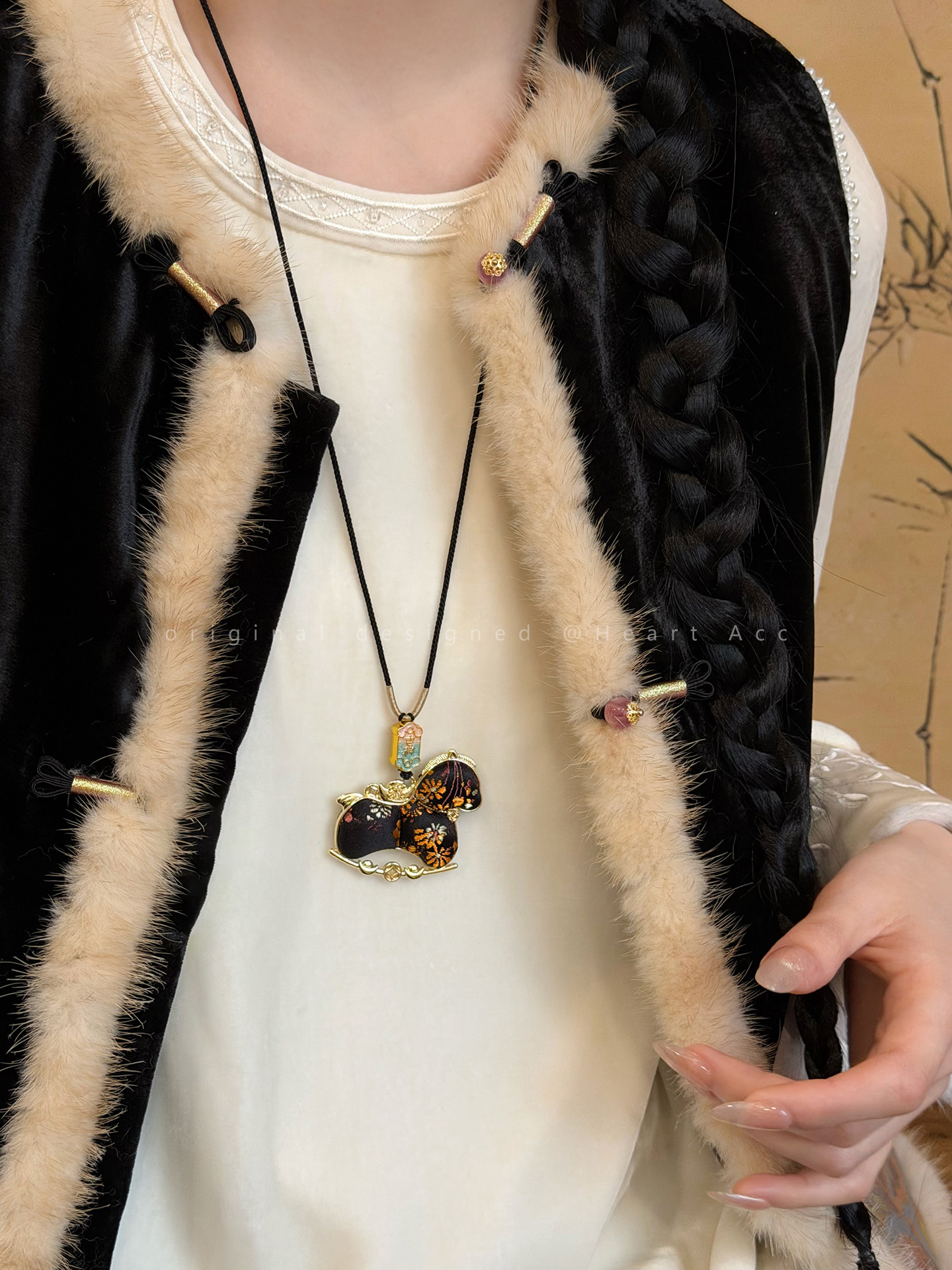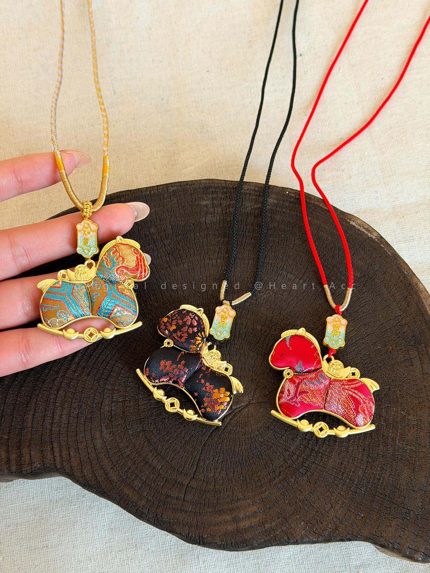 雙面宋錦小馬吊墜項鍊女新中式國風長款毛衣鏈輕奢高級感掛繩配飾