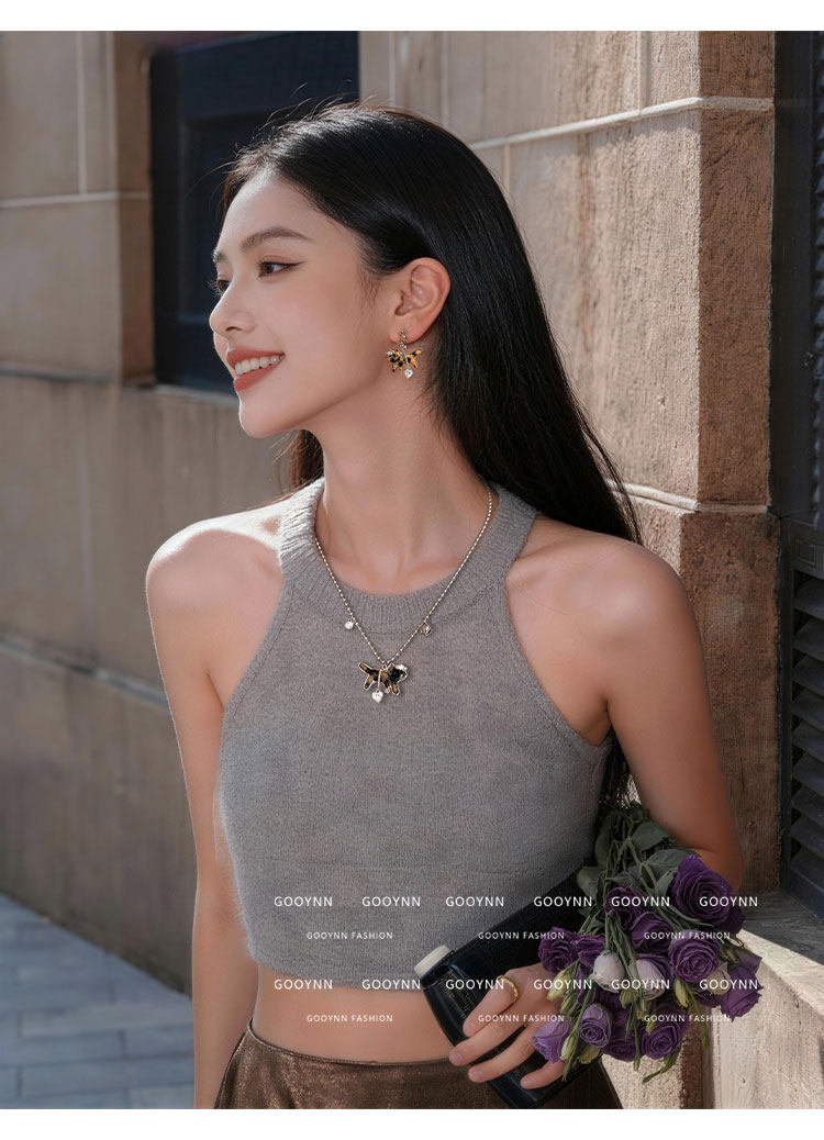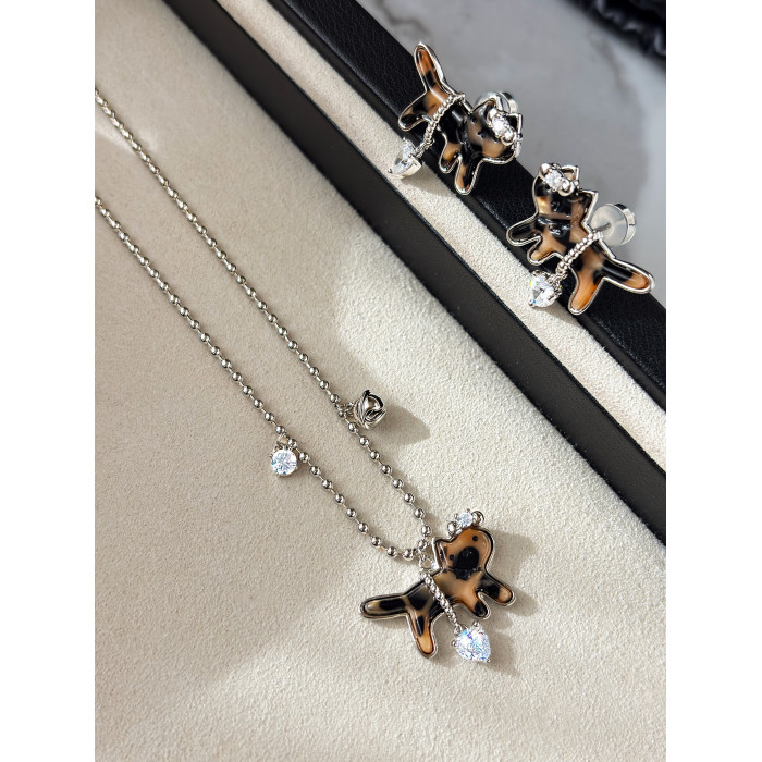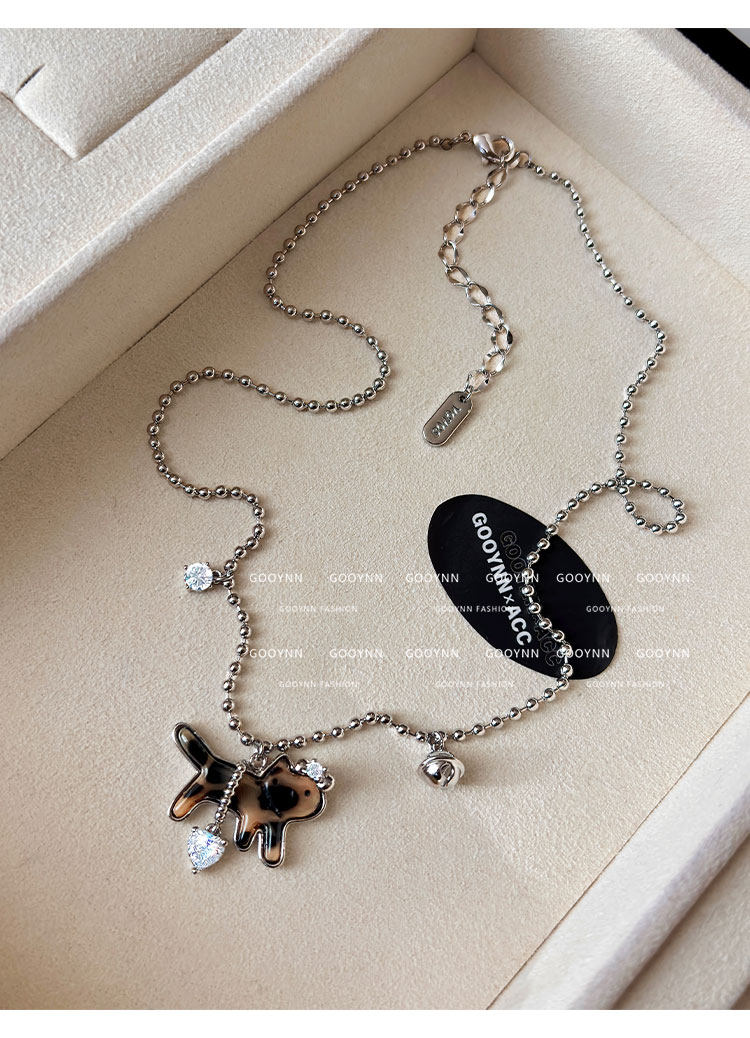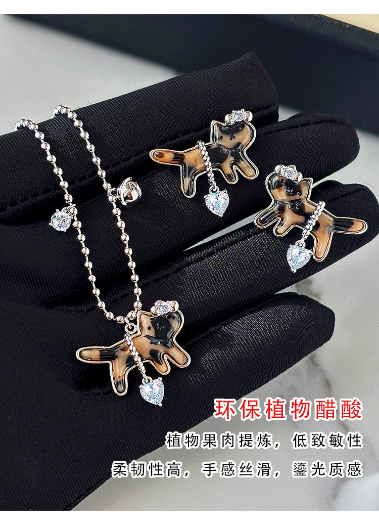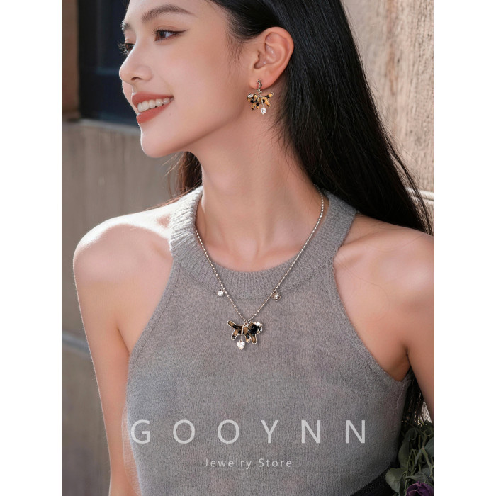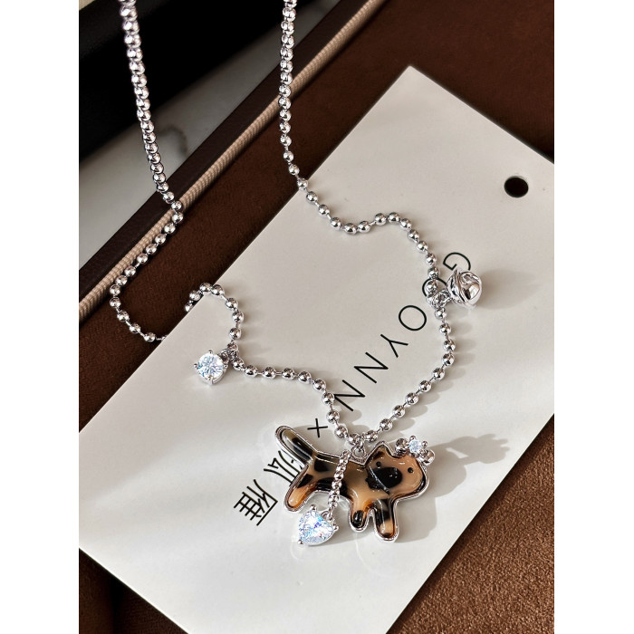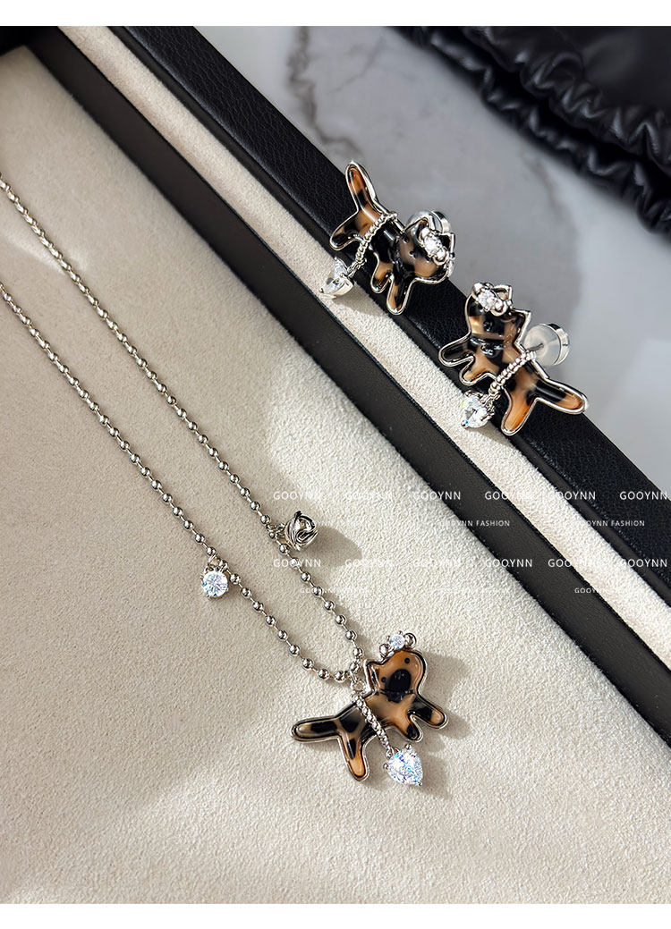 復古豹紋小貓項鍊女款鑽石愛心吊墜配飾高級感輕奢小衆鎖骨毛衣鏈