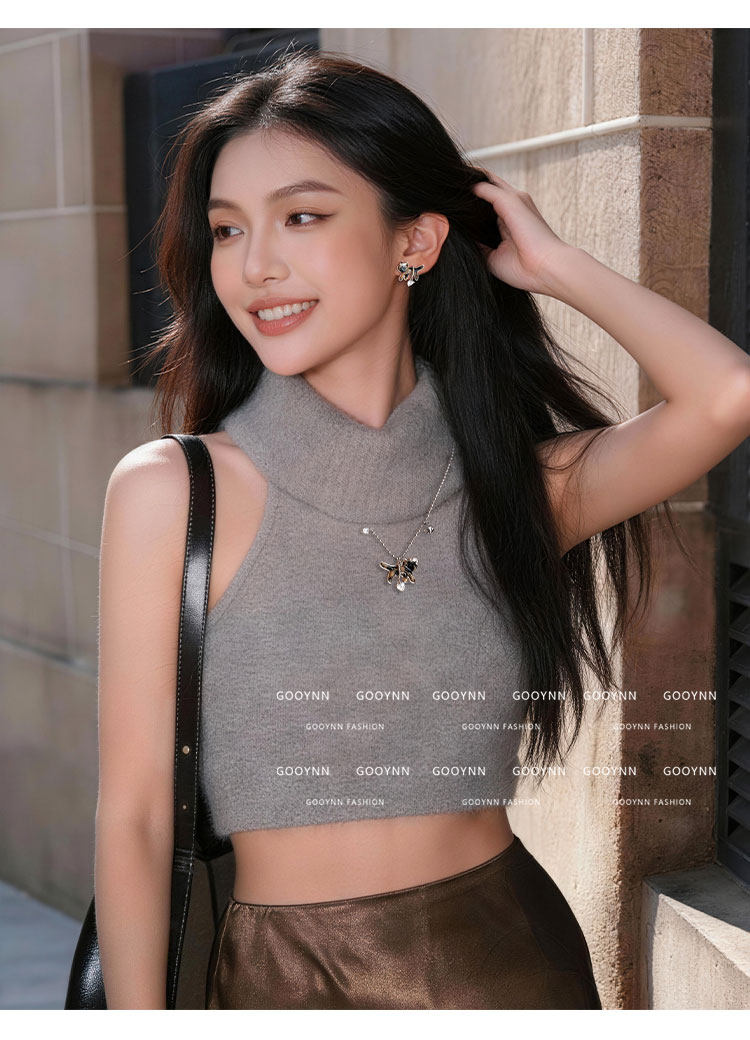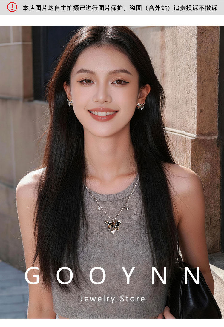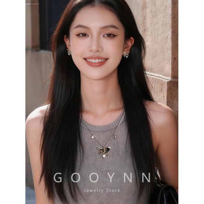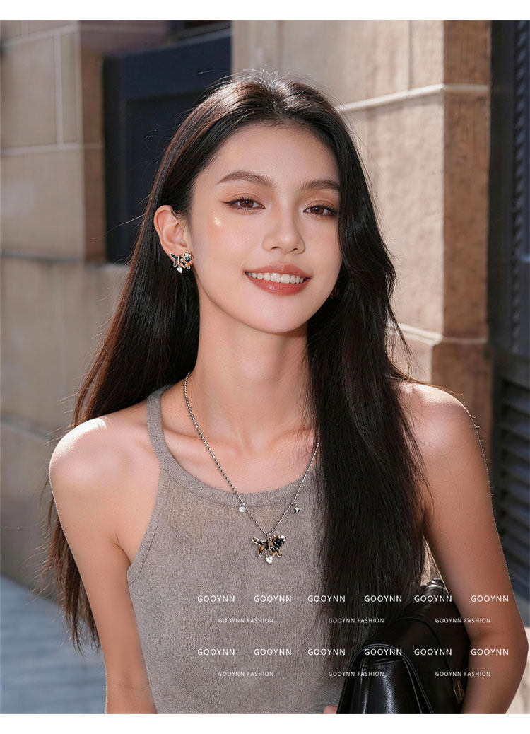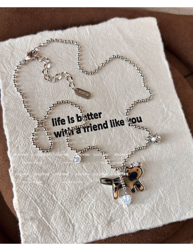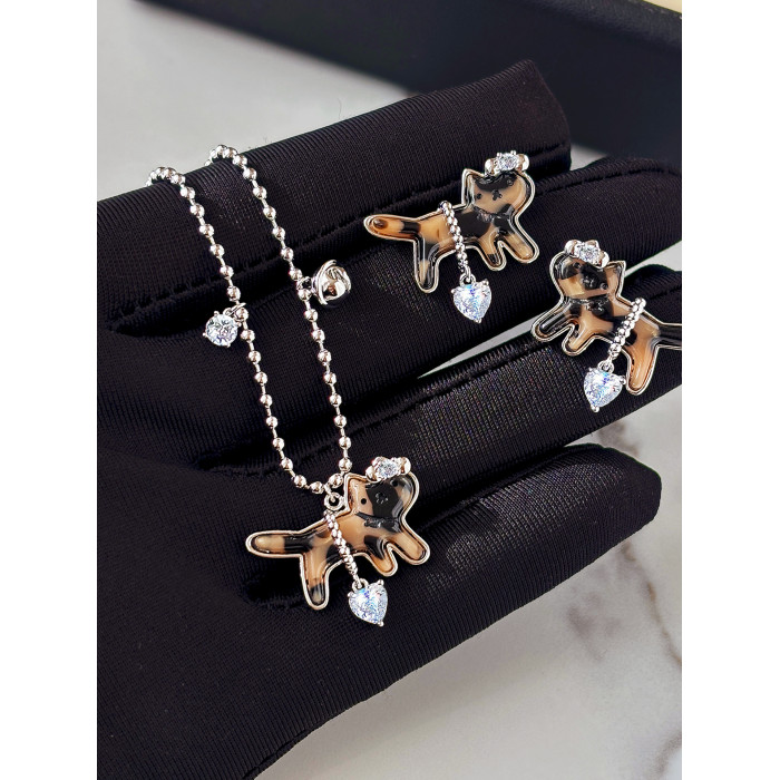 復古豹紋小貓項鍊女款鑽石愛心吊墜配飾高級感輕奢小衆鎖骨毛衣鏈