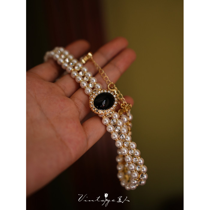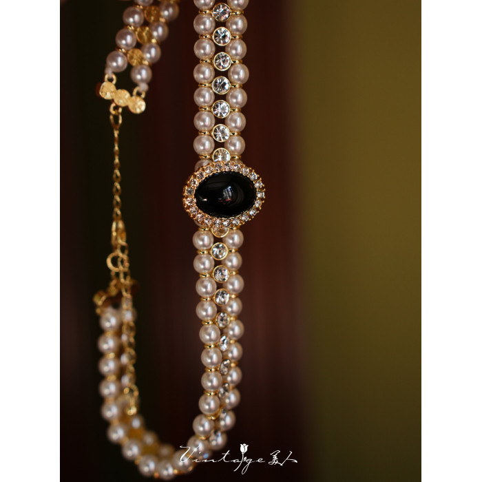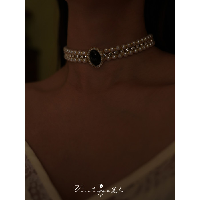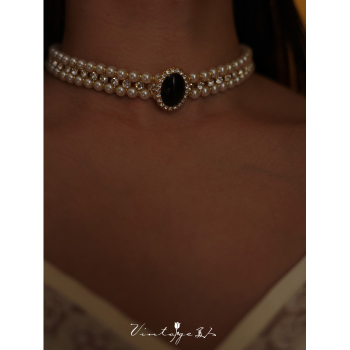 「巴黎黑美人」法式輕奢復古宮廷高級感多層鑲鑽珍珠項鍊鎖骨鍊女