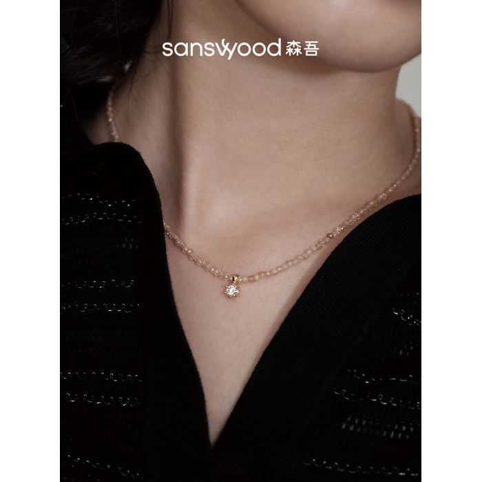sanswood森吾《歌劇魅影》輕奢精緻香檳水晶鋯石莫桑石串珠項鍊女
