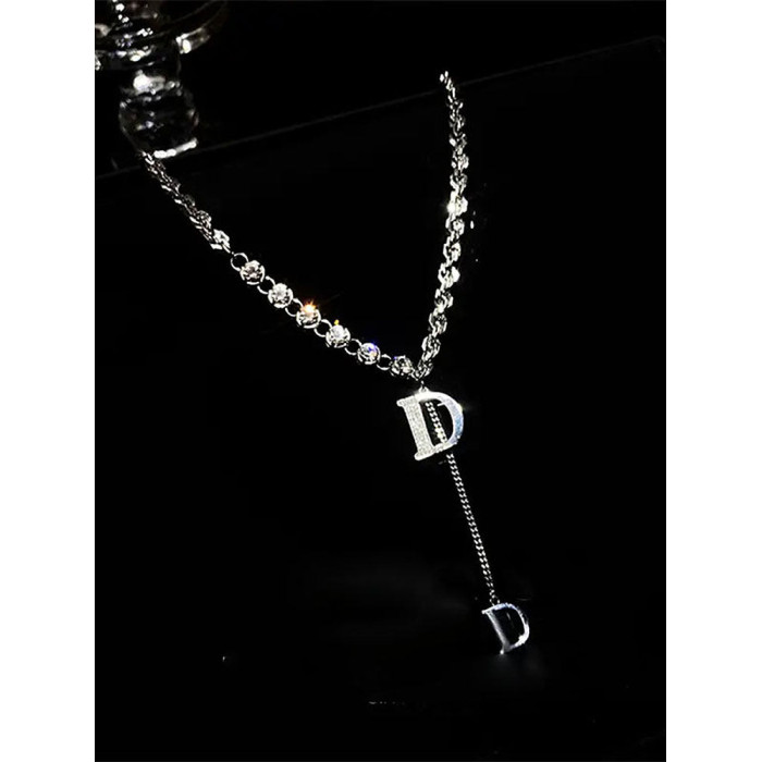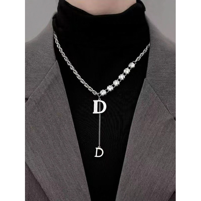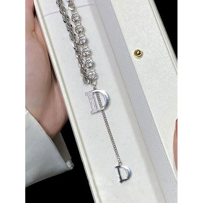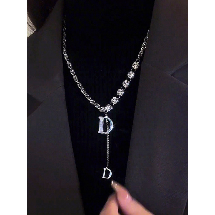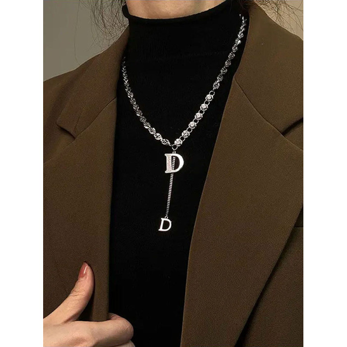2025年新款高級感D字母重工設計粗鏈毛衣鏈個性時尚輕奢百搭項鍊