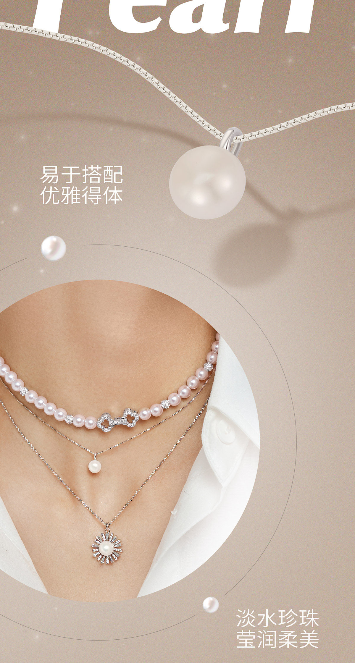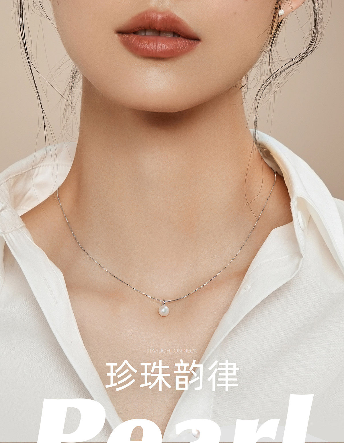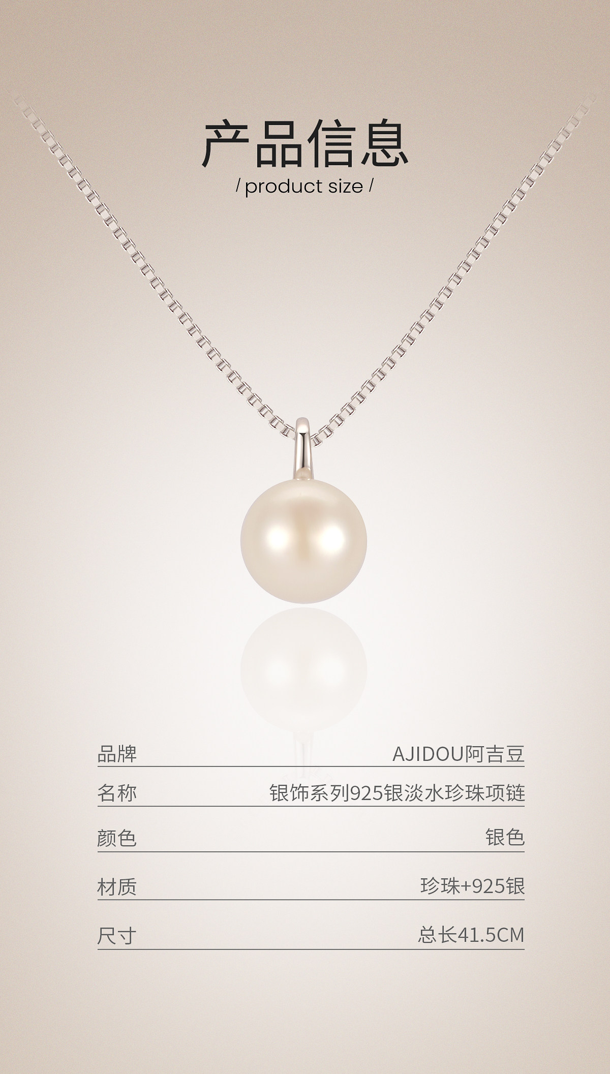 AJIDOU阿吉豆項鍊女款S925銀溫婉優雅淡水珍珠專櫃同款鎖骨鍊頸鏈