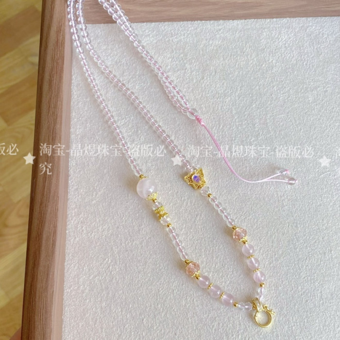 原創水晶珠鍊繩萬能釦款百搭唐卡泰牌宋錦吊墜通用毛衣鏈配繩掛鏈