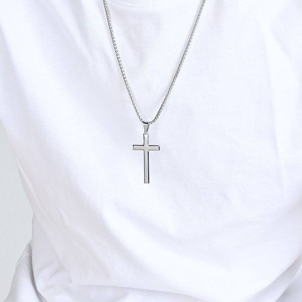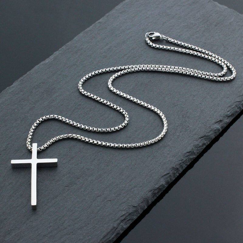 INS網紅風簡約鈦鋼十字架項鍊光面小衆個性男女穿搭不鏽鋼毛衣鏈