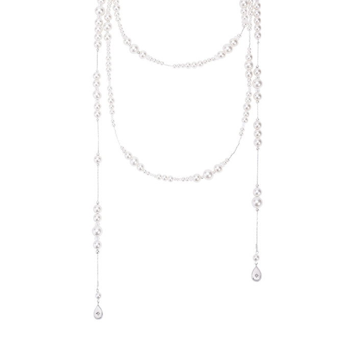 【NEKONEKO】慶憐同款長款珍珠項鍊水晶曡戴復古滿天星鏈原創設計