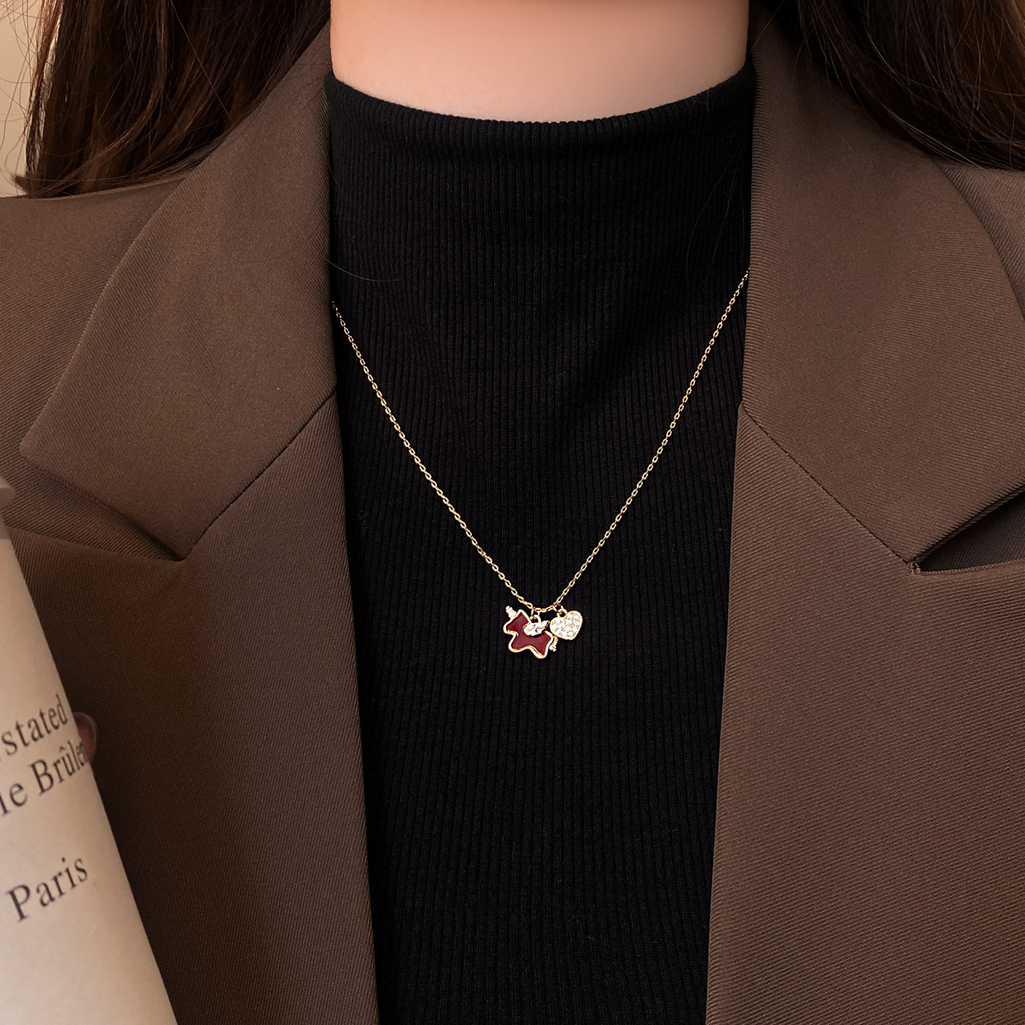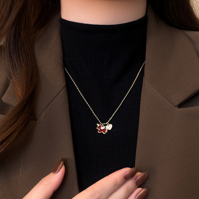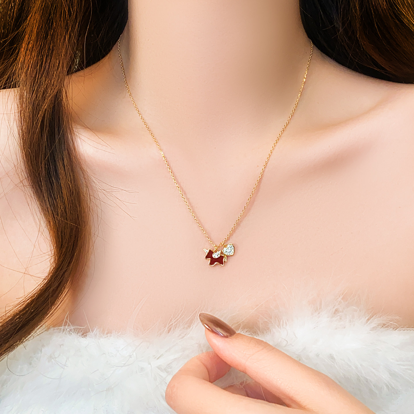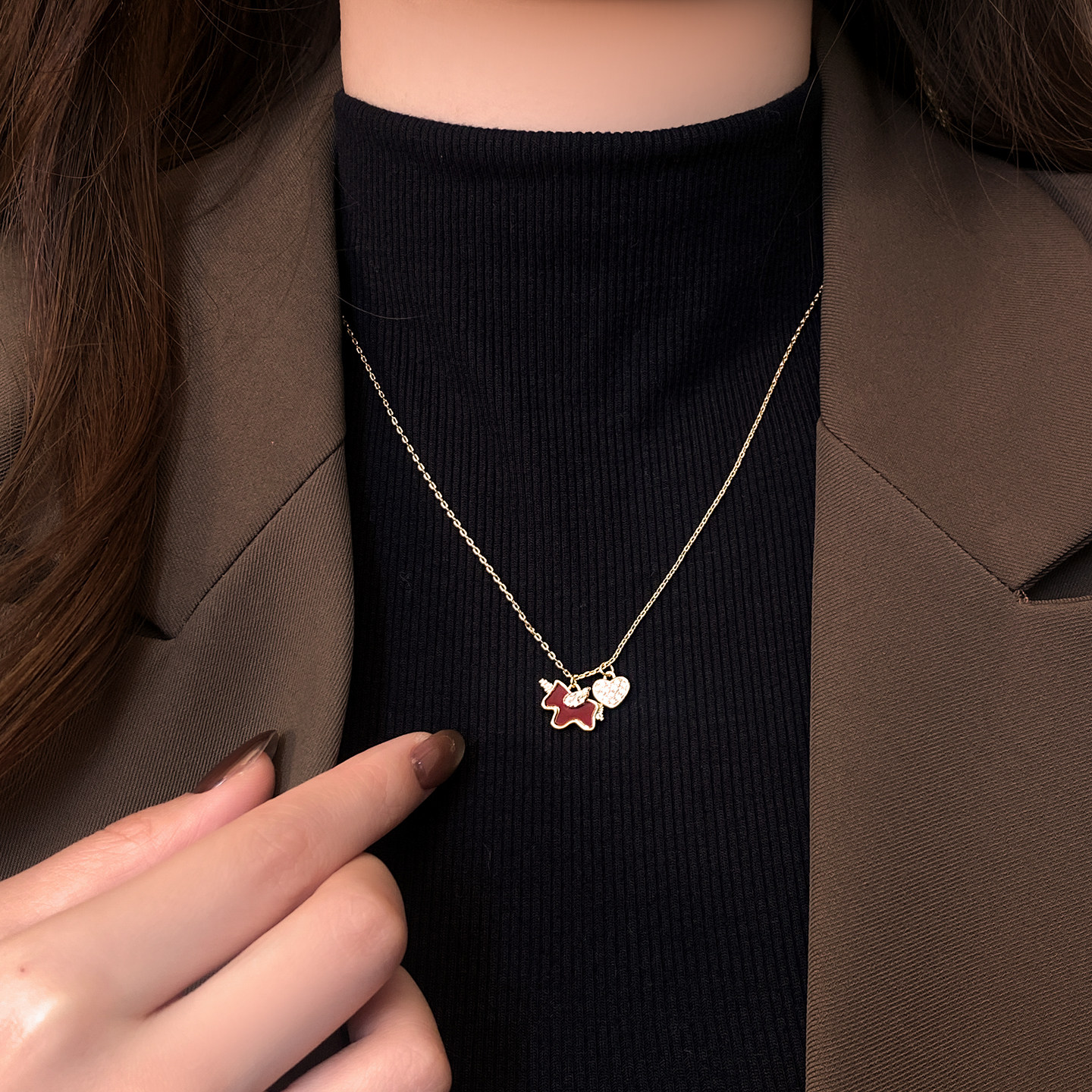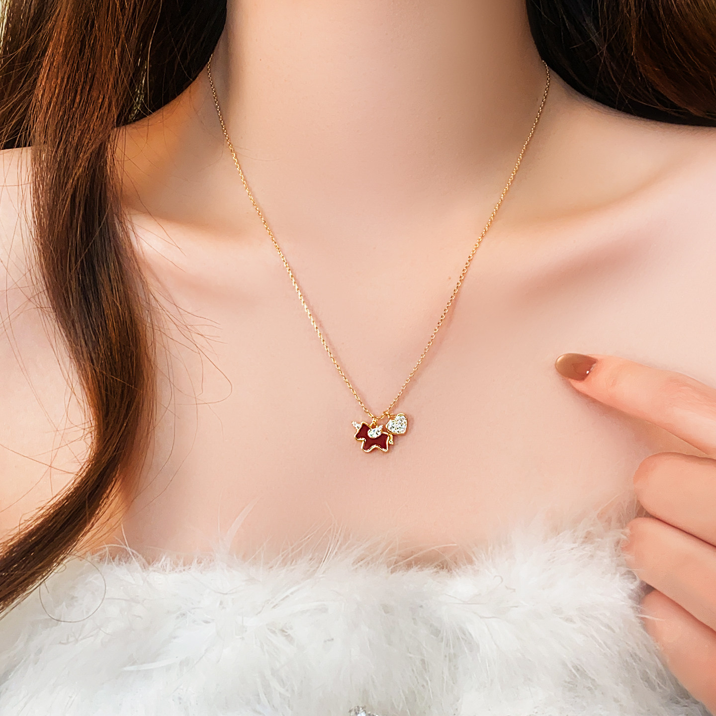 紅色小馬滿鑽愛心吊墜項鍊女高級感輕奢小衆2026本命年毛衣鏈配飾