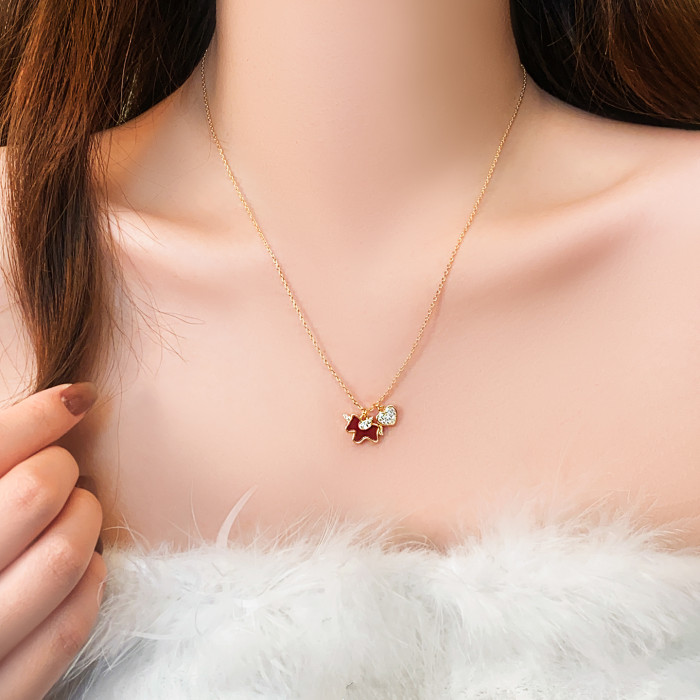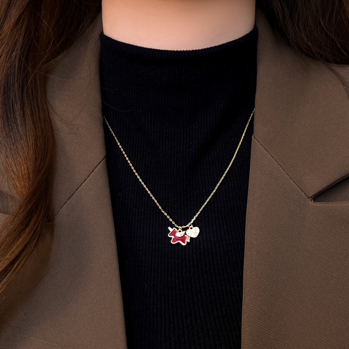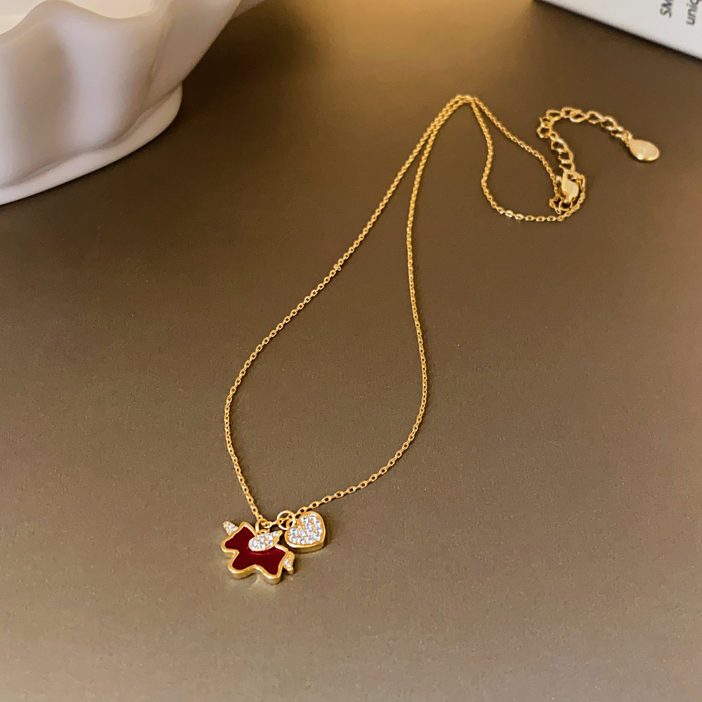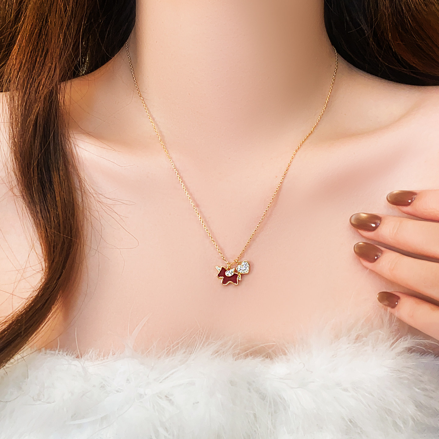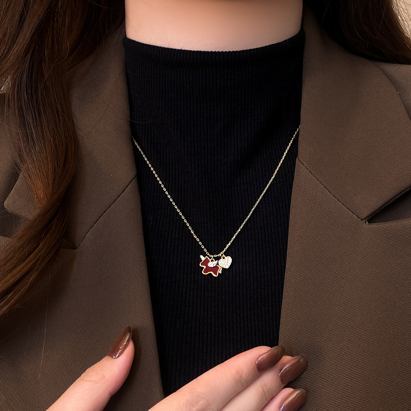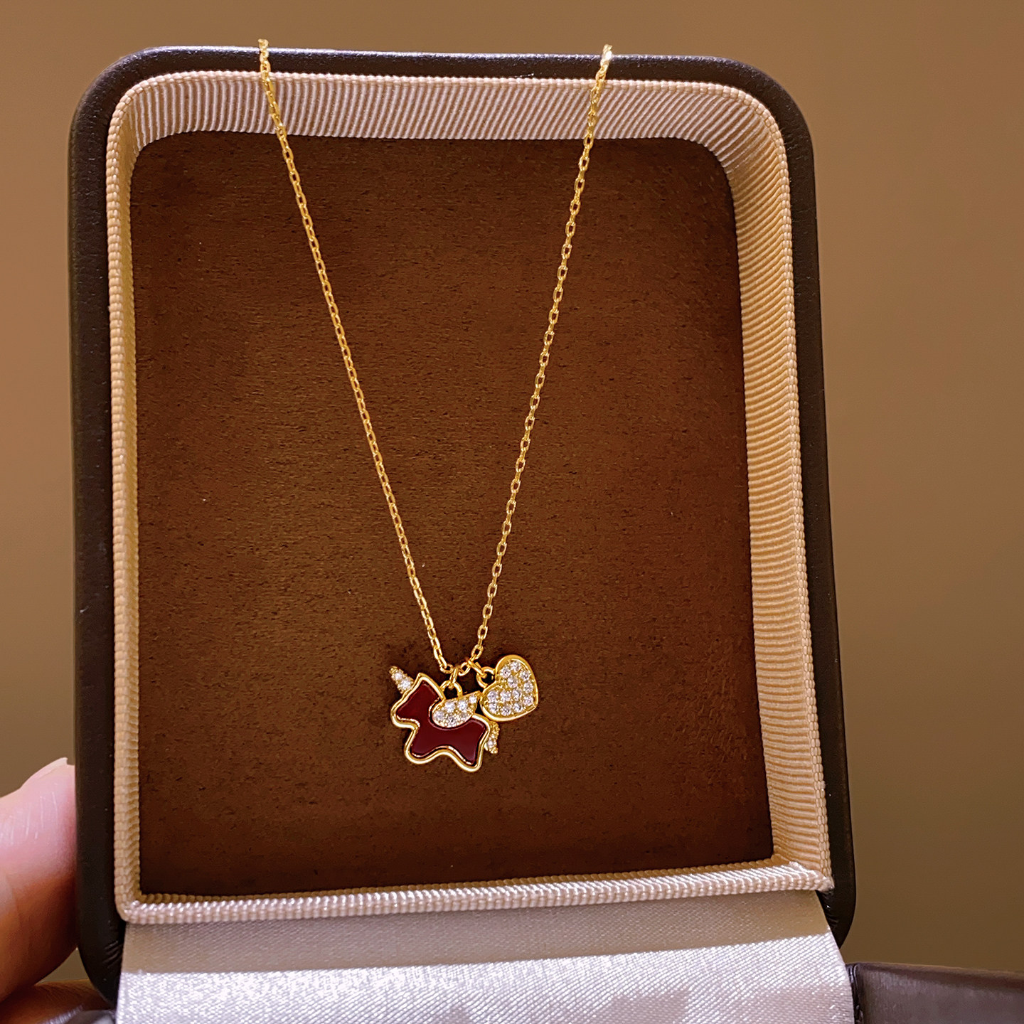 紅色小馬滿鑽愛心吊墜項鍊女高級感輕奢小衆2026本命年毛衣鏈配飾