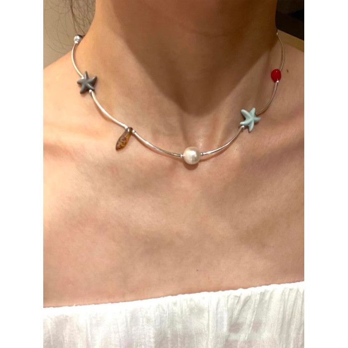 海邊多巴胺彩色海星項鍊女2026新款配飾高級感輕奢小衆鎖骨鍊頸鏈