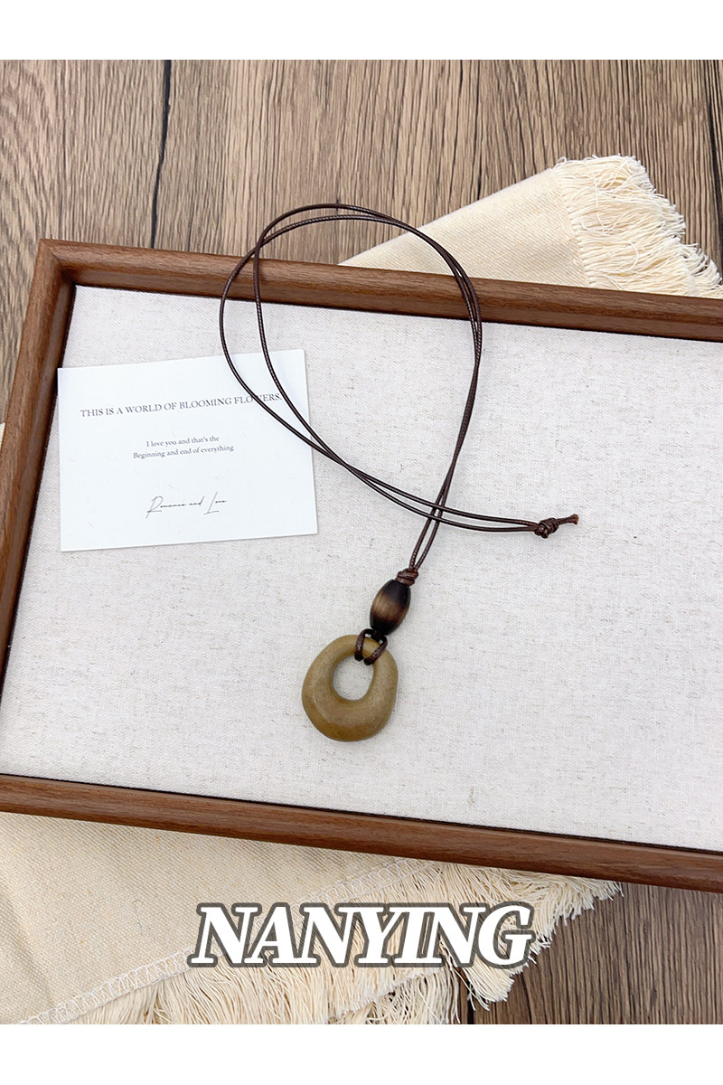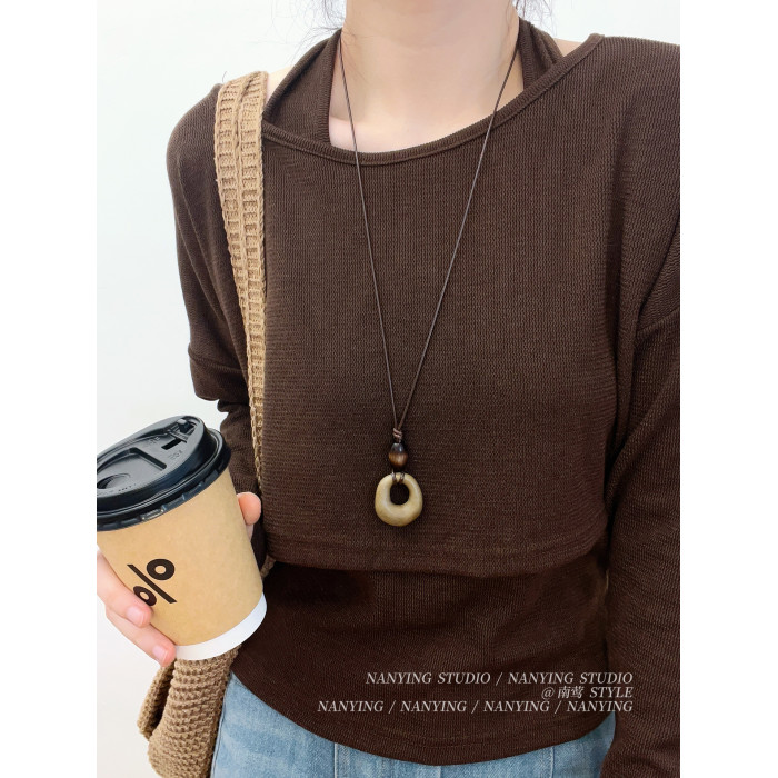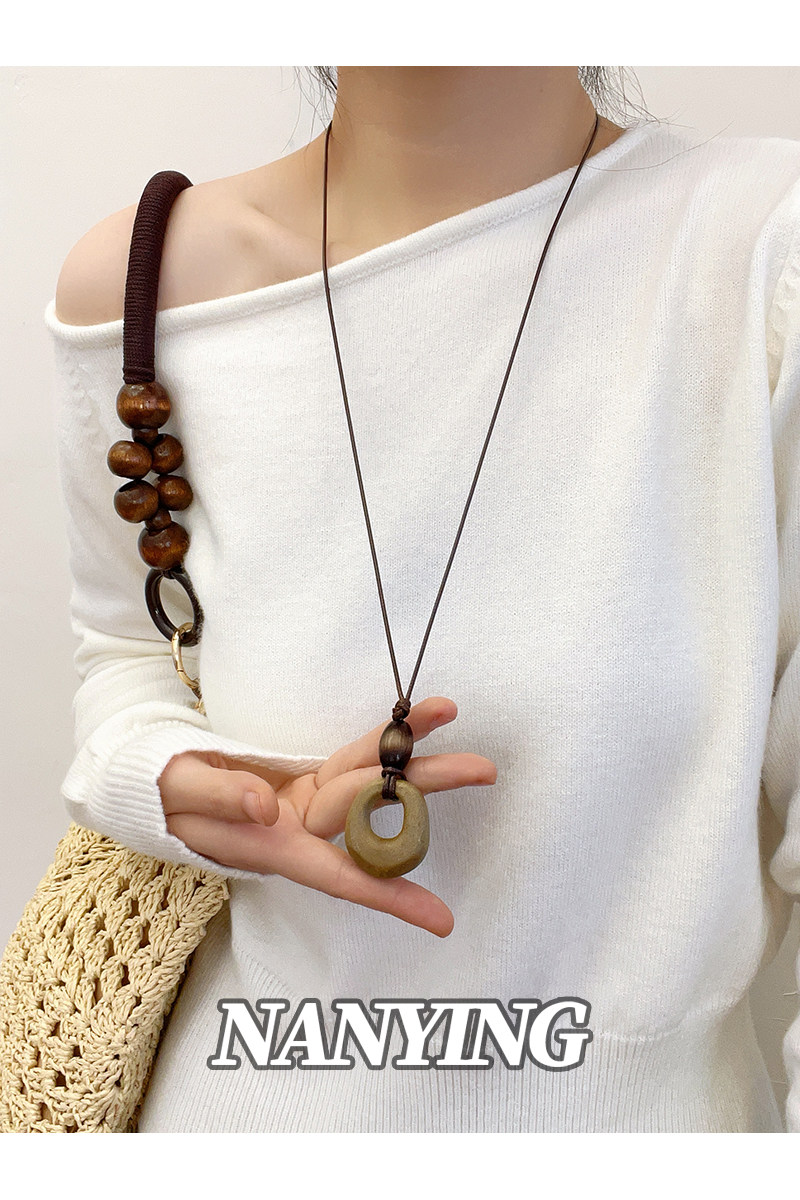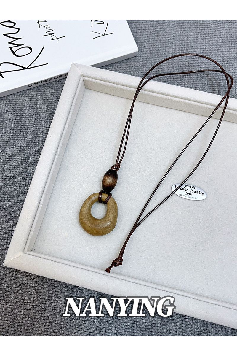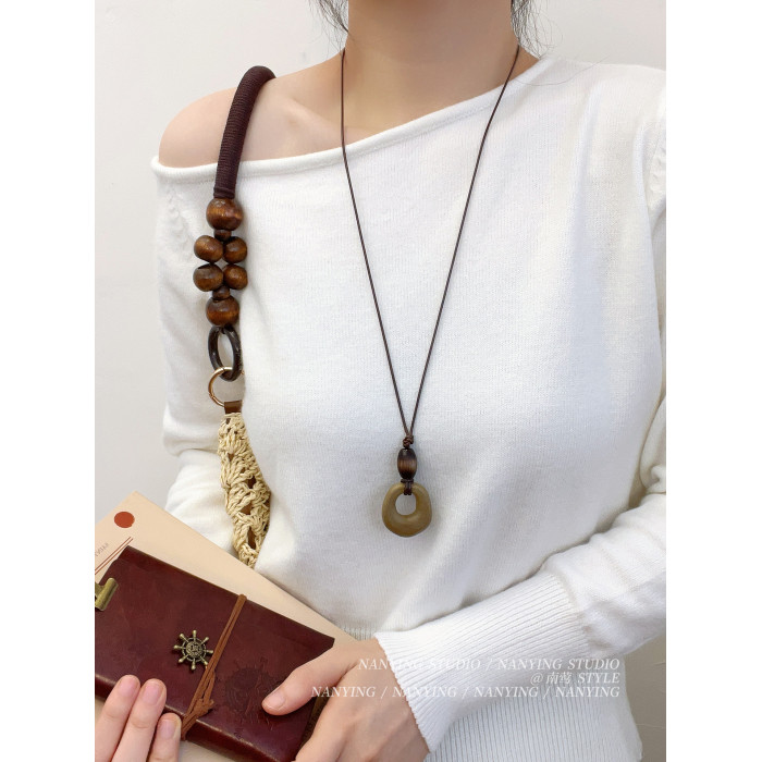 NANYING 禪意新中式復古咖色鏤空圓環項鍊長款民族風吊墜女毛衣鏈