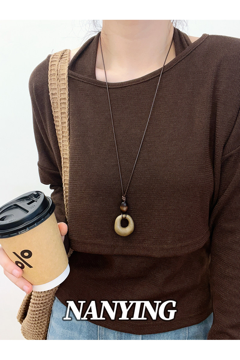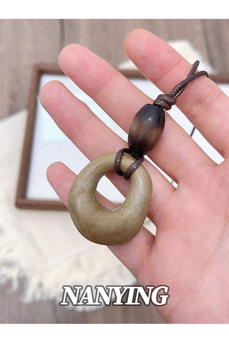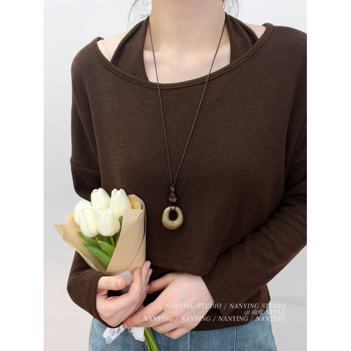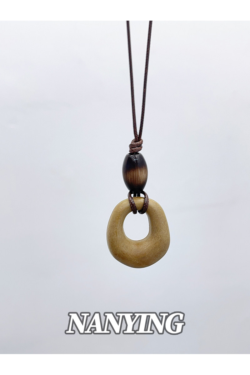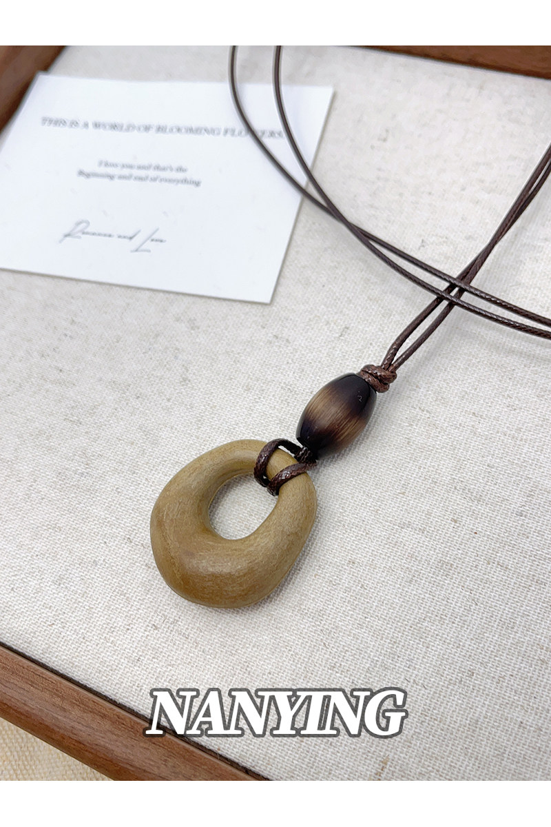 NANYING 禪意新中式復古咖色鏤空圓環項鍊長款民族風吊墜女毛衣鏈