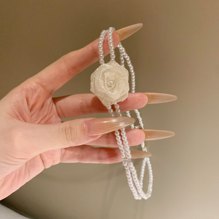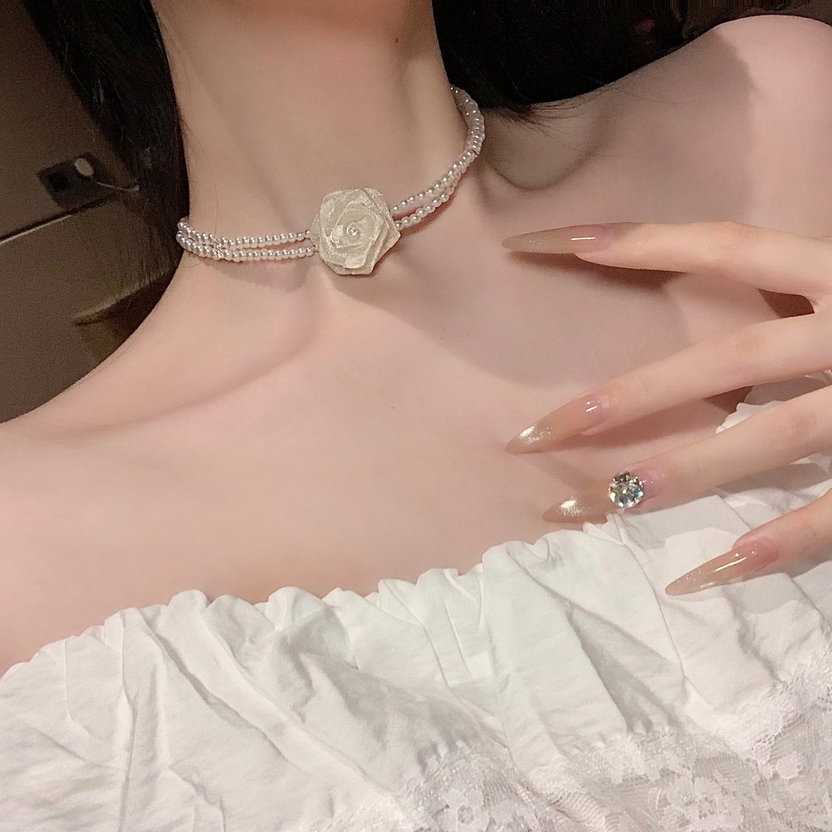 月光白~玫瑰花朵仿珍珠項鍊choker頸帶高級氣質輕奢頸鏈脖子配飾