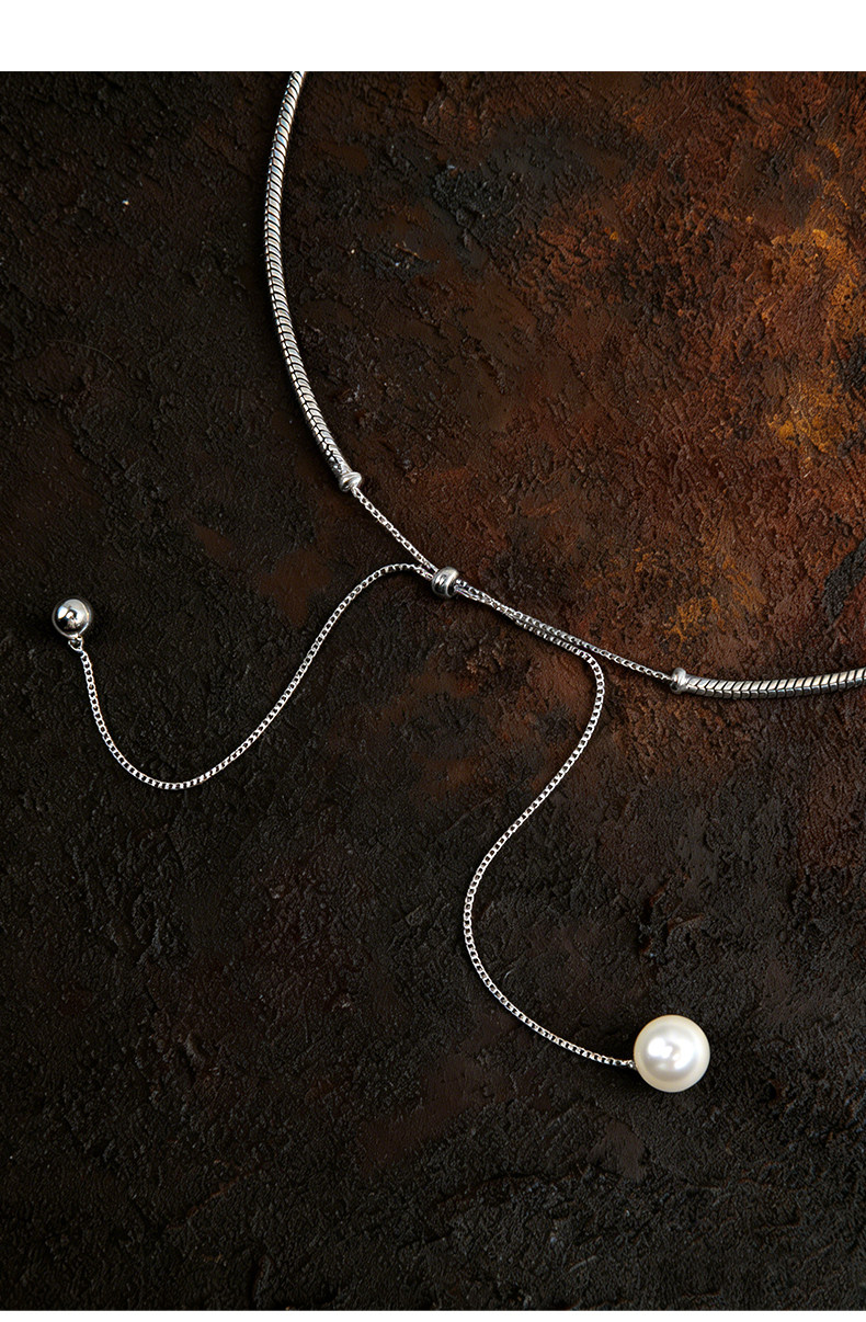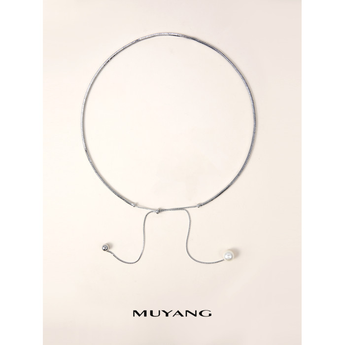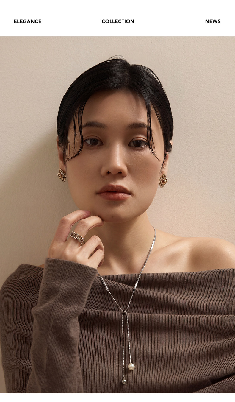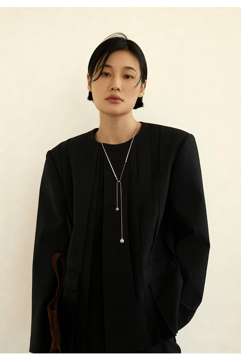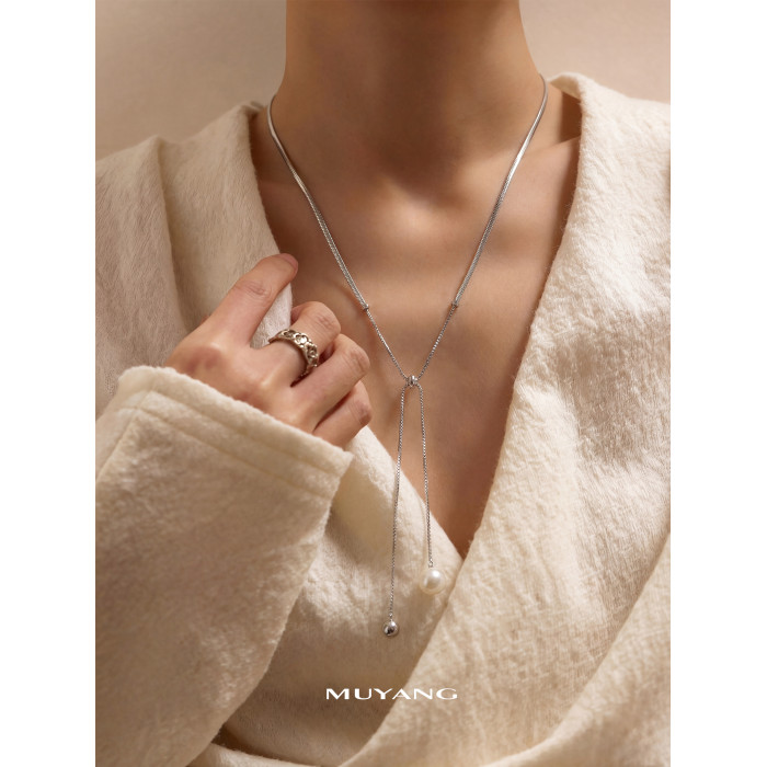 慕陽MUYANG珠銀項鍊女款高級感小衆設計掛脖秋冬毛衣鏈長珍珠配飾