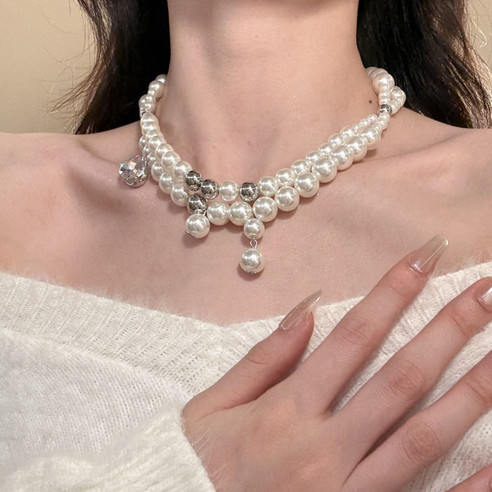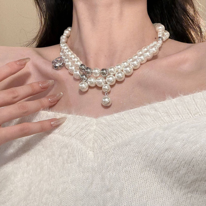 HEY TAO復古閃鋯雙層珍珠choker項鍊女輕奢氣質鎖骨鍊高級感頸鏈