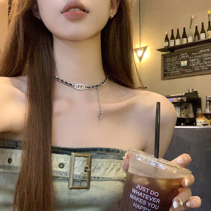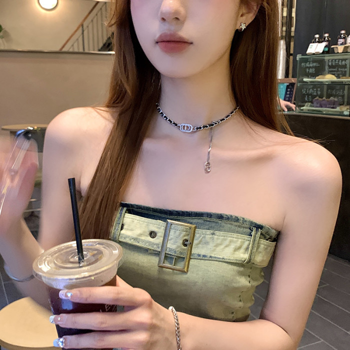 【蜜桃茶】爵士派對 網紅小香字母choker脖頸鏈項鍊鎖骨鍊配飾女