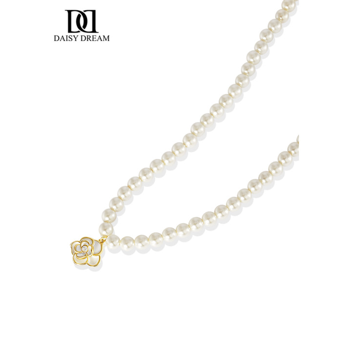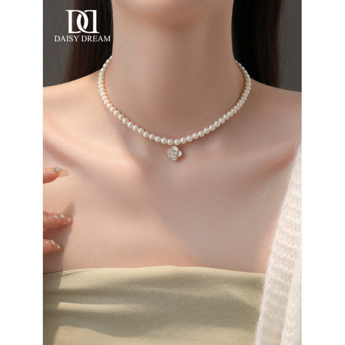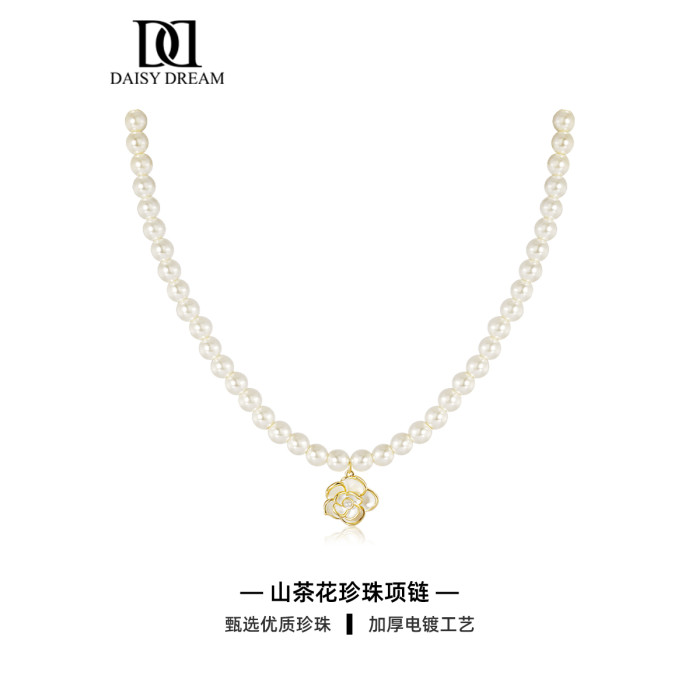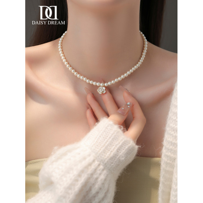 山茶花項鍊2026新款爆款珍珠頸鏈女法式輕奢小衆氣質鎖骨鍊高級感
